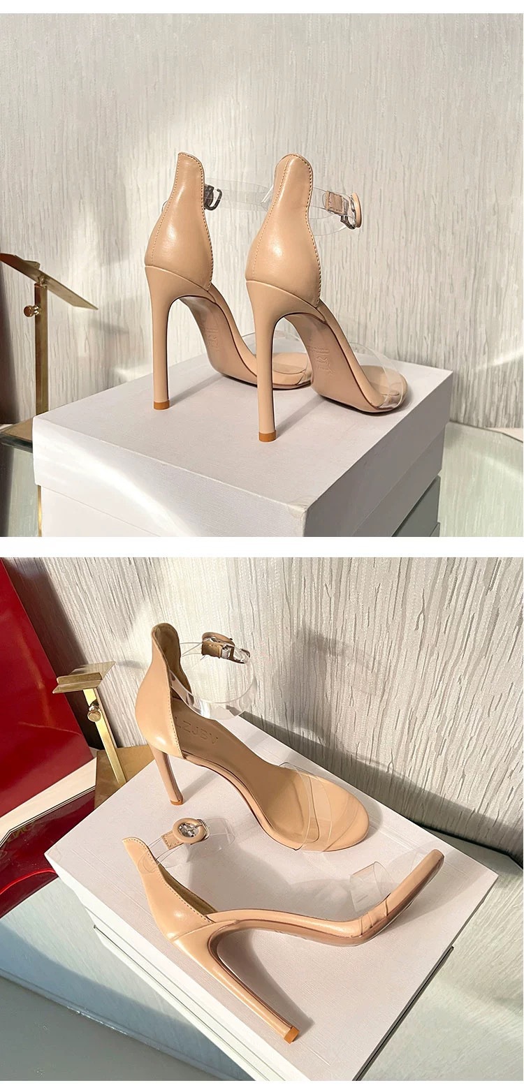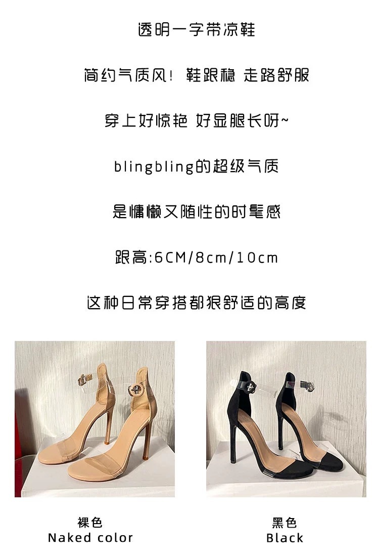 2025 여름 신상 투명 스트랩 샌들 여성용 블랙 얇은 굽 매력적인 섹시한 오픈토 12cm 하이힐스토어 가기