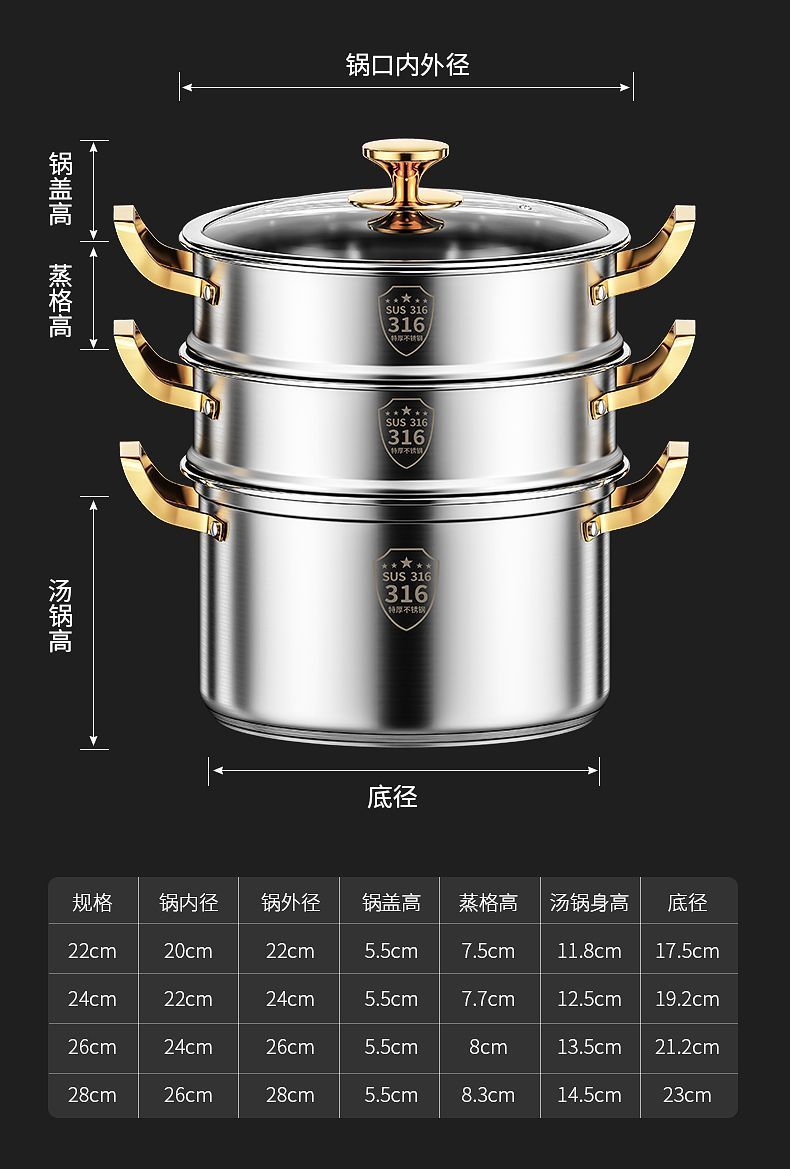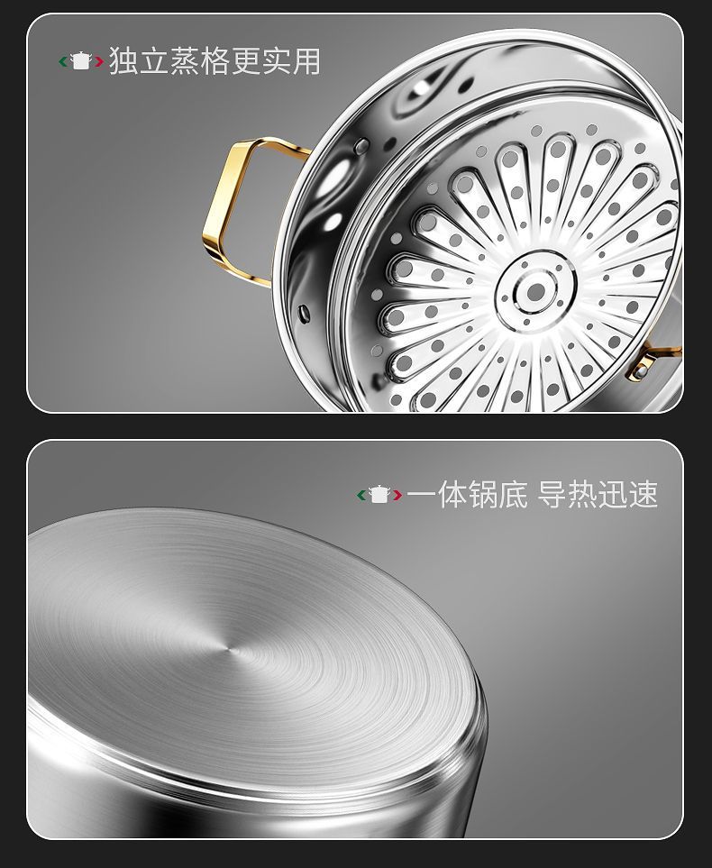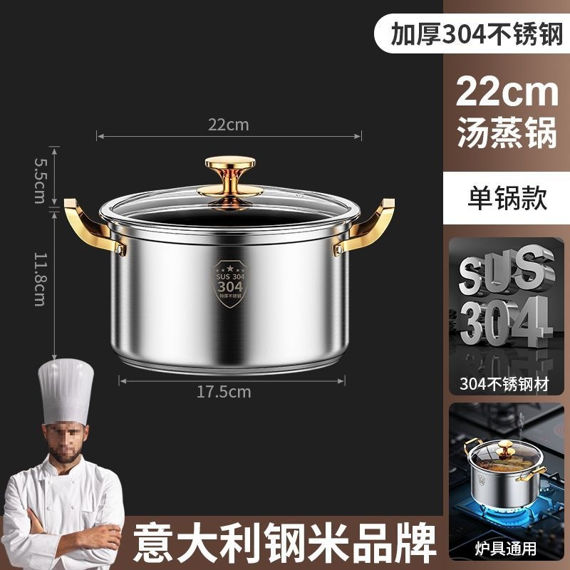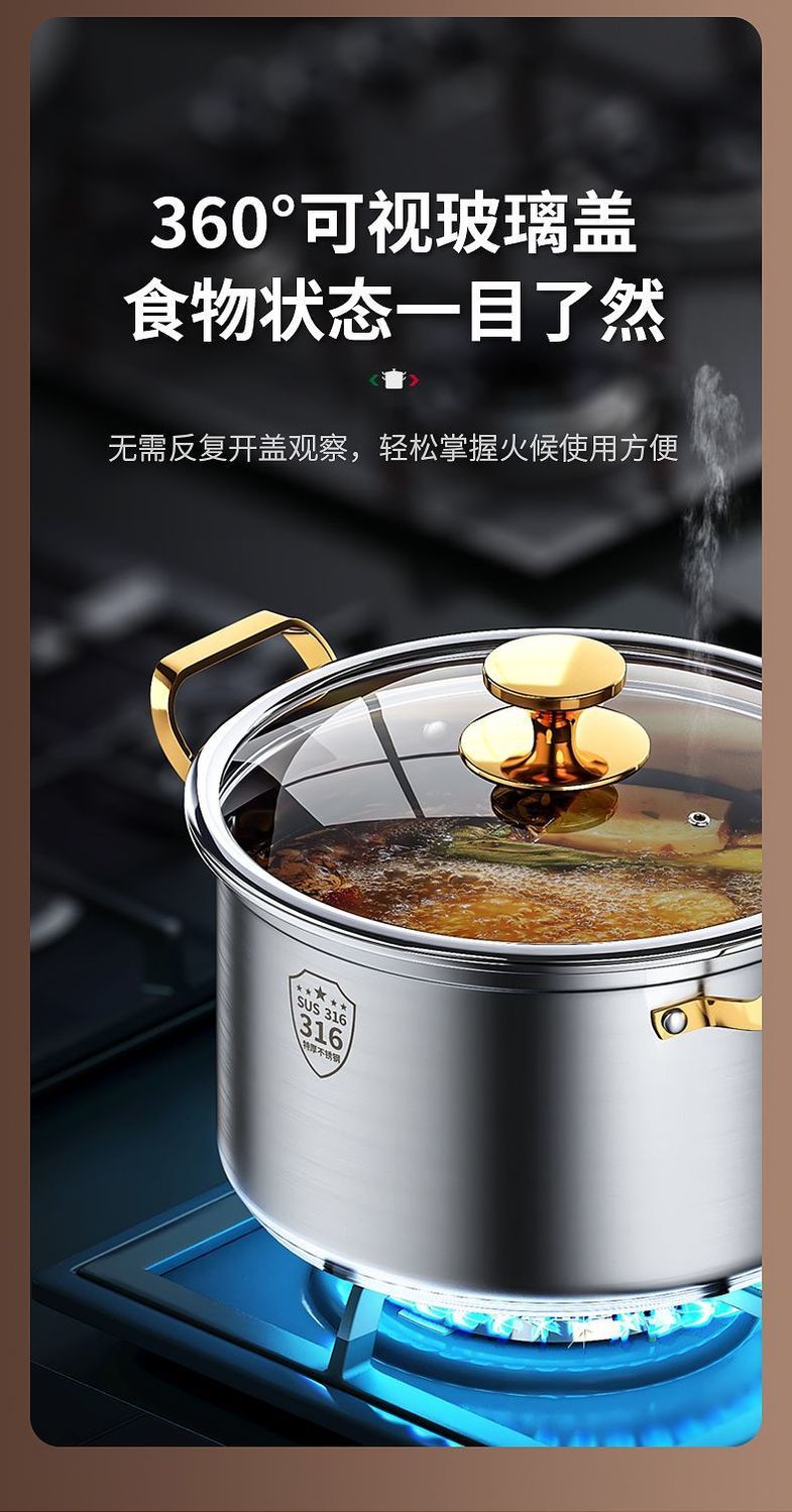 강철 쌀 316 스테인리스 수프 냄비 가정용 작은 기선 두꺼운 수프 죽 국수 요리 우유 냄비 유도 쿠커 가스 유니버설스토어 가기