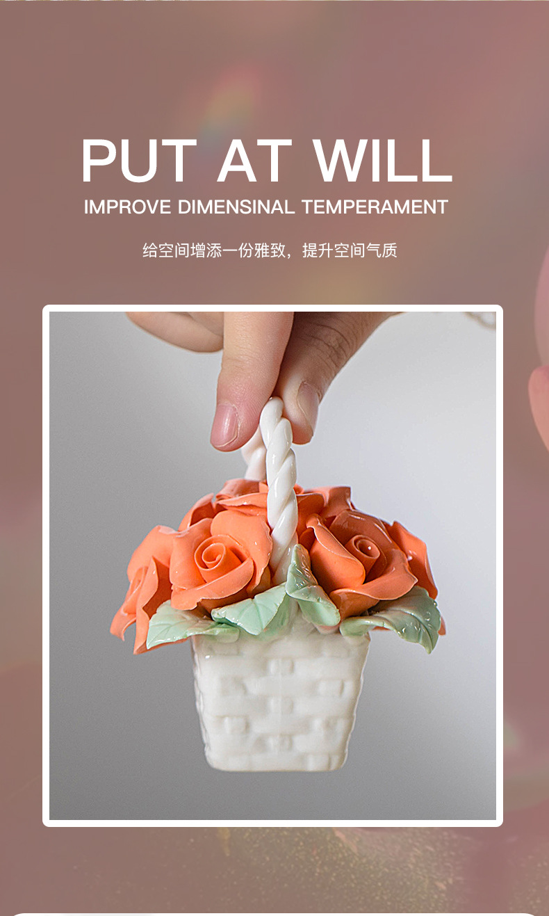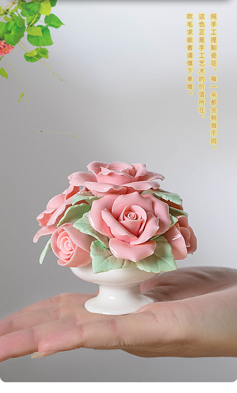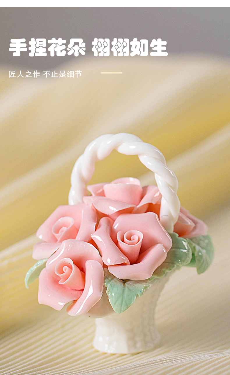 미니 세라믹 수제 작은 꽃 바구니 비 레거시 순수 수제 핀치 꽃 장미 소녀의 심장 선물 작은 장식품 거실 보석