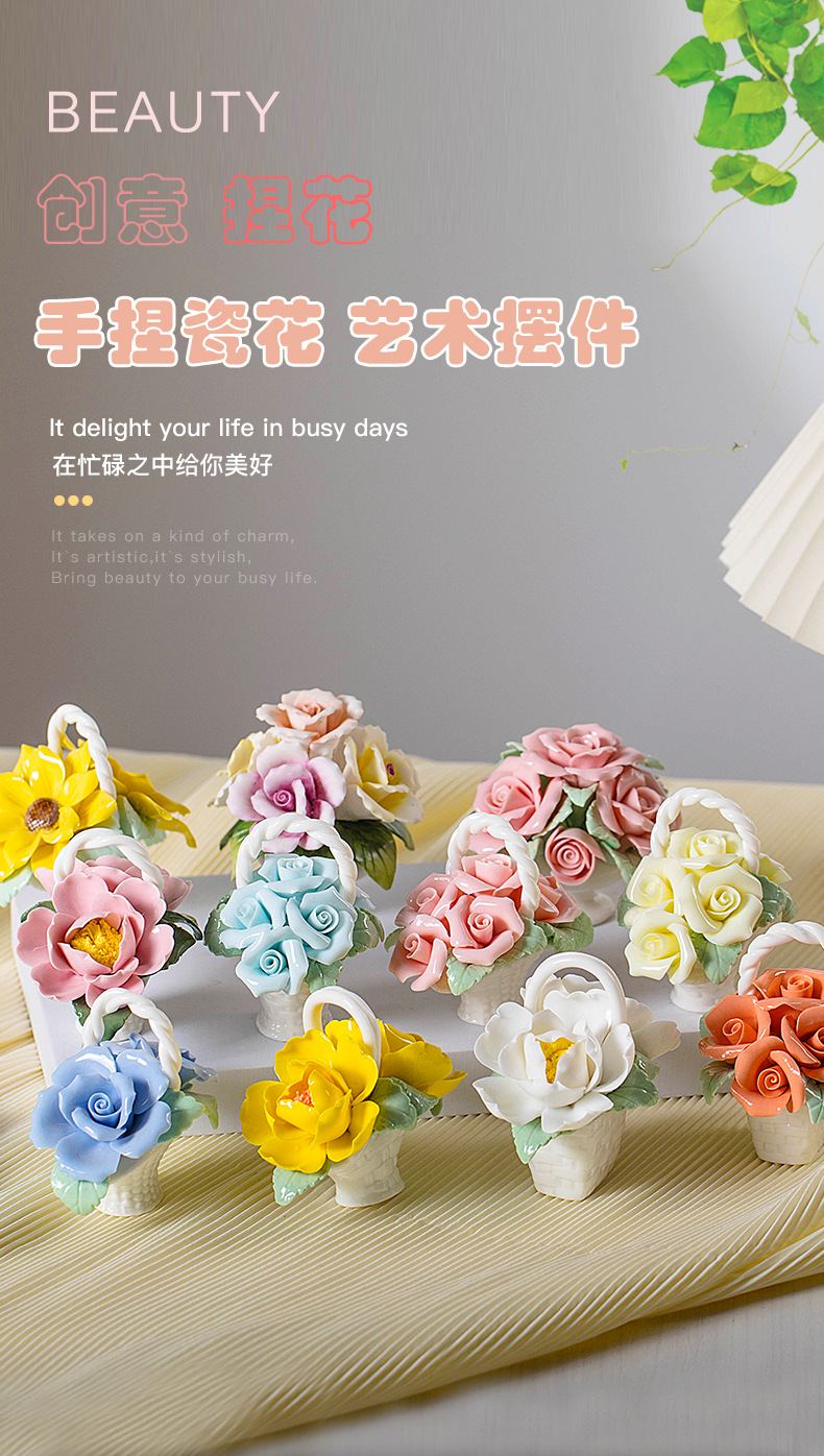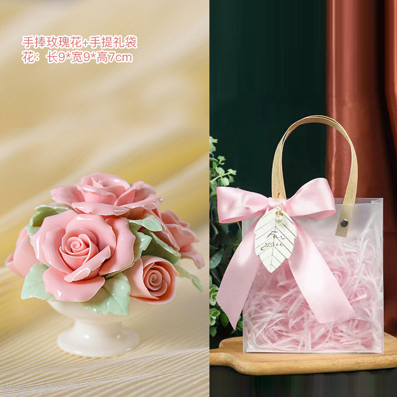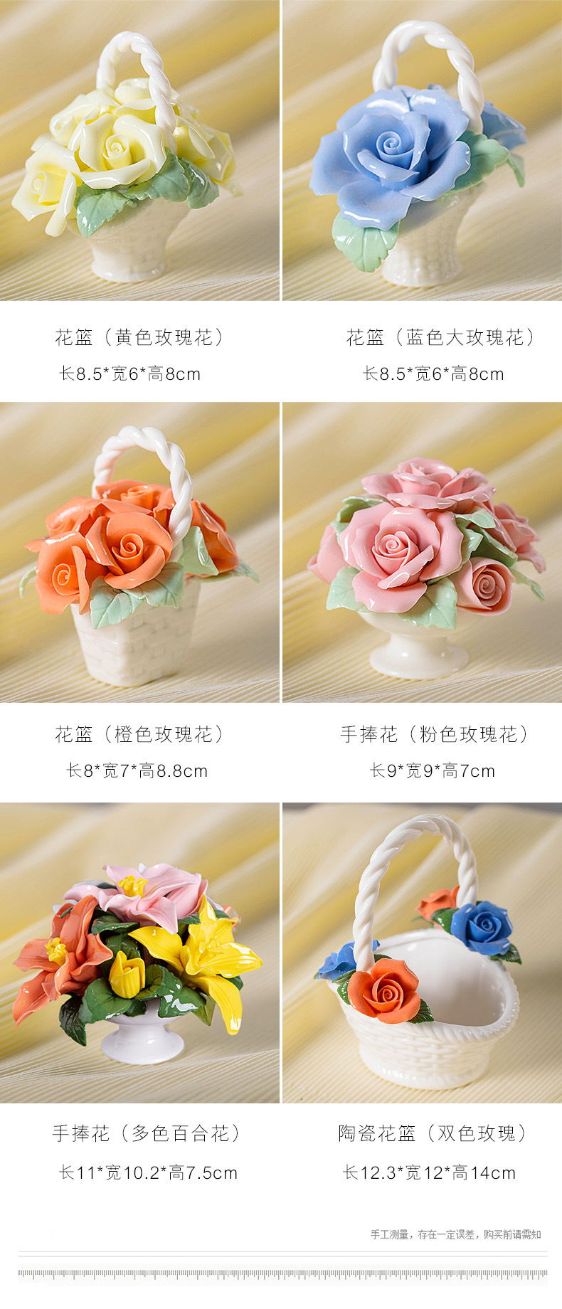 미니 세라믹 수제 작은 꽃 바구니 비 레거시 순수 수제 핀치 꽃 장미 소녀의 심장 선물 작은 장식품 거실 보석스토어 가기