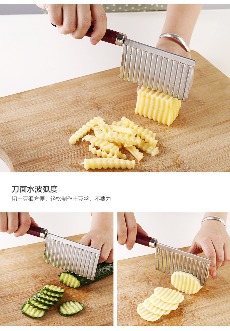 스파이크 감자 가정용 딥 그레인 Thickened Langya 감자 절단 판타지아 튀김 칼 절단을위한 다기능 상업용 웨이브 나이프스토어 가기