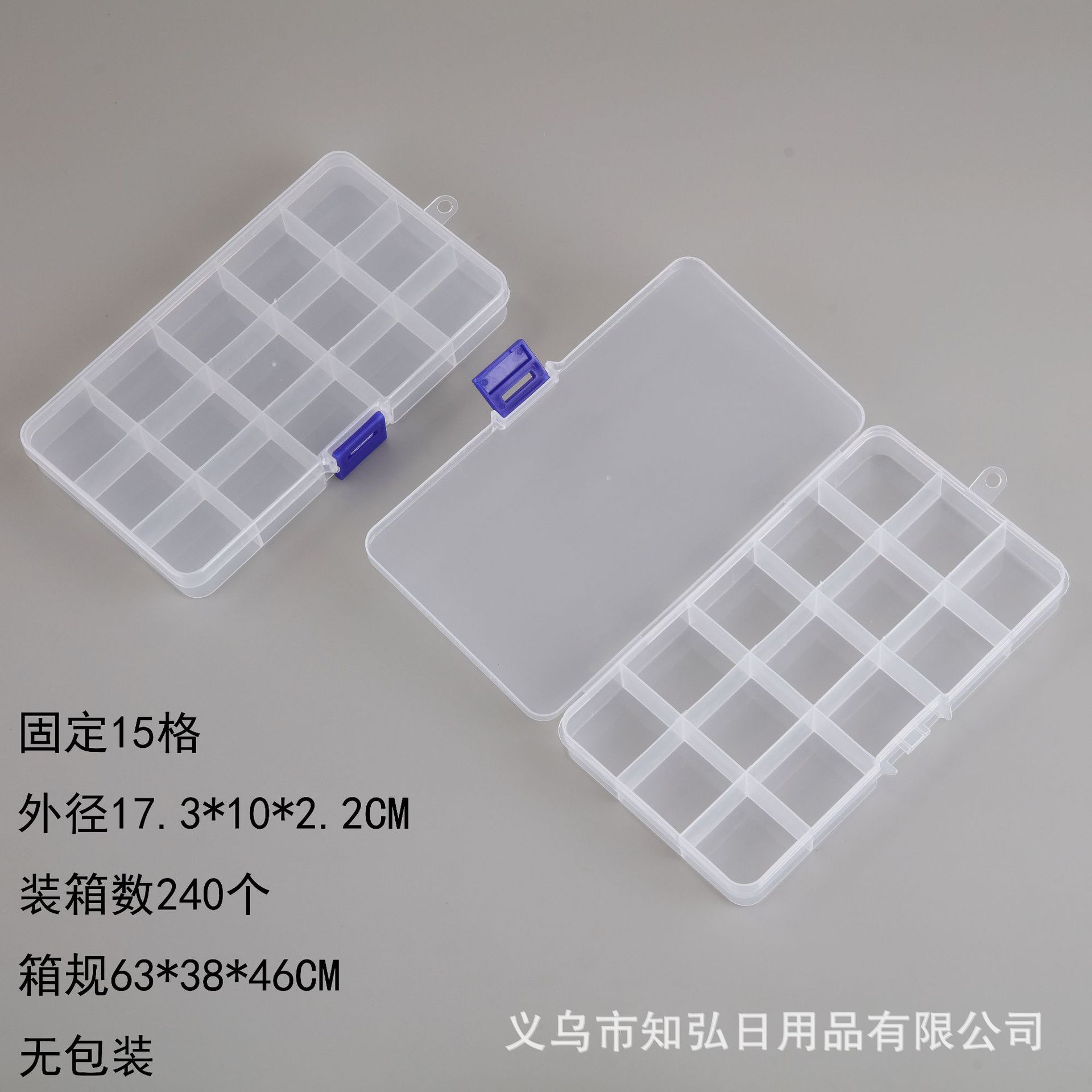 고정 15 그리드 투명 플라스틱 저장 상자 PP 상자 네일 보석 구슬 장식 낚시 기어 포장 상자 마무리