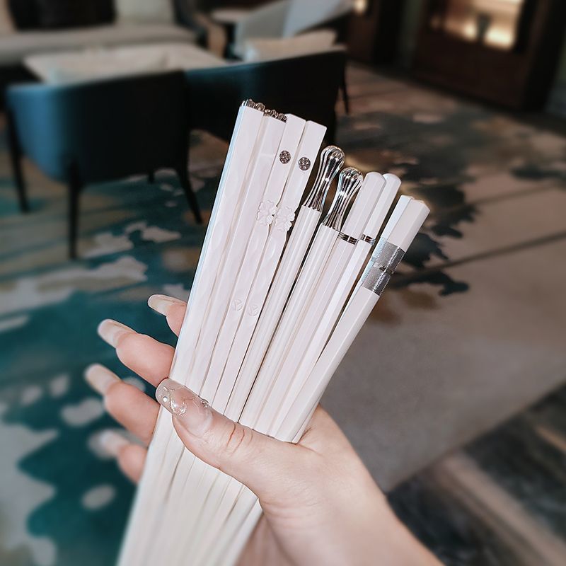 [그녀 자신의 사용 가벼운 고급 스러움을위한 소유자] 노르딕 스타일 젓가락 가정용 고온 내성 1 인 젓가락 테이블 젓가락 합금 젓가락