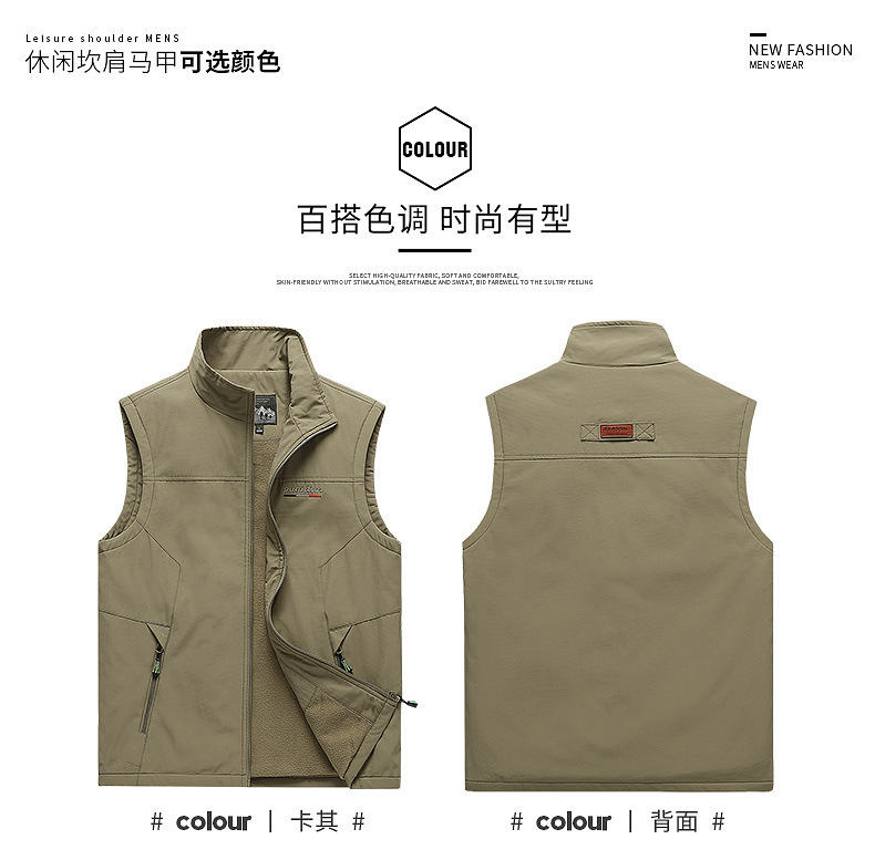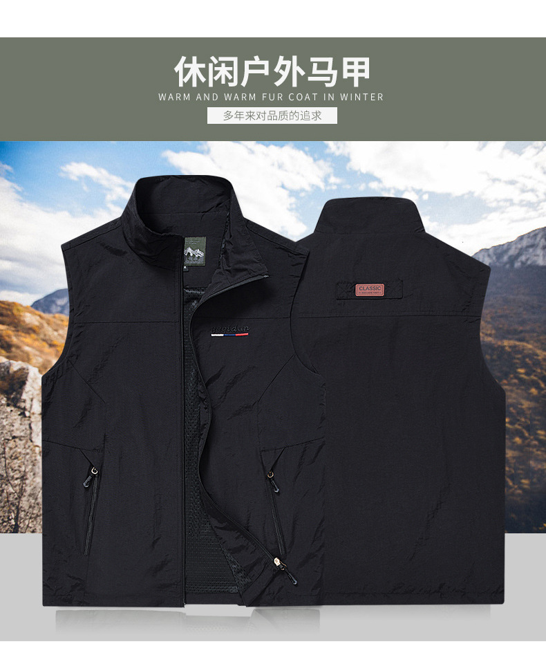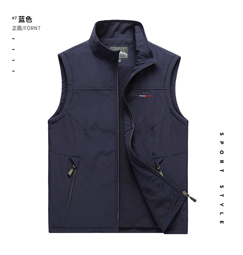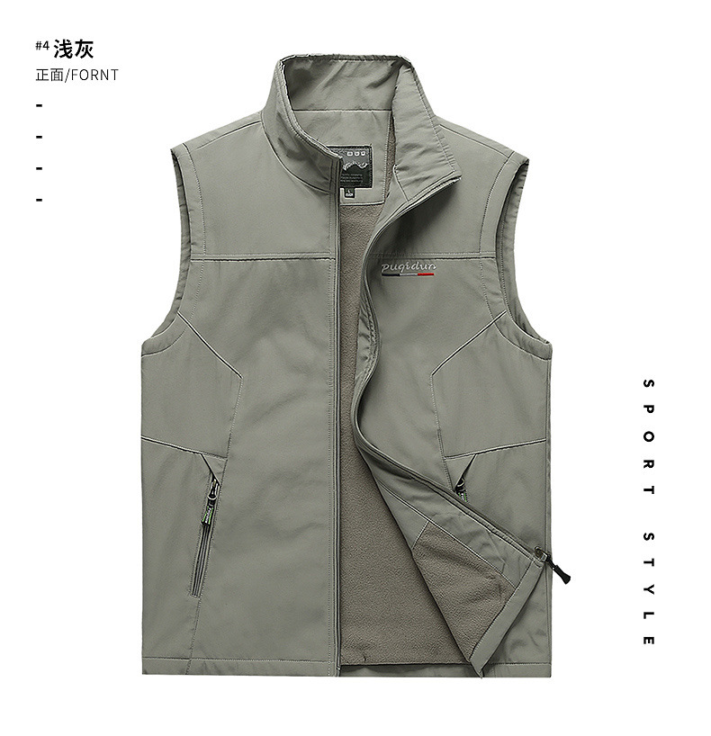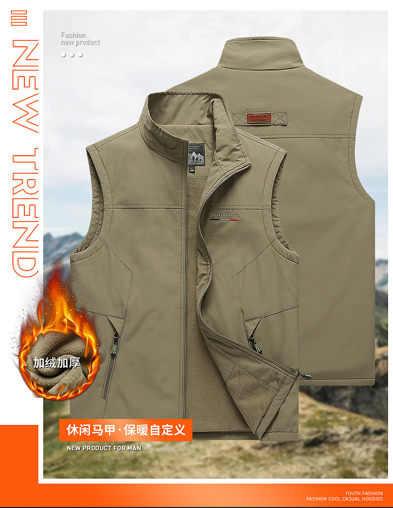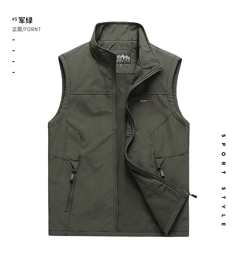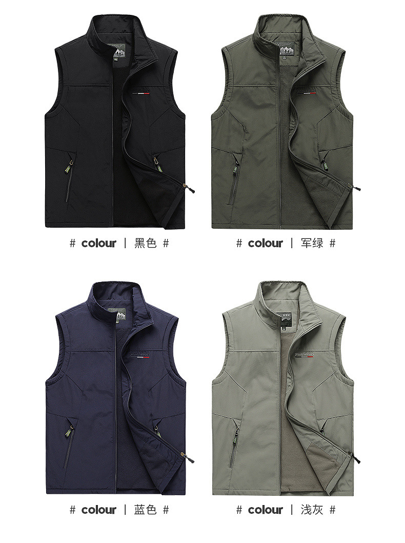 남자 봄 가을 겨울 조끼 남자 기모 작업복 유행 수직 칼라 조끼 야외 사진 낚시 조끼 수직 칼라 빠른 건조