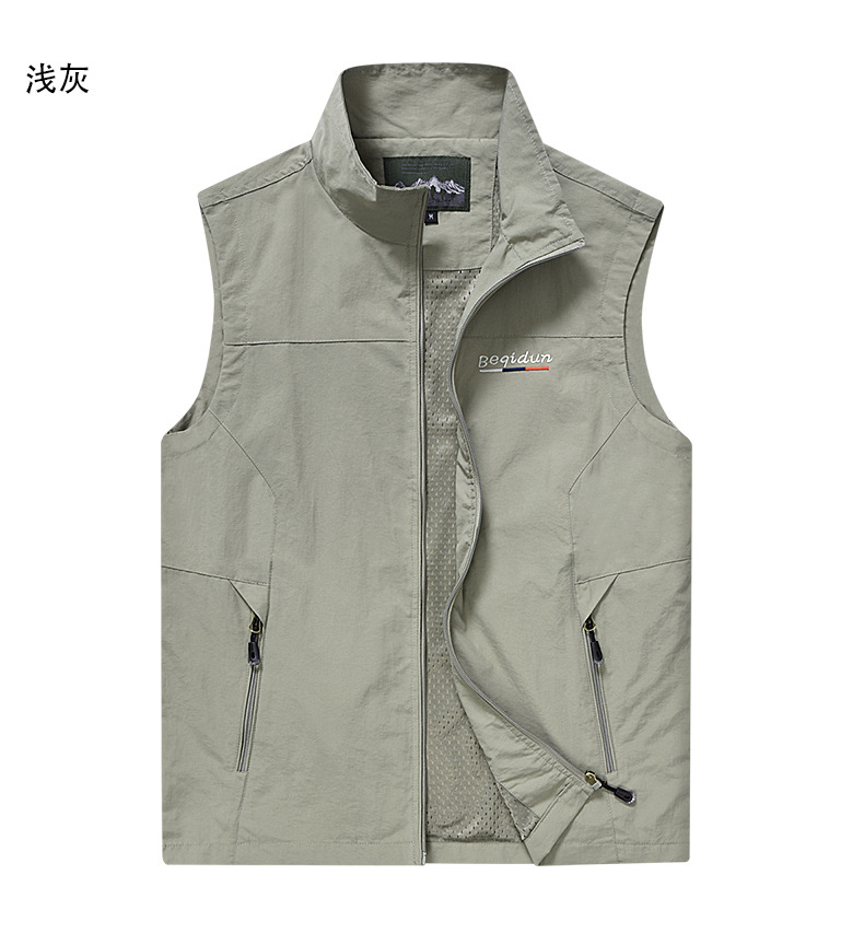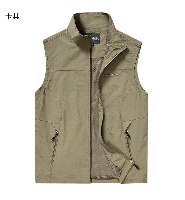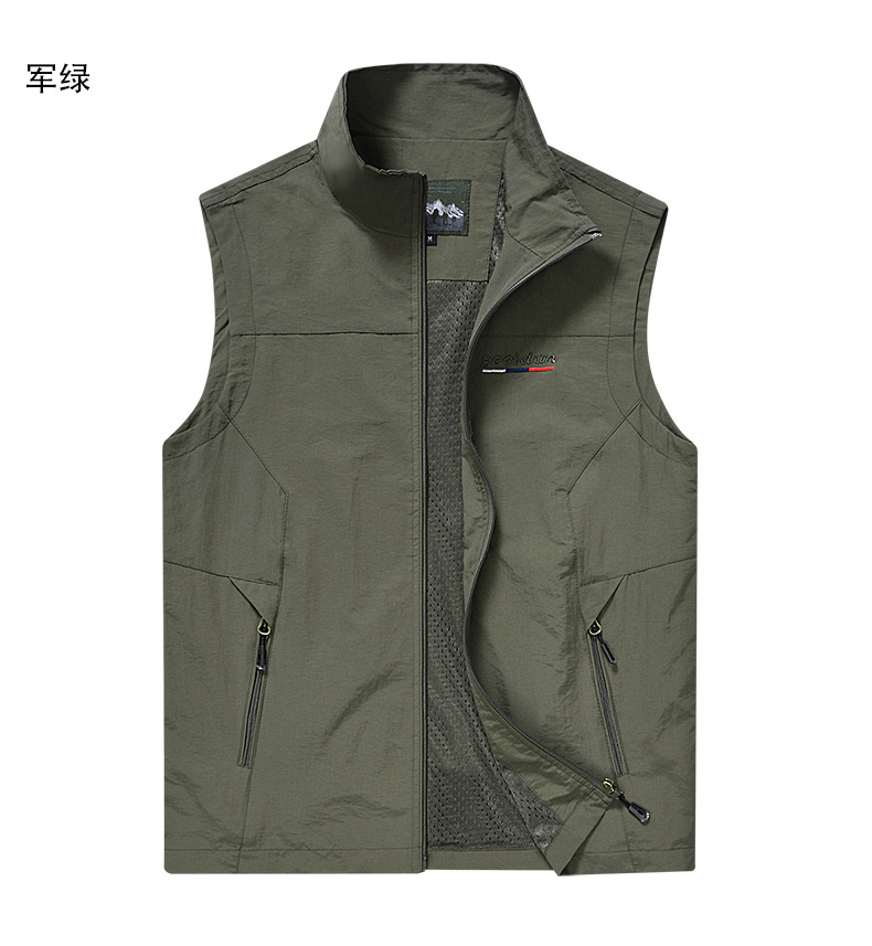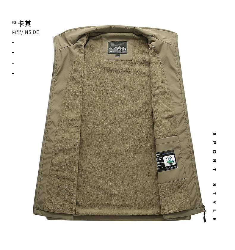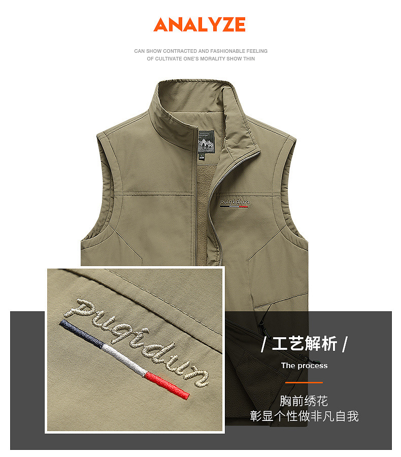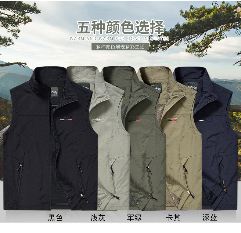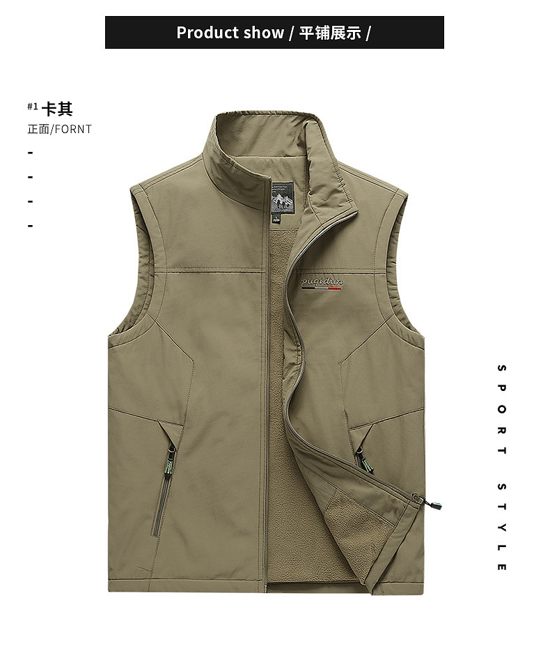 남자 봄 가을 겨울 조끼 남자 기모 작업복 유행 수직 칼라 조끼 야외 사진 낚시 조끼 수직 칼라 빠른 건조