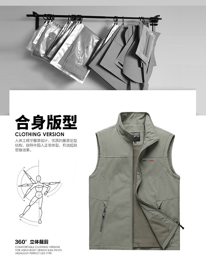 남자 봄 가을 겨울 조끼 남자 기모 작업복 유행 수직 칼라 조끼 야외 사진 낚시 조끼 수직 칼라 빠른 건조스토어 가기