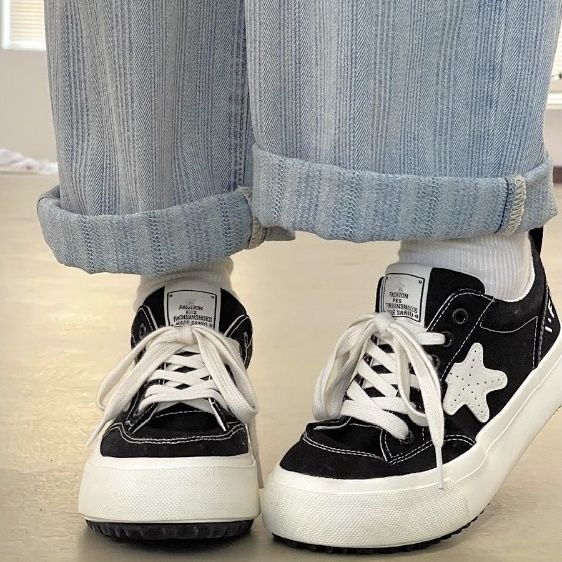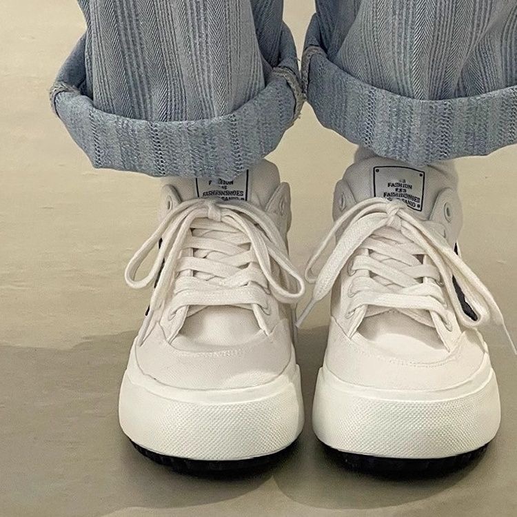 스커트 화이트 신발 여성용 Ins 유행 두꺼운 단독 2024 봄과 여름 새로운 폭발 틈새 얇은 통기성 캔버스 스니커즈스토어 가기