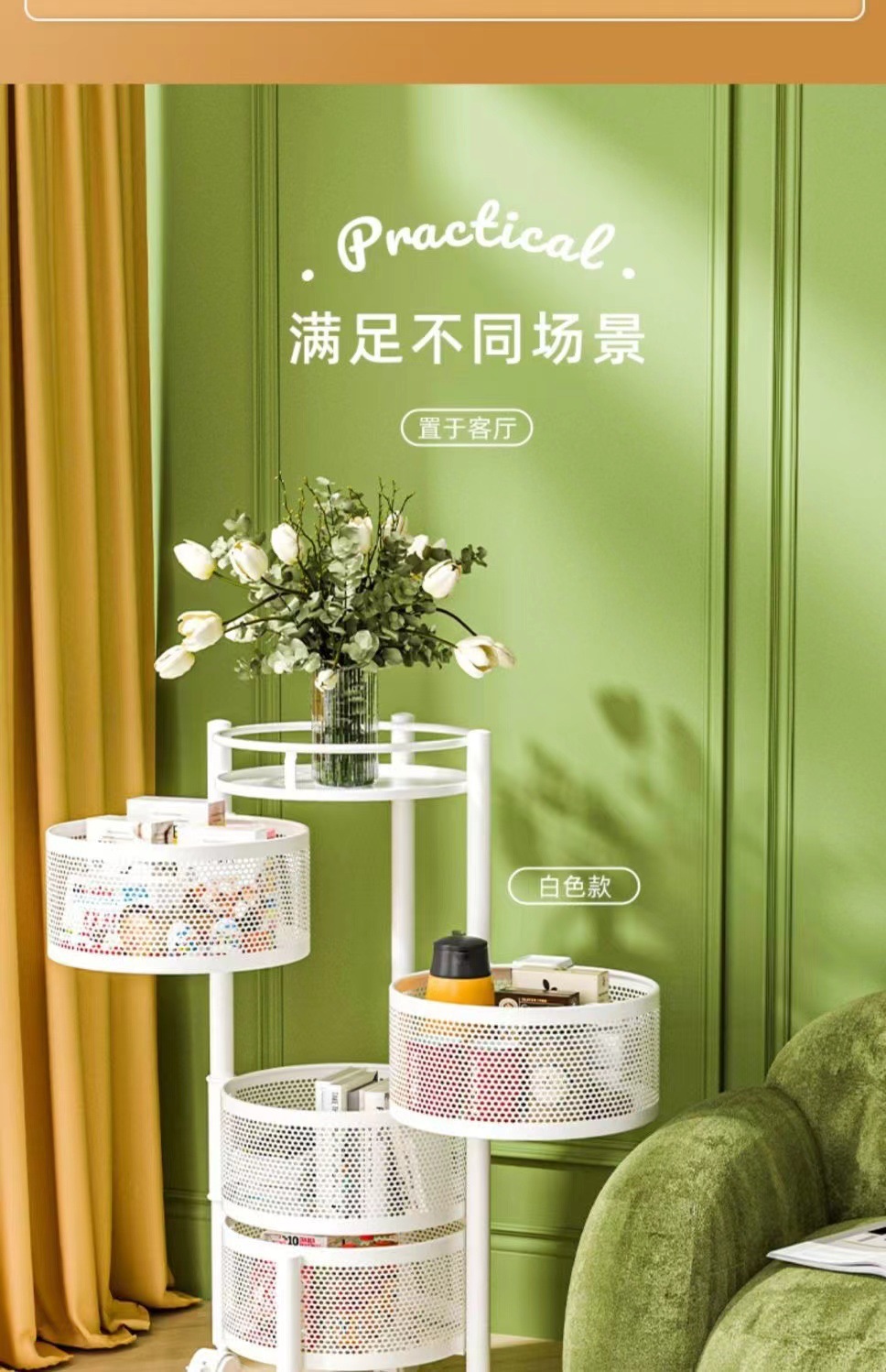 야채 회전 랙 트롤리 바닥 침실 다층 모바일 스낵 랙 화장실 보관 랙 배치