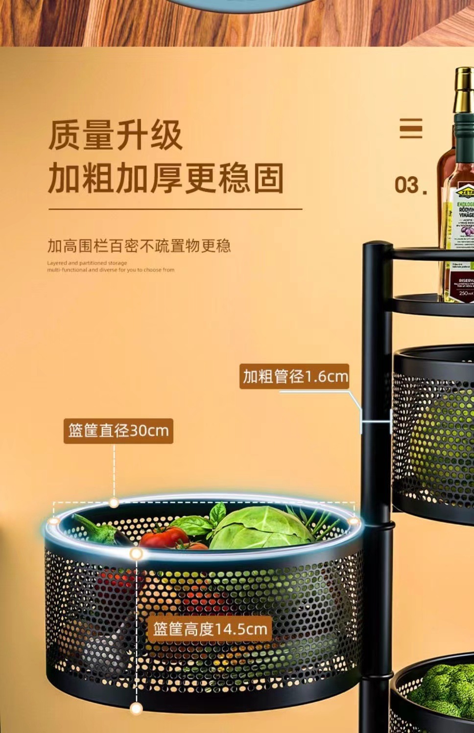 • [검은 색 가드 레일] 3 층 [두꺼운 대용량] 라운드 프레임