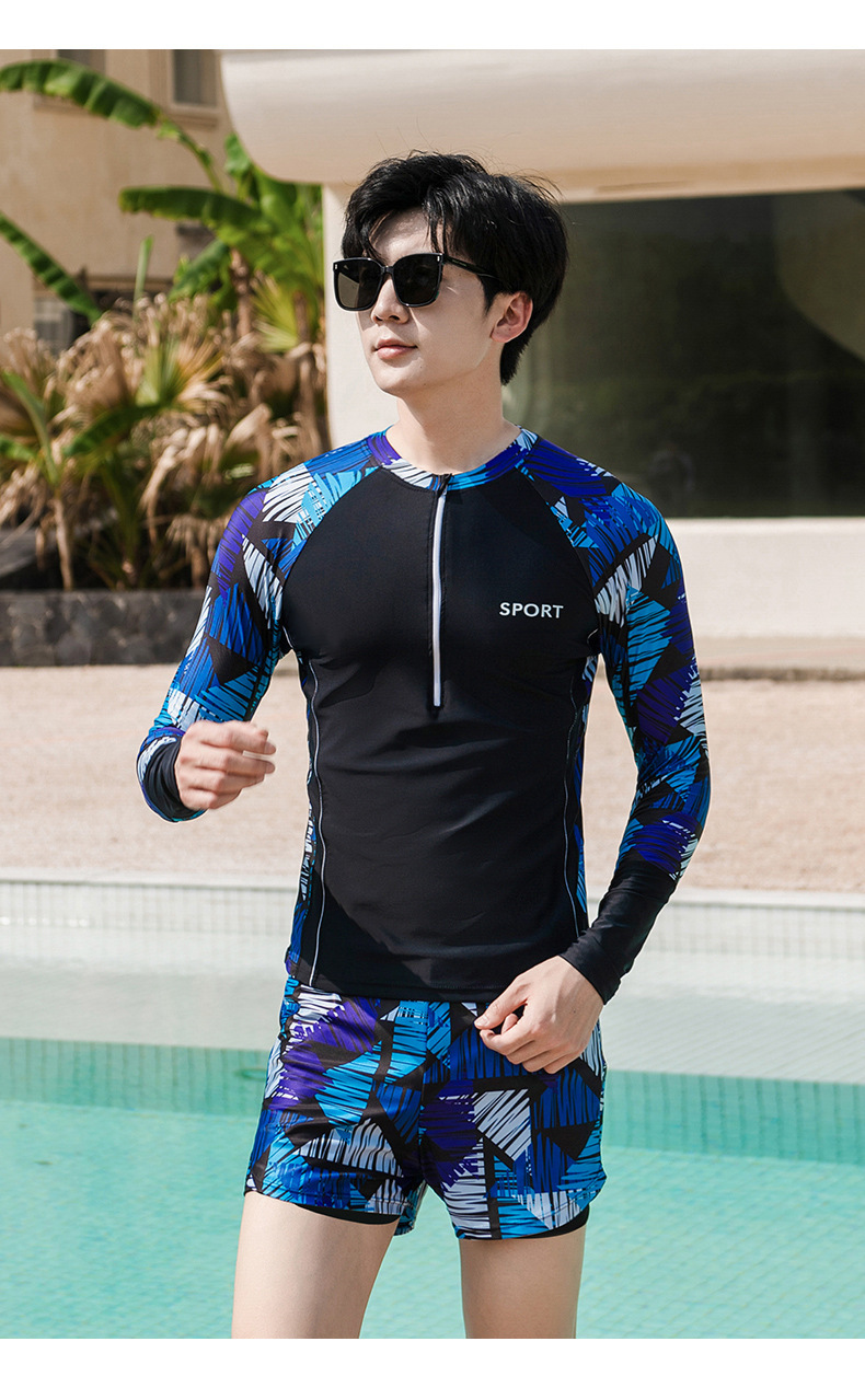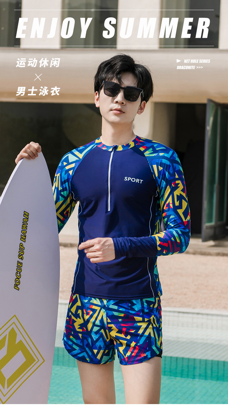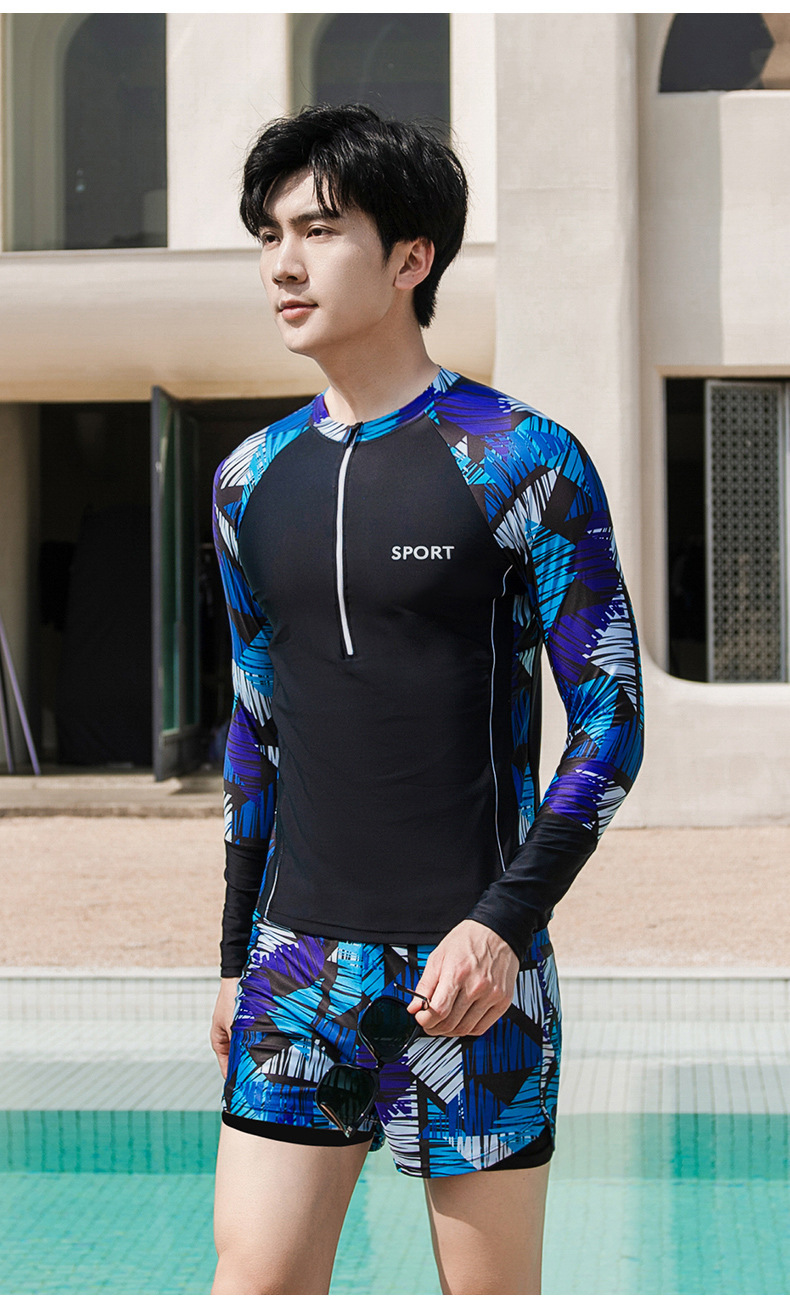 游泳衣男款长袖分体平角裤双层防尴尬大码沙滩漂流速干男士泳装
