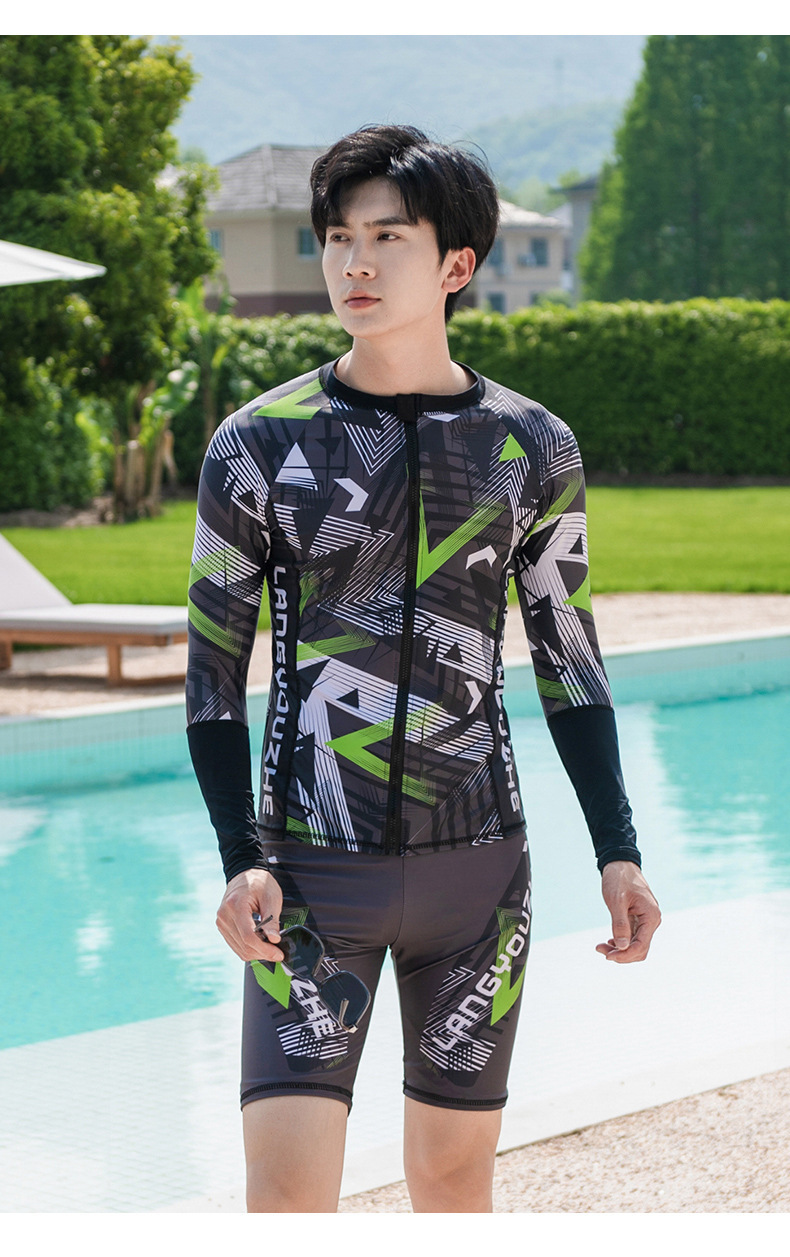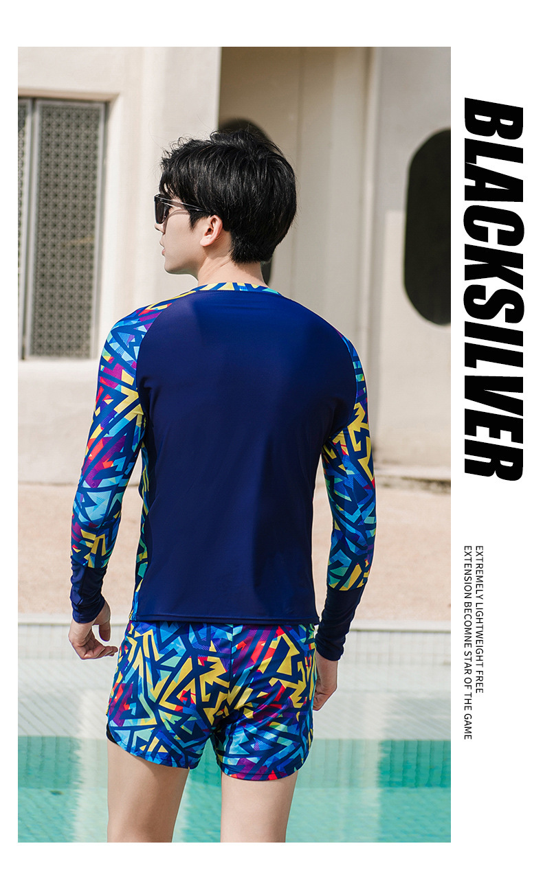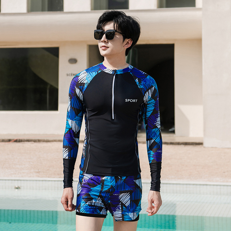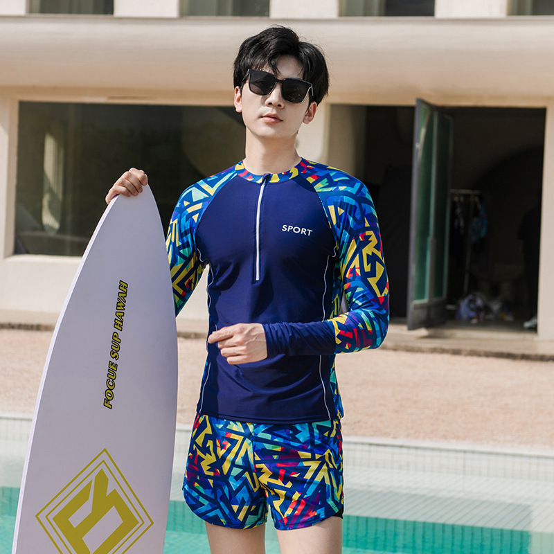 游泳衣男款长袖分体平角裤双层防尴尬大码沙滩漂流速干男士泳装
