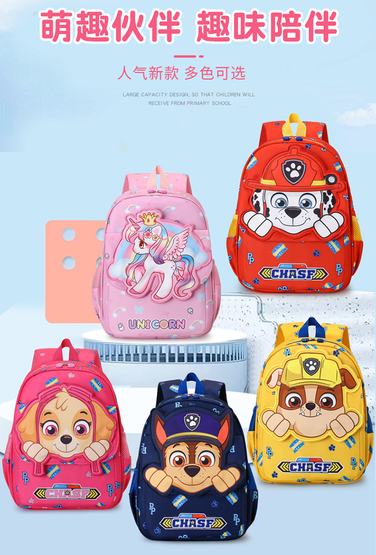 새로운 어린이 스쿨백 만화 개 유치원 소년과 소녀 아기 귀여운 배낭 중대형 학생 스쿨백