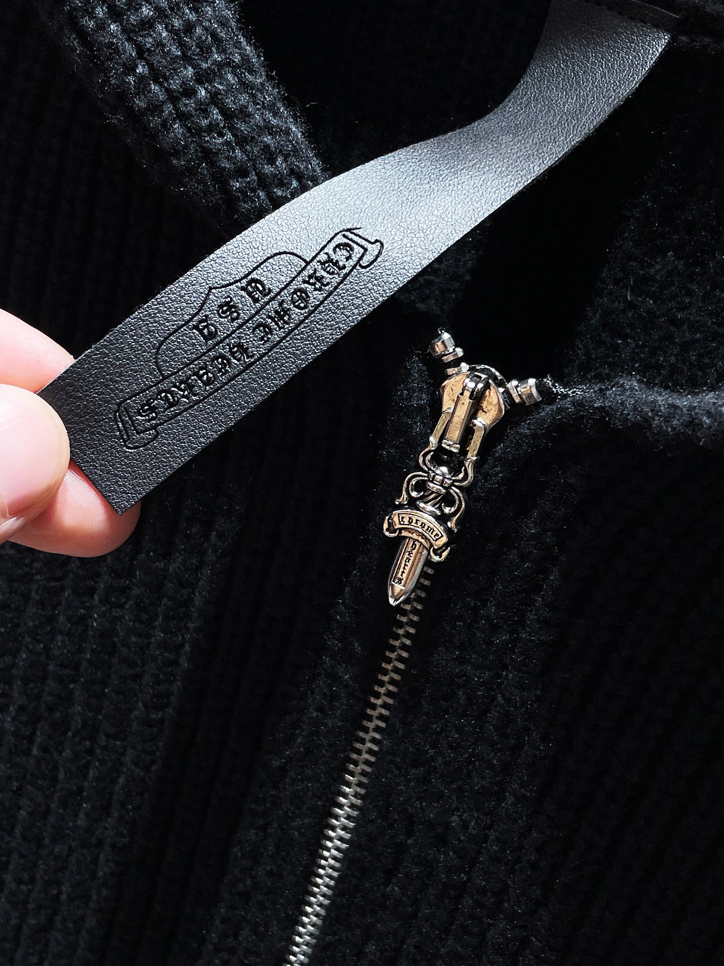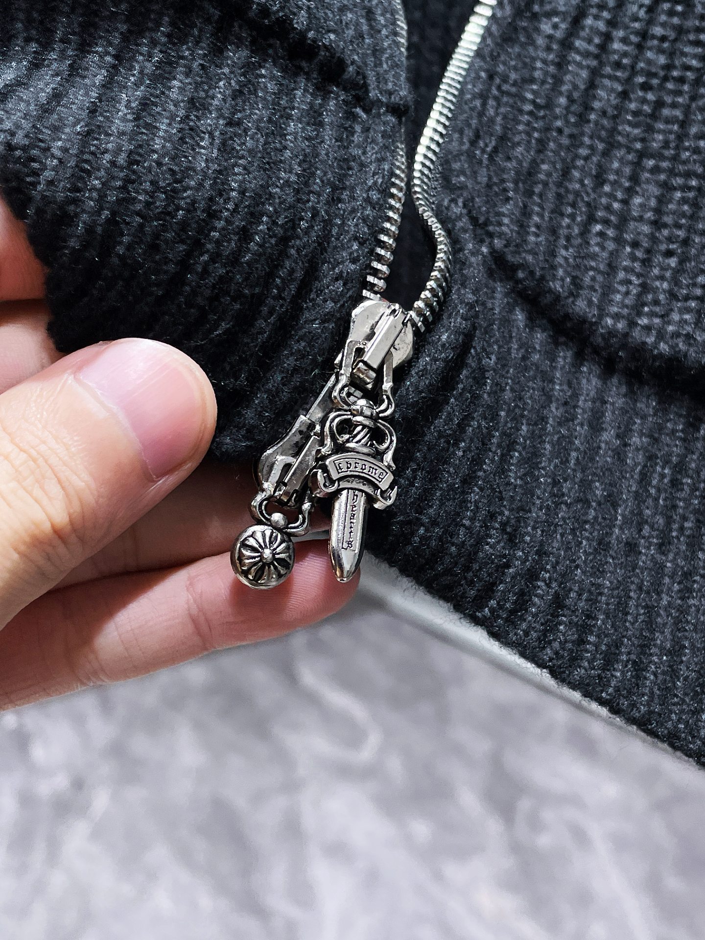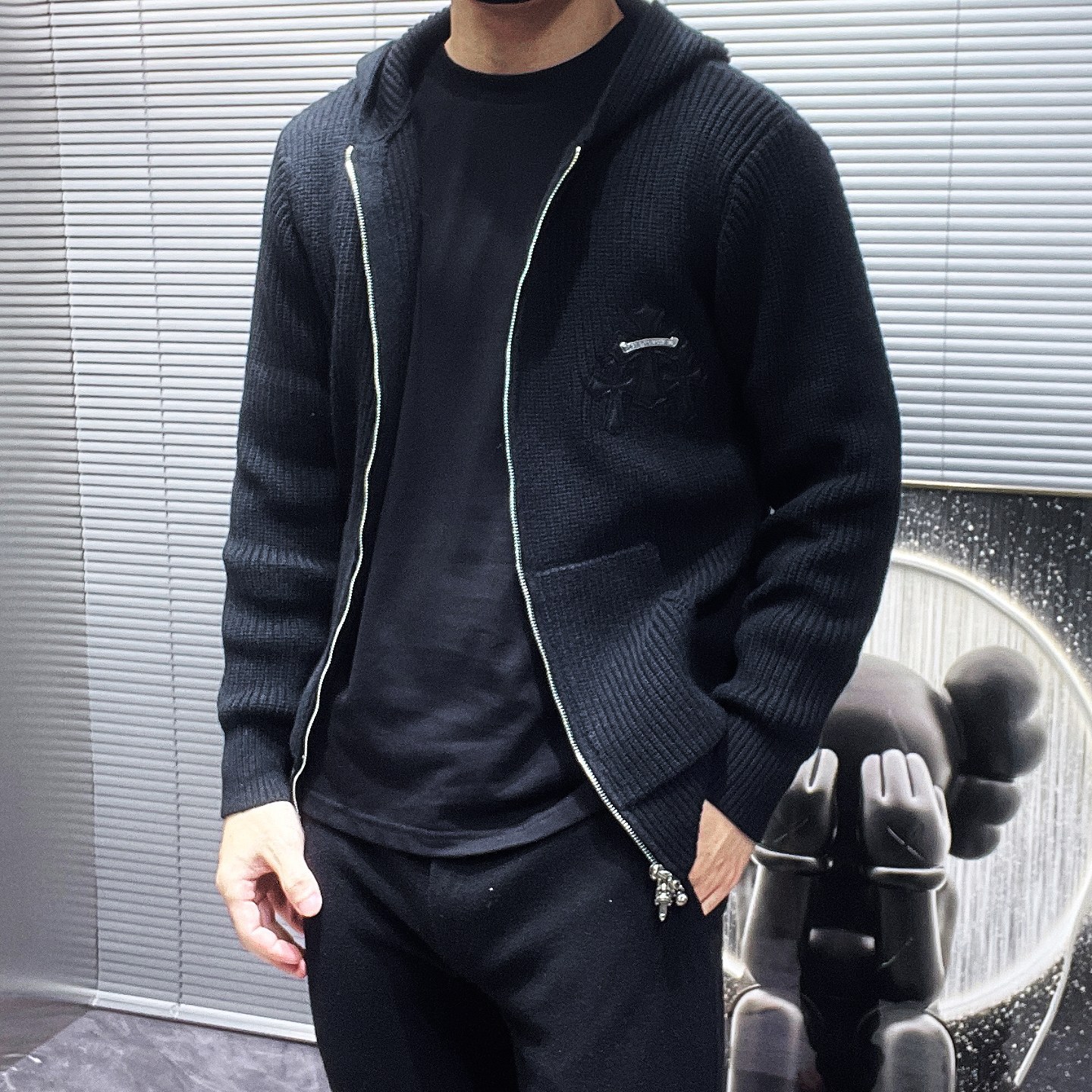 남성용 크롬 하트 하이 퀄리티 가죽 금속 액세서리 지퍼 새로운 니트 자켓 후드스토어 가기