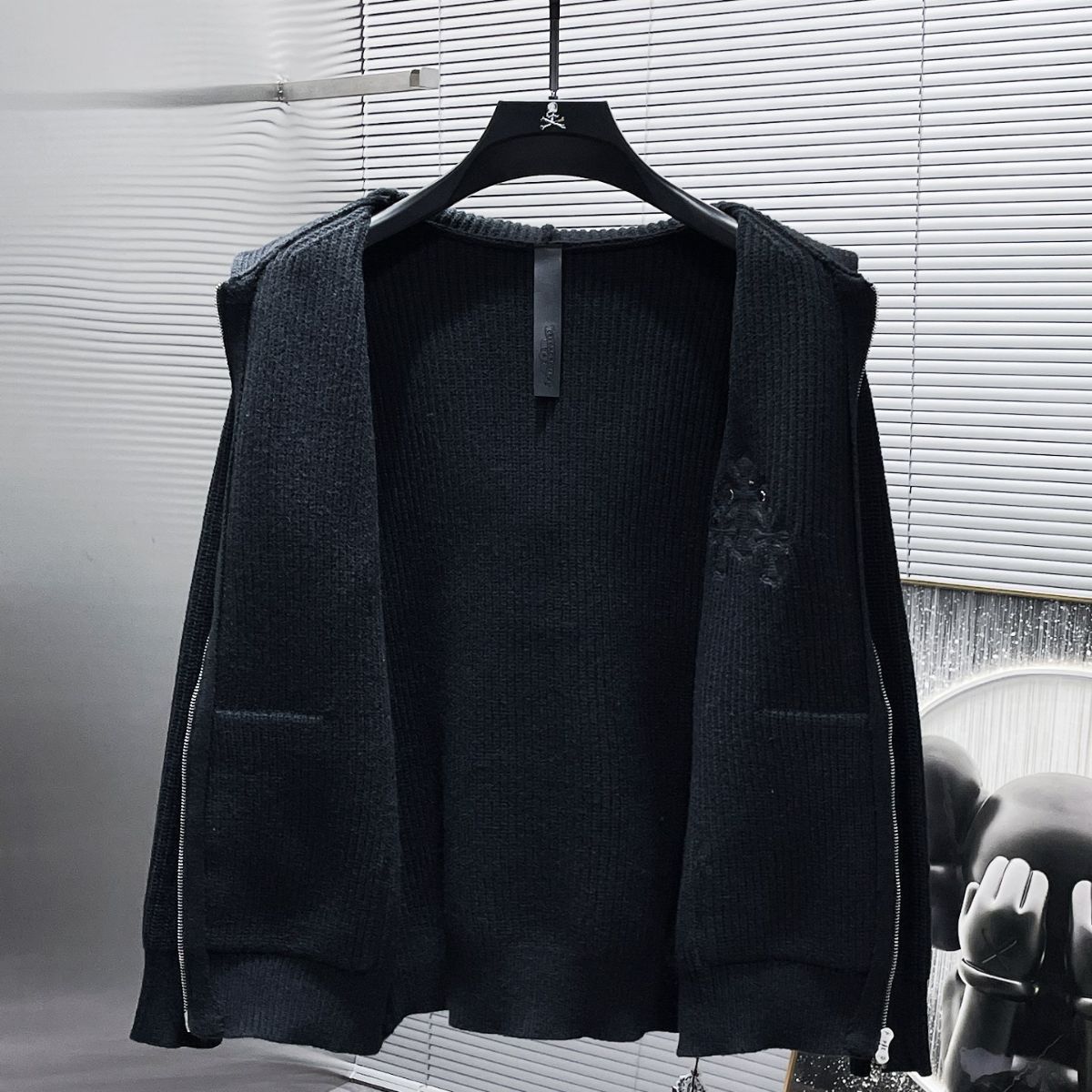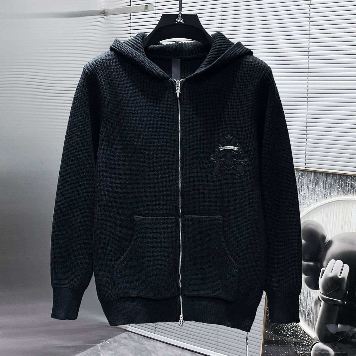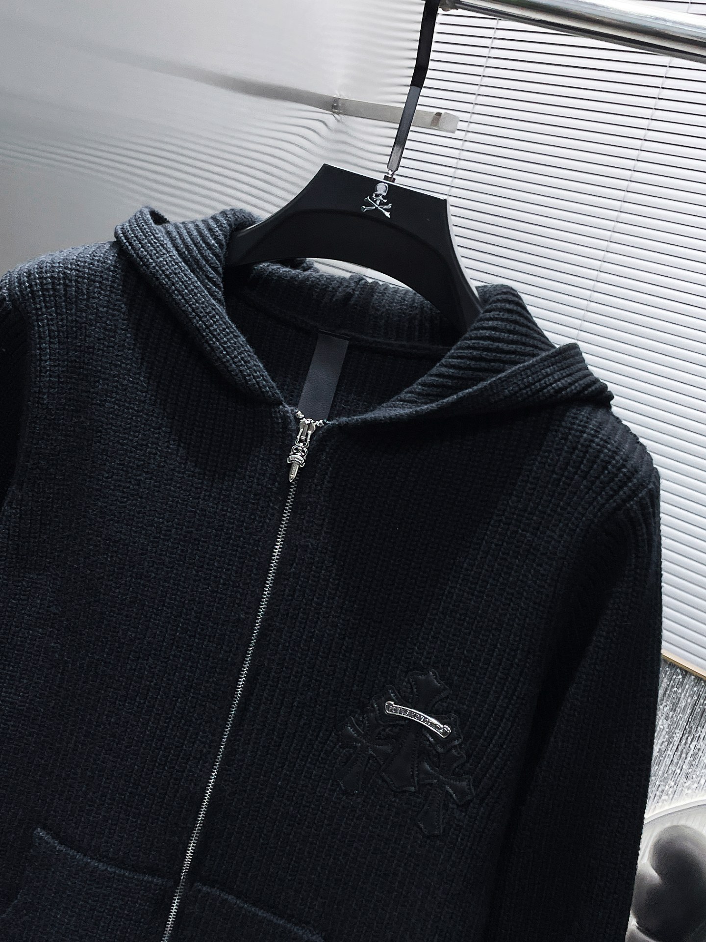 남성용 크롬 하트 하이 퀄리티 가죽 금속 액세서리 지퍼 새로운 니트 자켓 후드스토어 가기