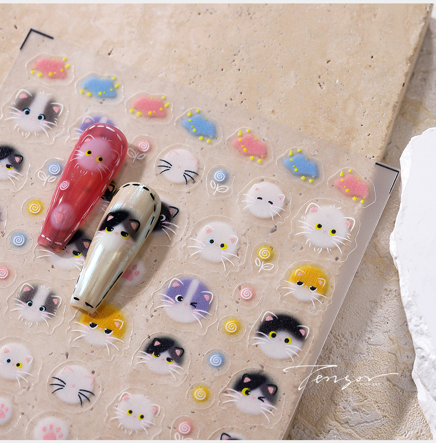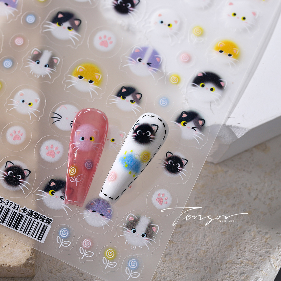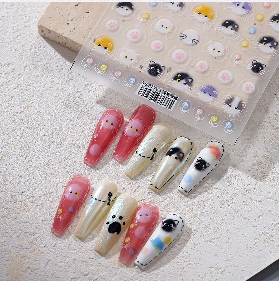 철 신기술 일본 스타일 얇은 힘든 네일 스티커 프로 프로스트 얇은 접착제 네일 TS-3731 만화 고양이 공스토어 가기