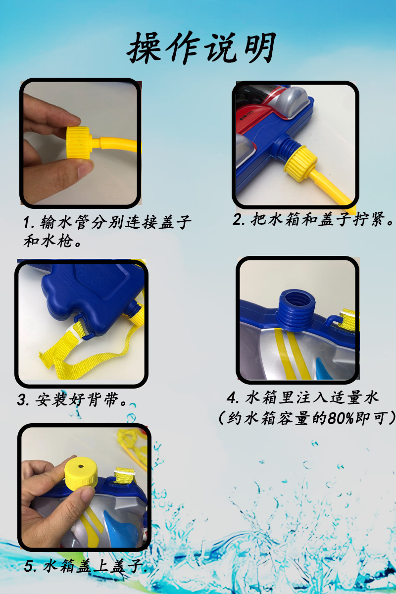 어린이 배낭 스프레이 건 만화 Ott 푸시 풀 발사 여름 해변 해변 수영장 물 장난감 도매