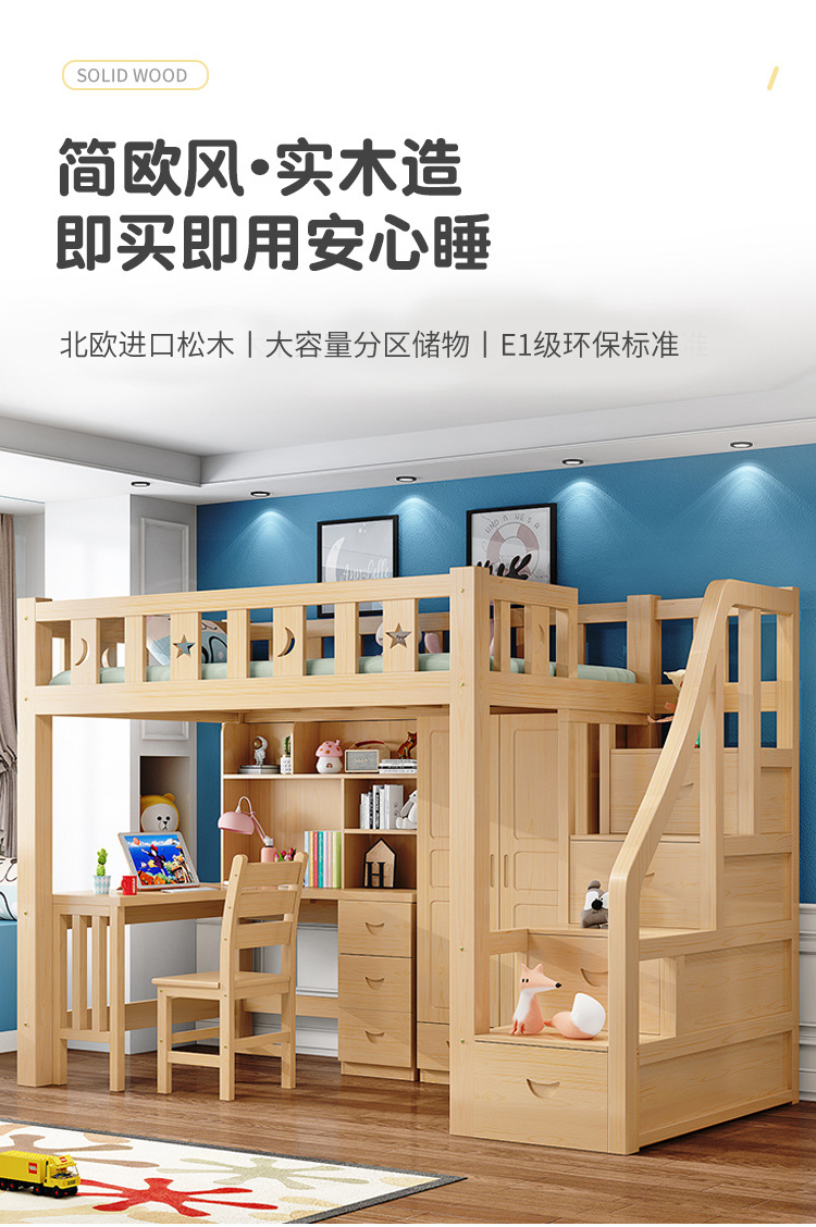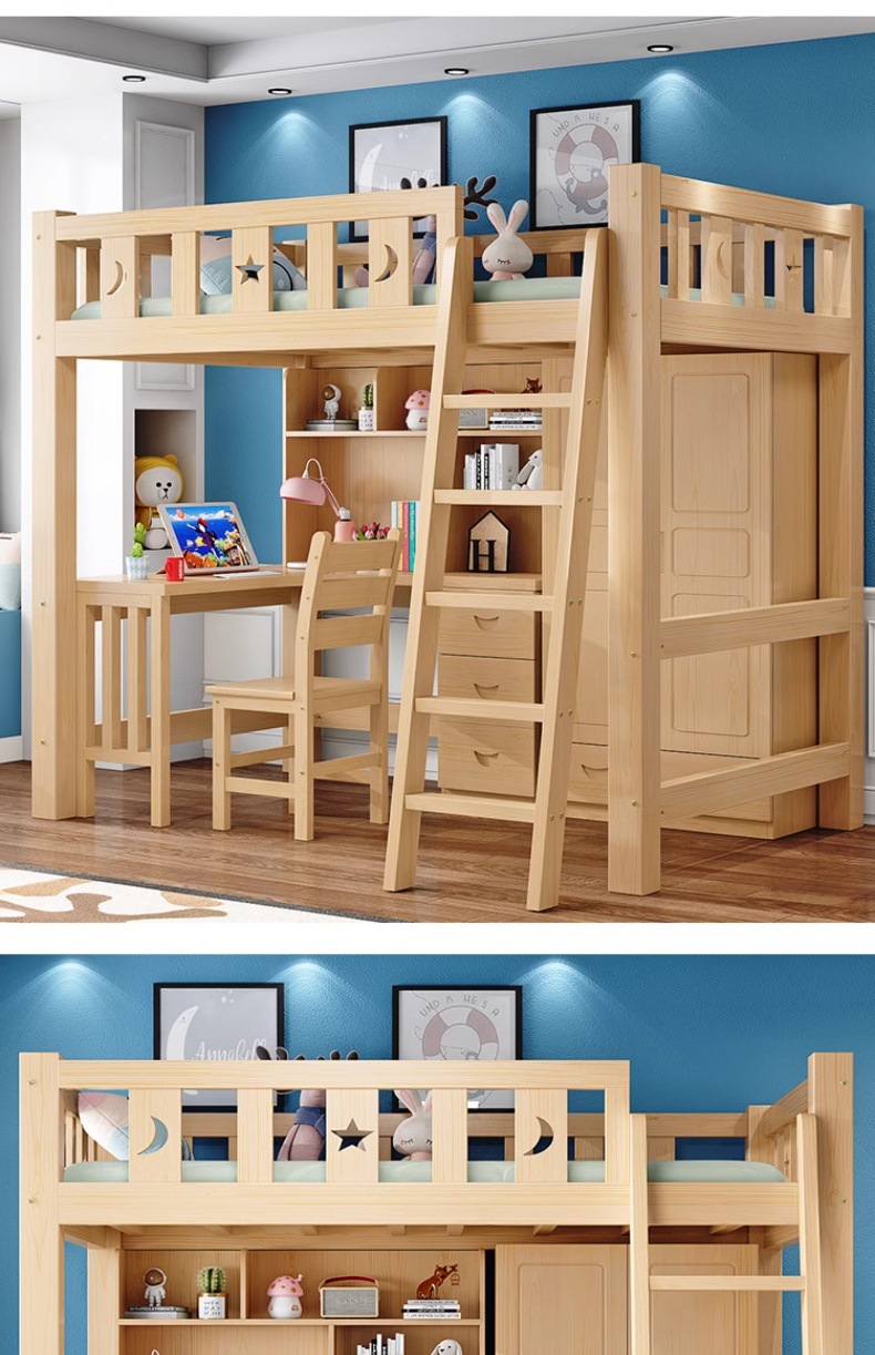 침대 낮은 테이블 높고 낮은 침대 다기능 조합 침대 가구 모든 단단한 나무 어린이 침대 책상 옷장 통합 높은 침대스토어 가기