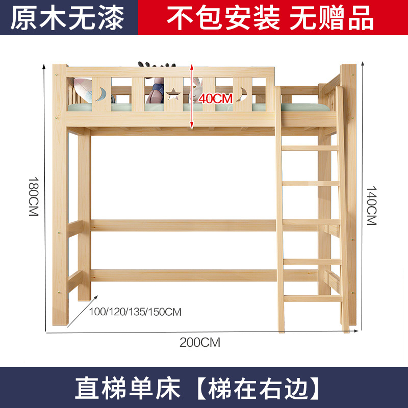 • 페인트 없음 직선 사다리 싱글 침대 [오른쪽에 사다리] 선물 없음