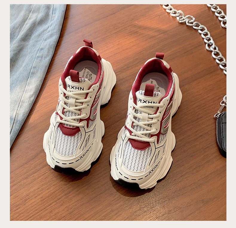 두꺼운 솔리드 토레 신발 여성의 2025 새로운 폭발 봄과 여름 얇은 메쉬 통기성 높이 증가 캐주얼 운동화스토어 가기