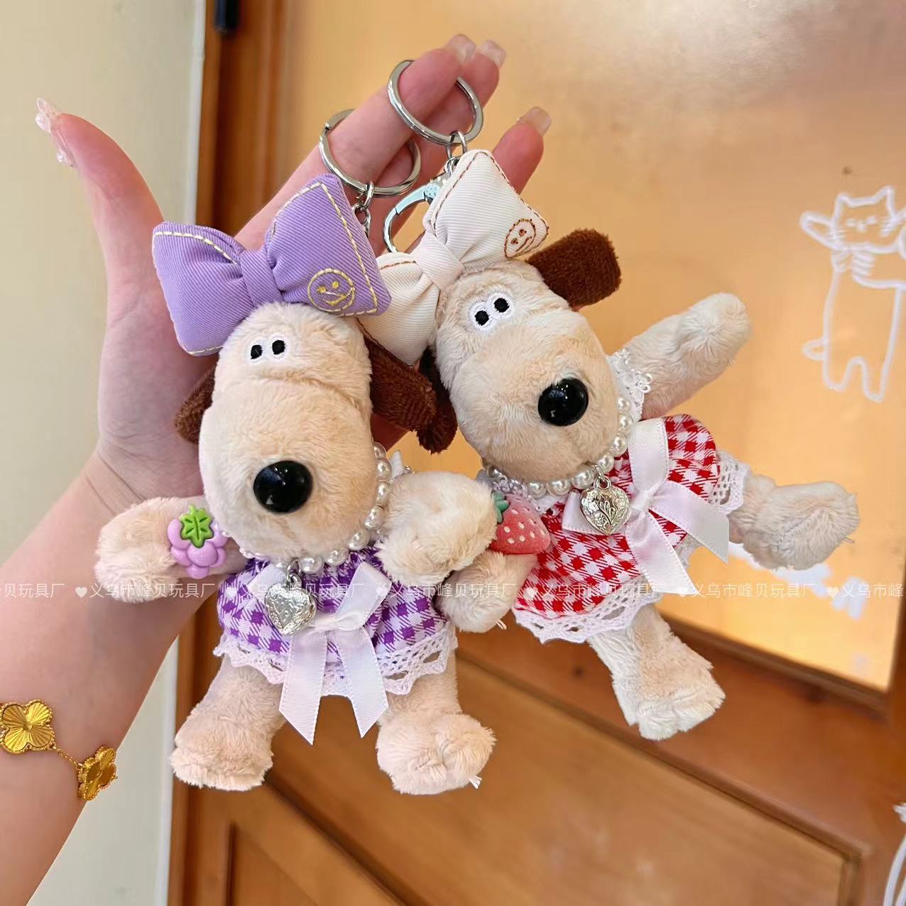 13cm 뜨거운 판매 핸드독 격자 무늬 활 레이스 가장자리 원피스 키 체인 교수형 가방 장식품스토어 가기