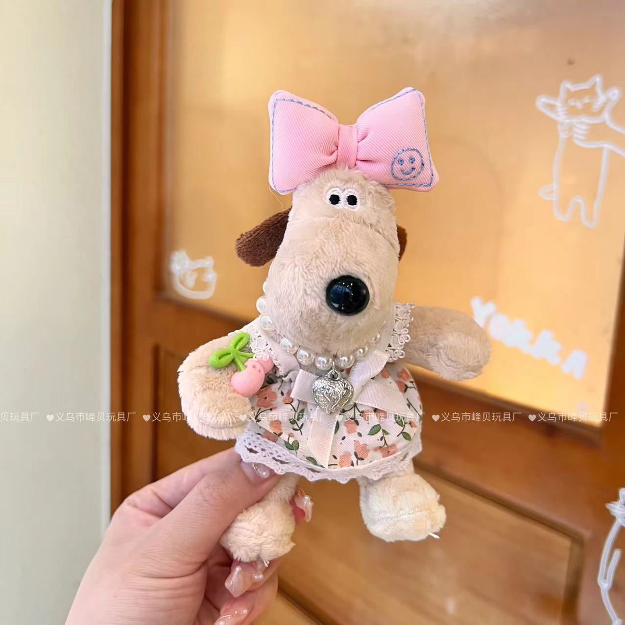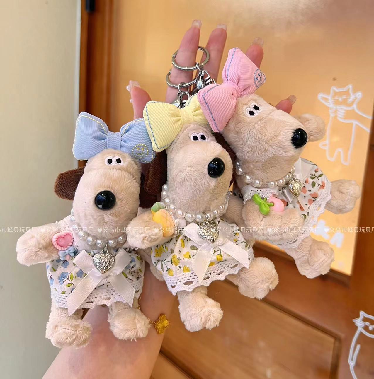 13cm 뜨거운 판매 핸드독 격자 무늬 활 레이스 가장자리 원피스 키 체인 교수형 가방 장식품