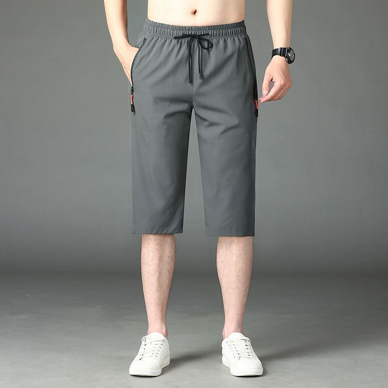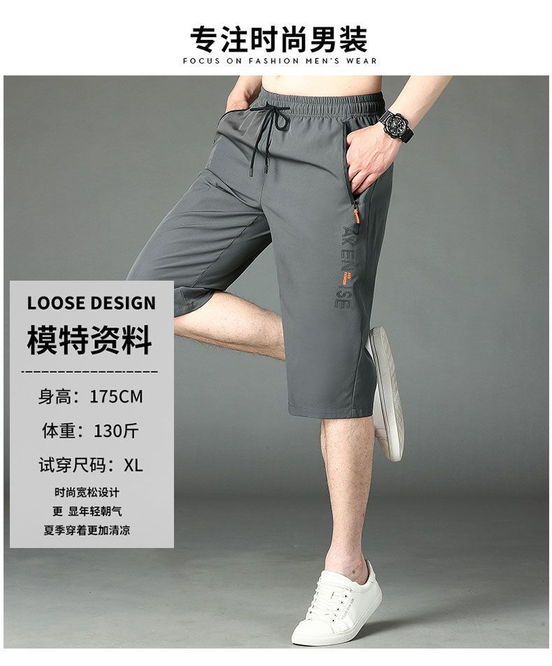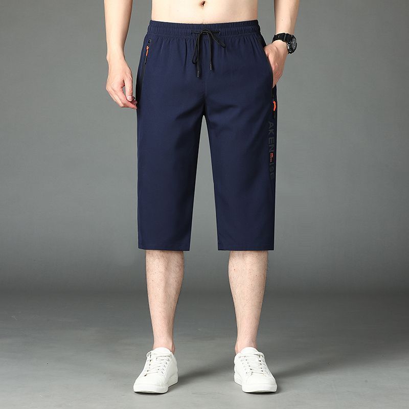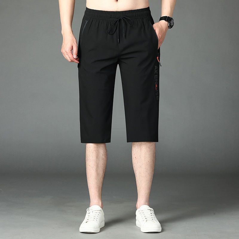 여름 고급 아이스 실크 카프리 팬츠 남성용 루즈 프린트 스트레이트 반바지 플러스 사이즈 퀵 드라이 카프리 팬츠