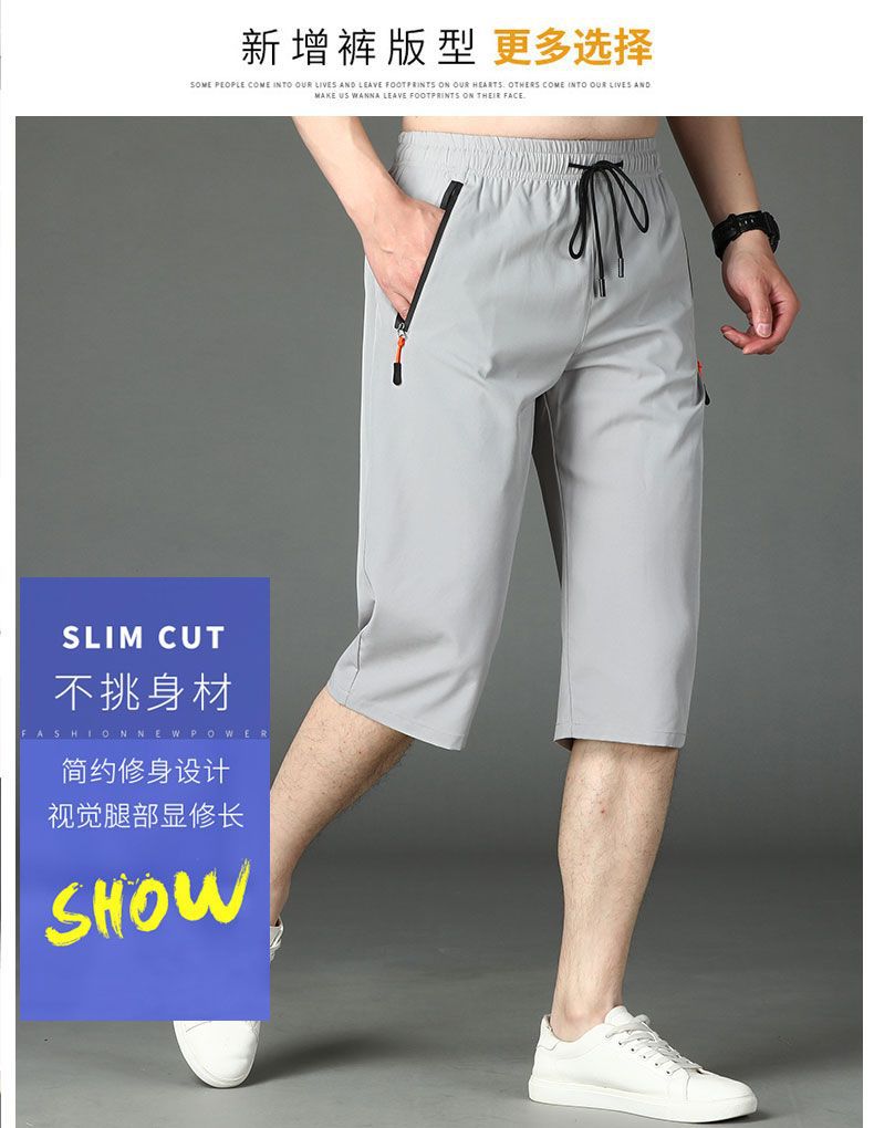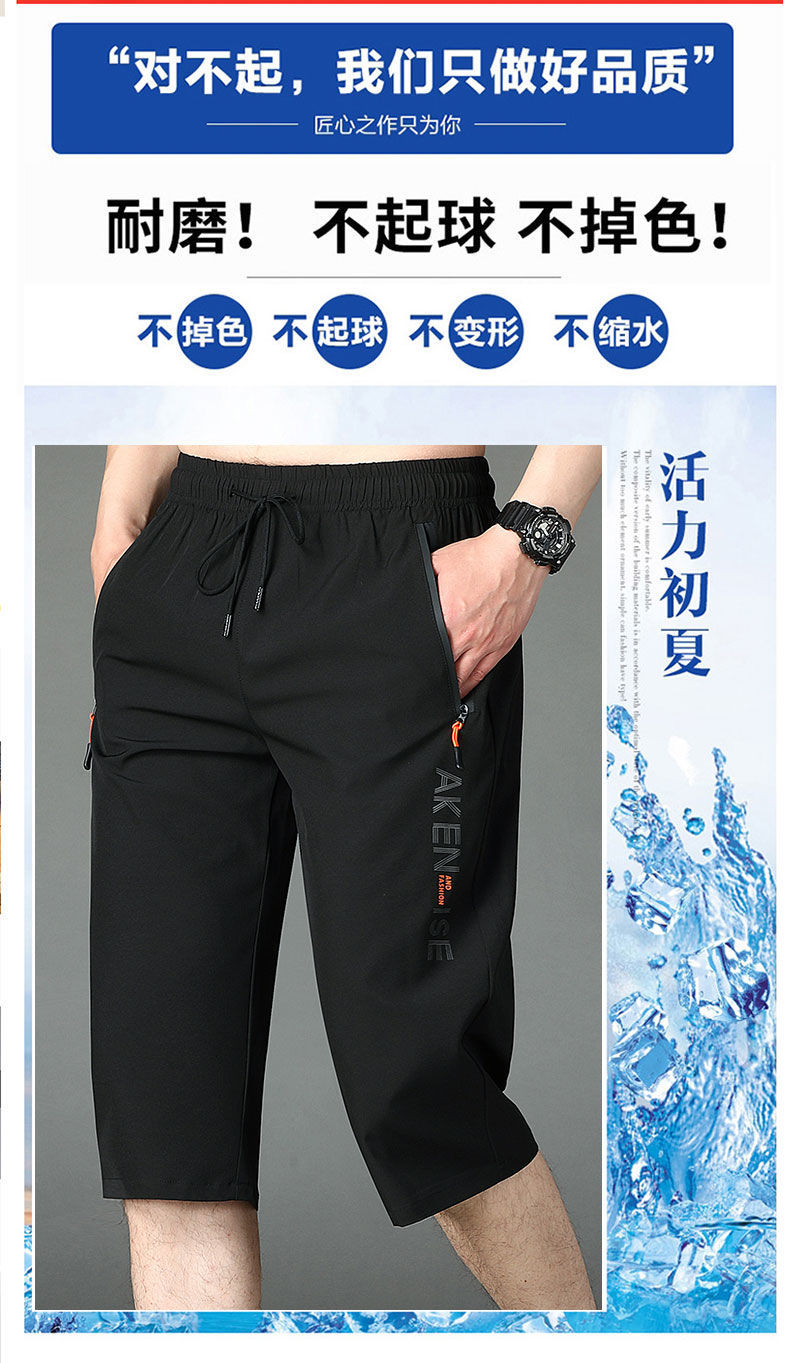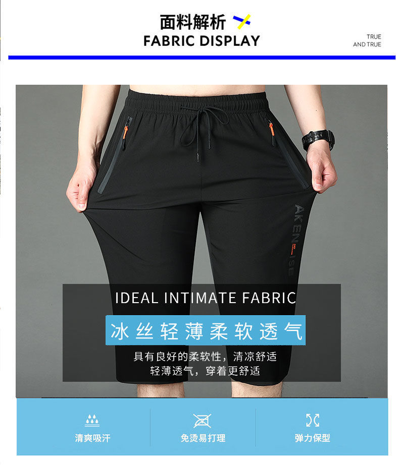 여름 고급 아이스 실크 카프리 팬츠 남성용 루즈 프린트 스트레이트 반바지 플러스 사이즈 퀵 드라이 카프리 팬츠스토어 가기