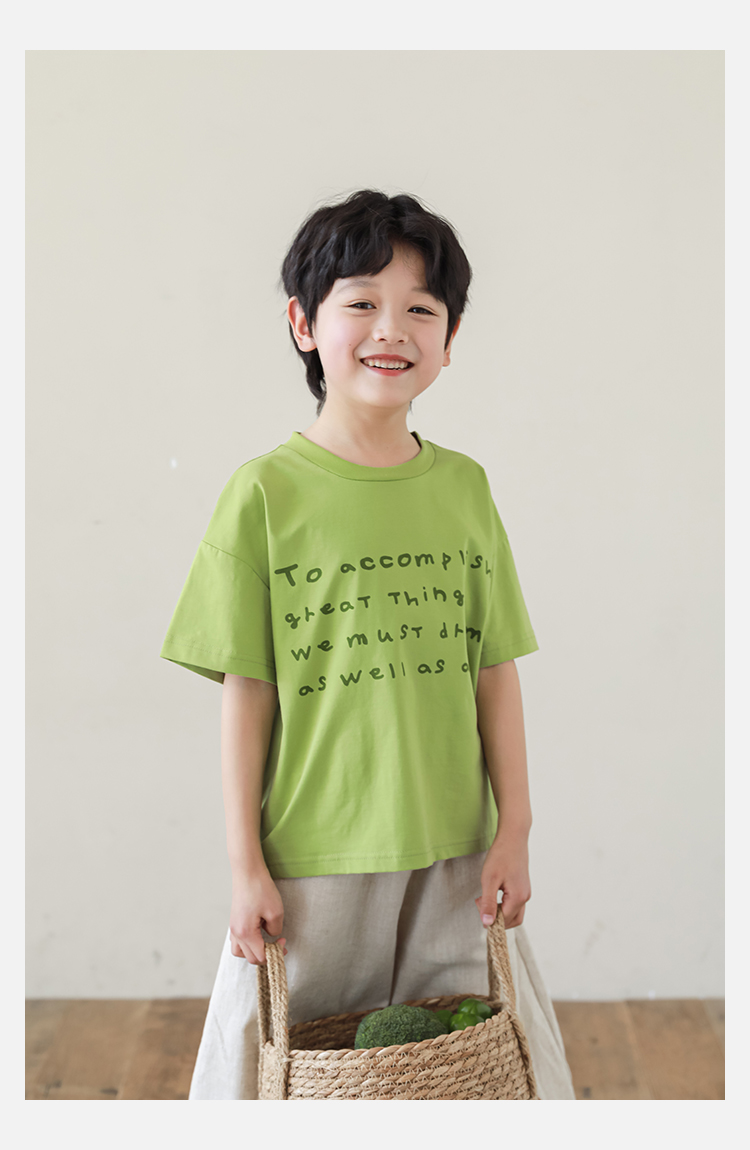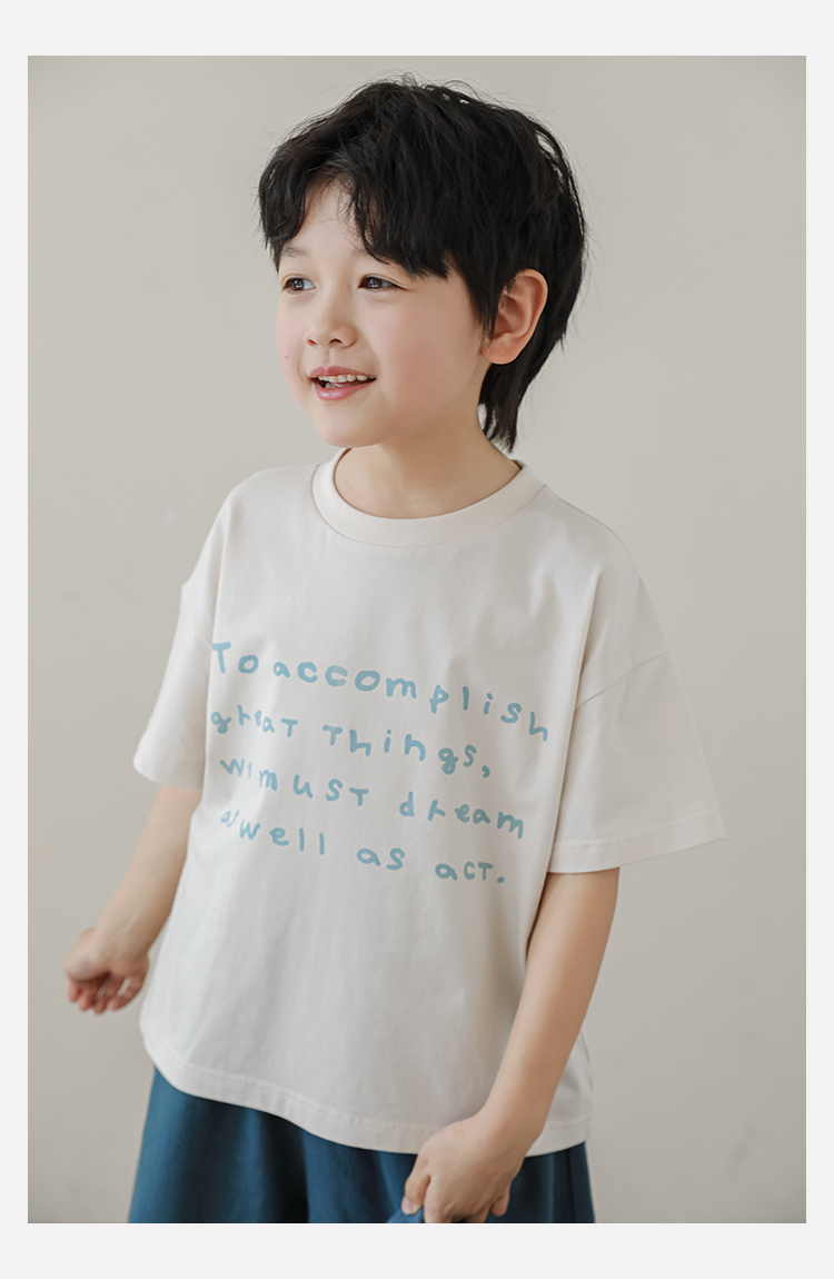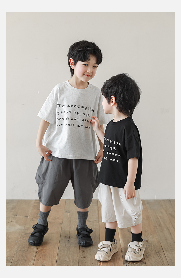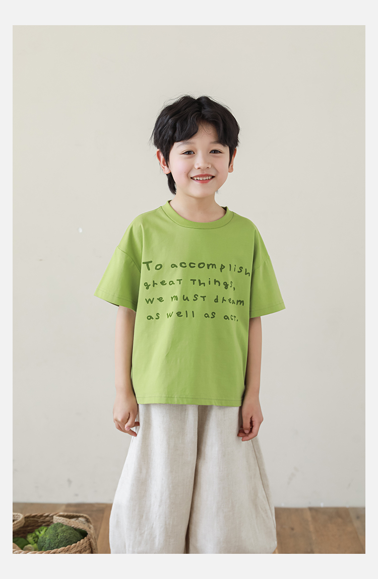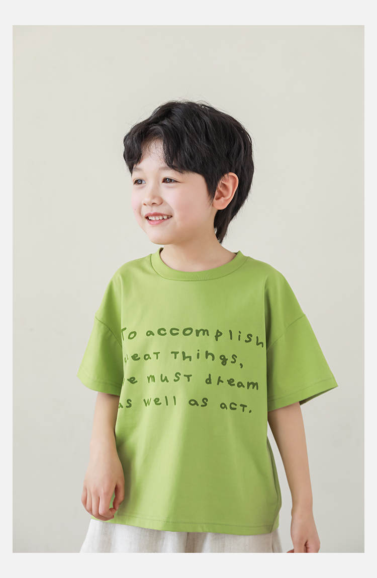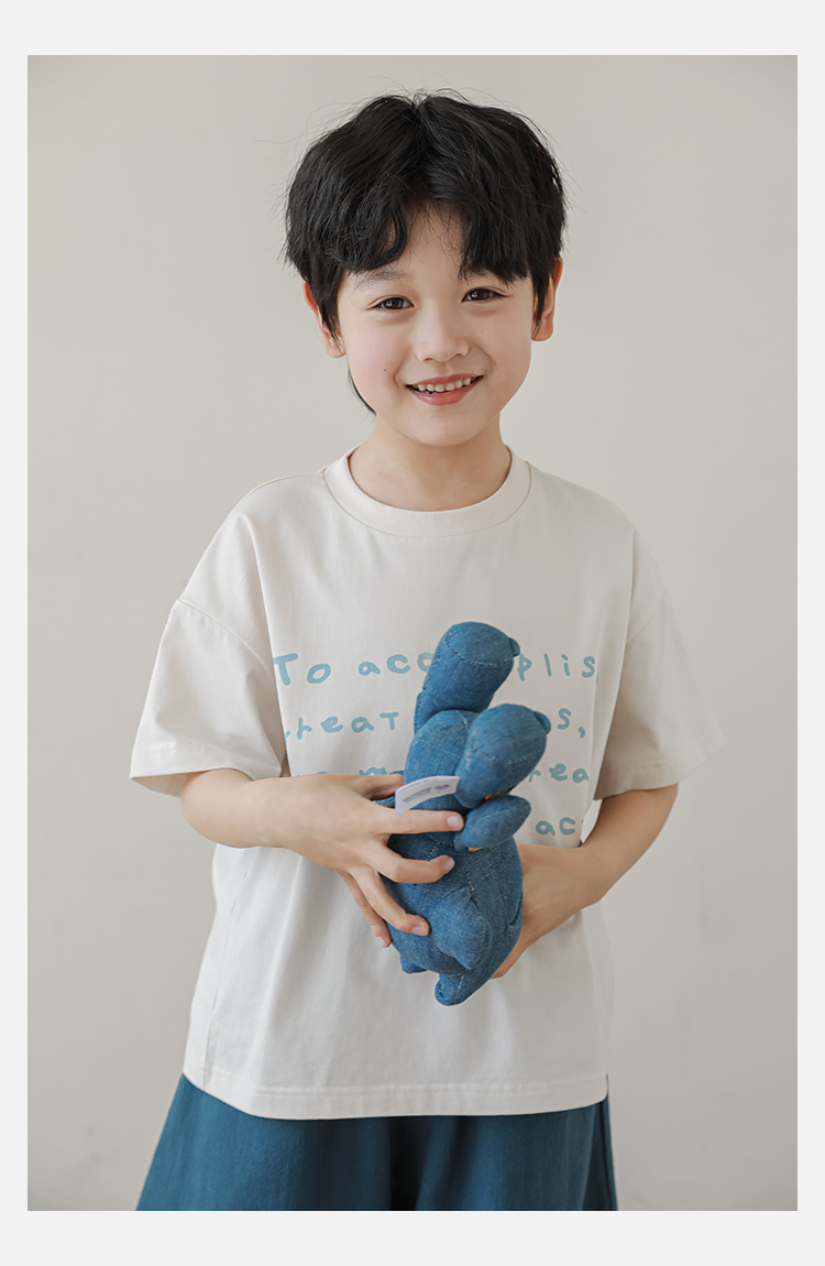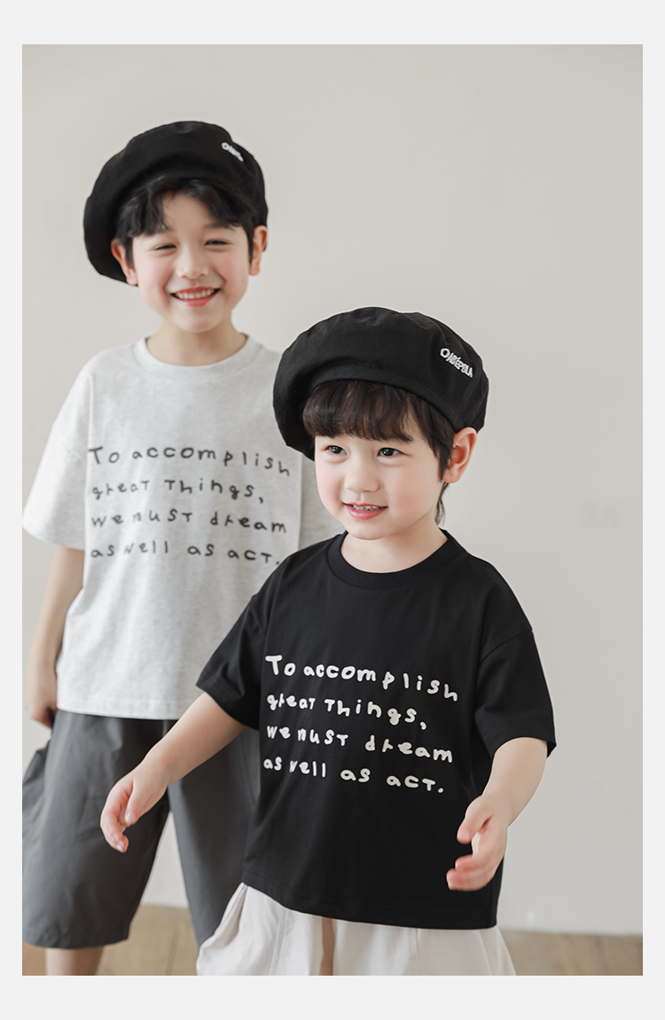 Wuri Boys의 2025 년 여름 새로운 반팔 크루 넥 티셔츠 어린이 편지 인쇄 느슨한 캐주얼 탑스토어 가기