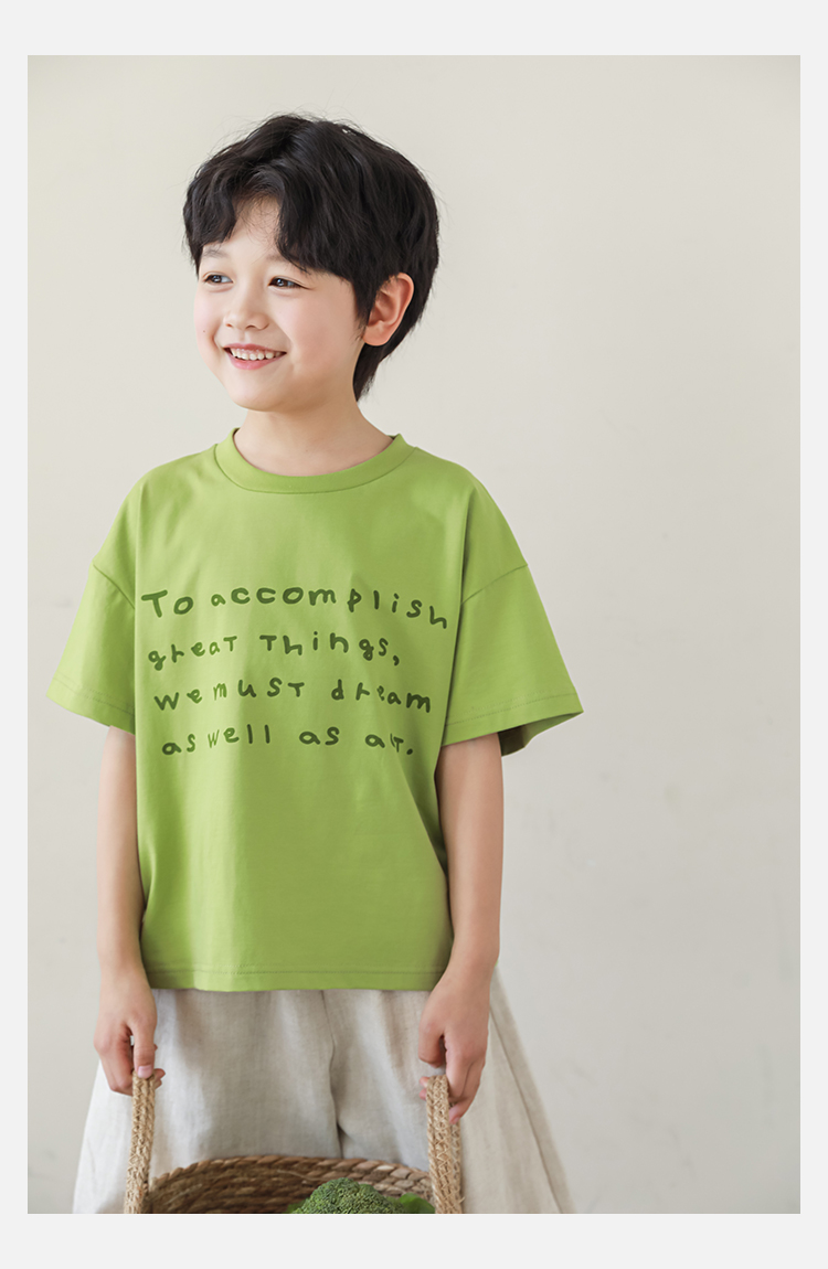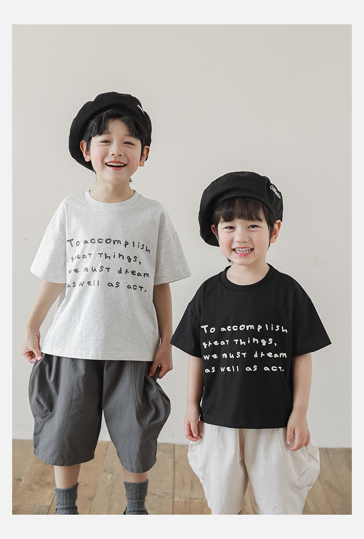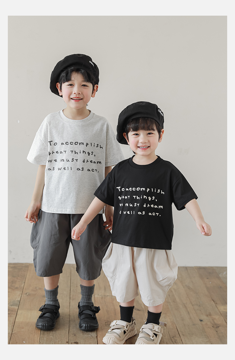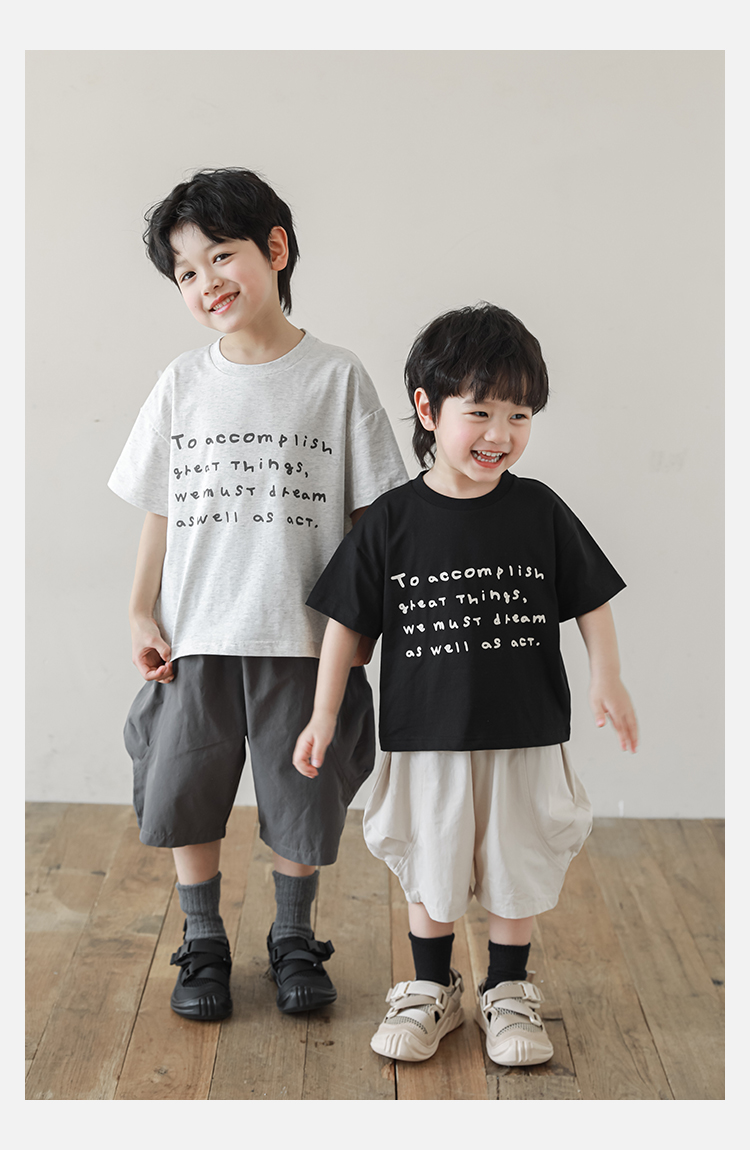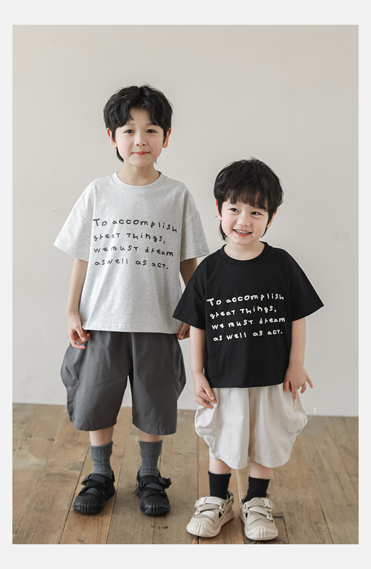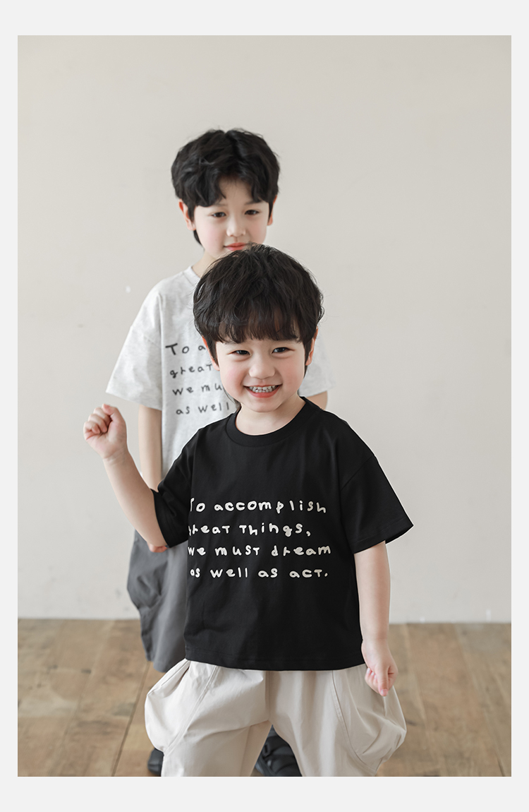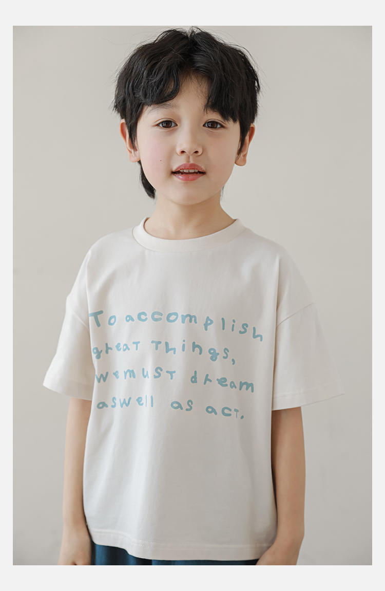 Wuri Boys의 2025 년 여름 새로운 반팔 크루 넥 티셔츠 어린이 편지 인쇄 느슨한 캐주얼 탑스토어 가기