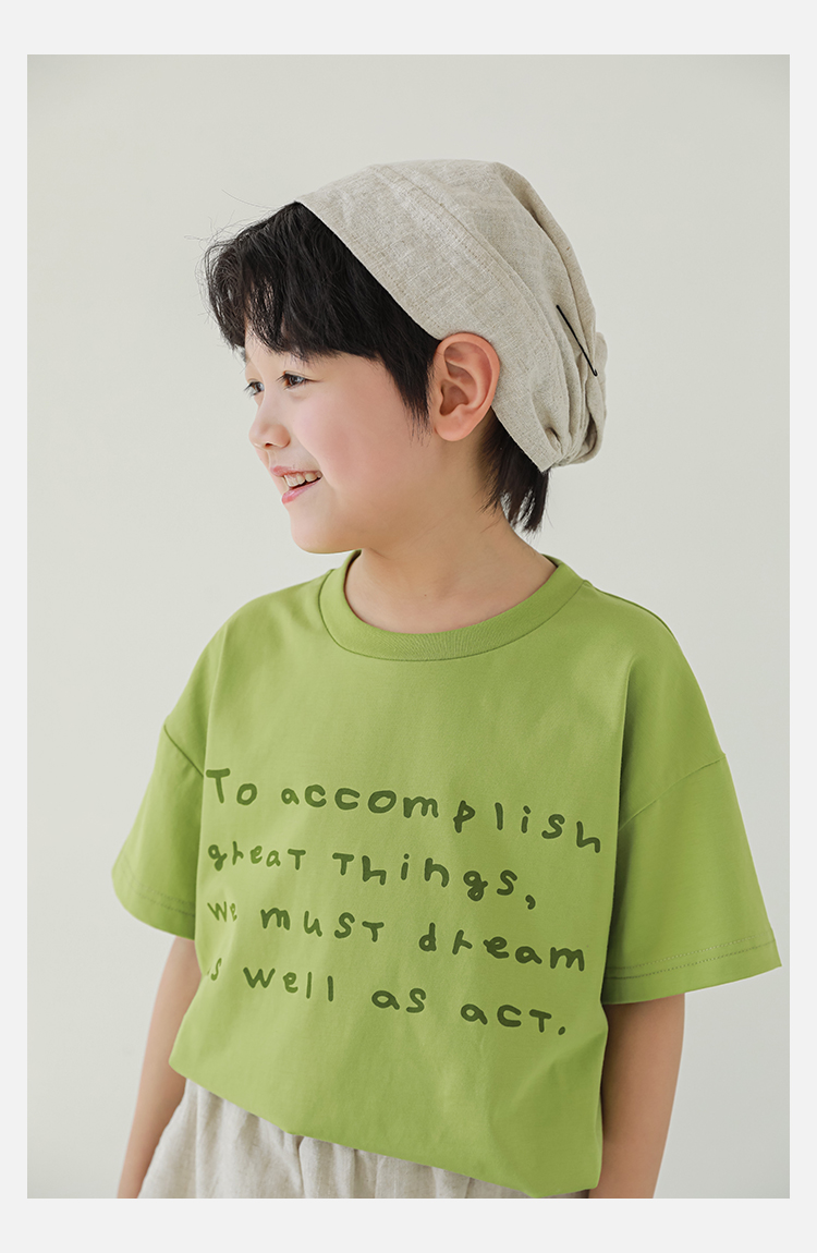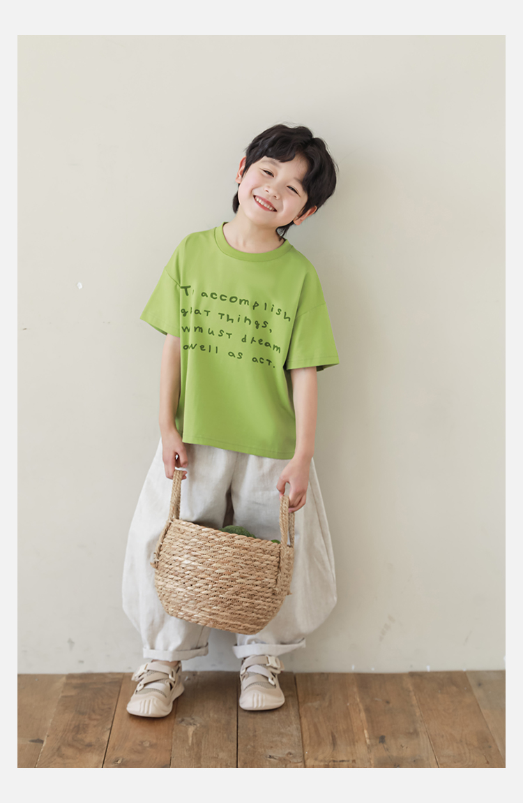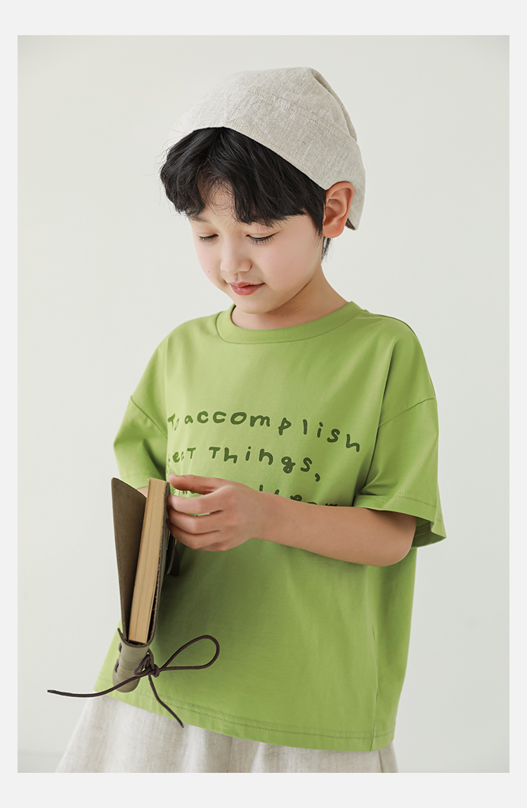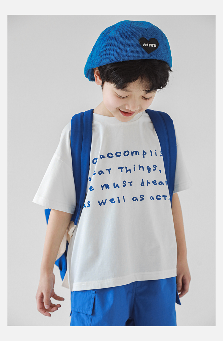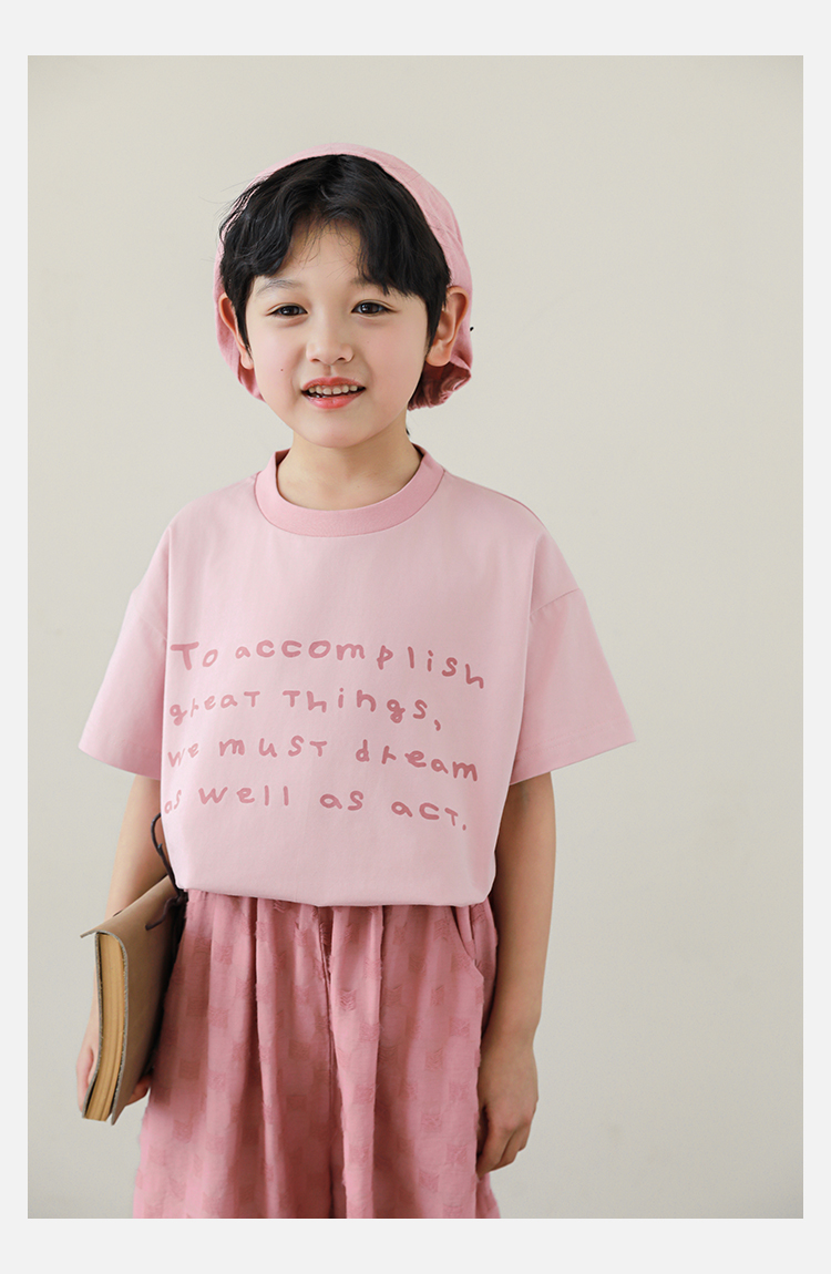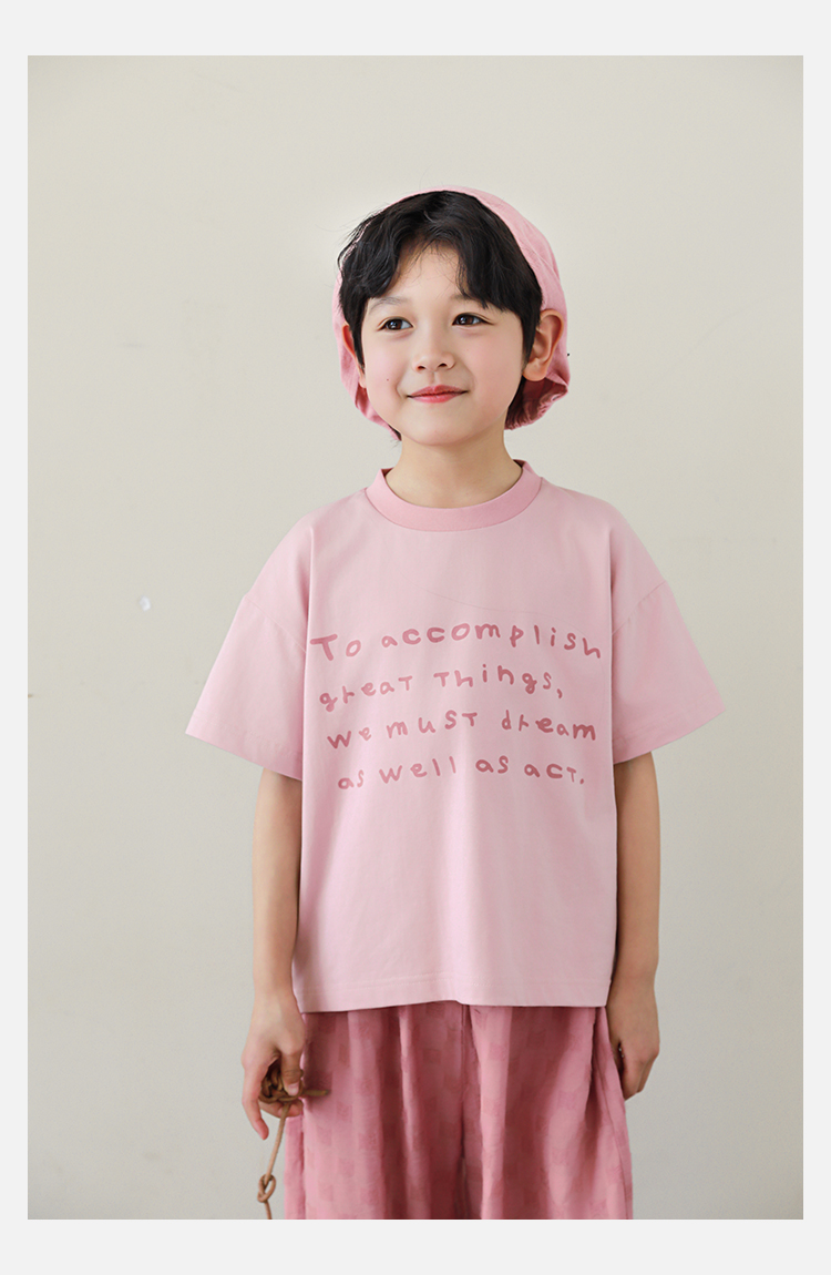 Wuri Boys의 2025 년 여름 새로운 반팔 크루 넥 티셔츠 어린이 편지 인쇄 느슨한 캐주얼 탑스토어 가기