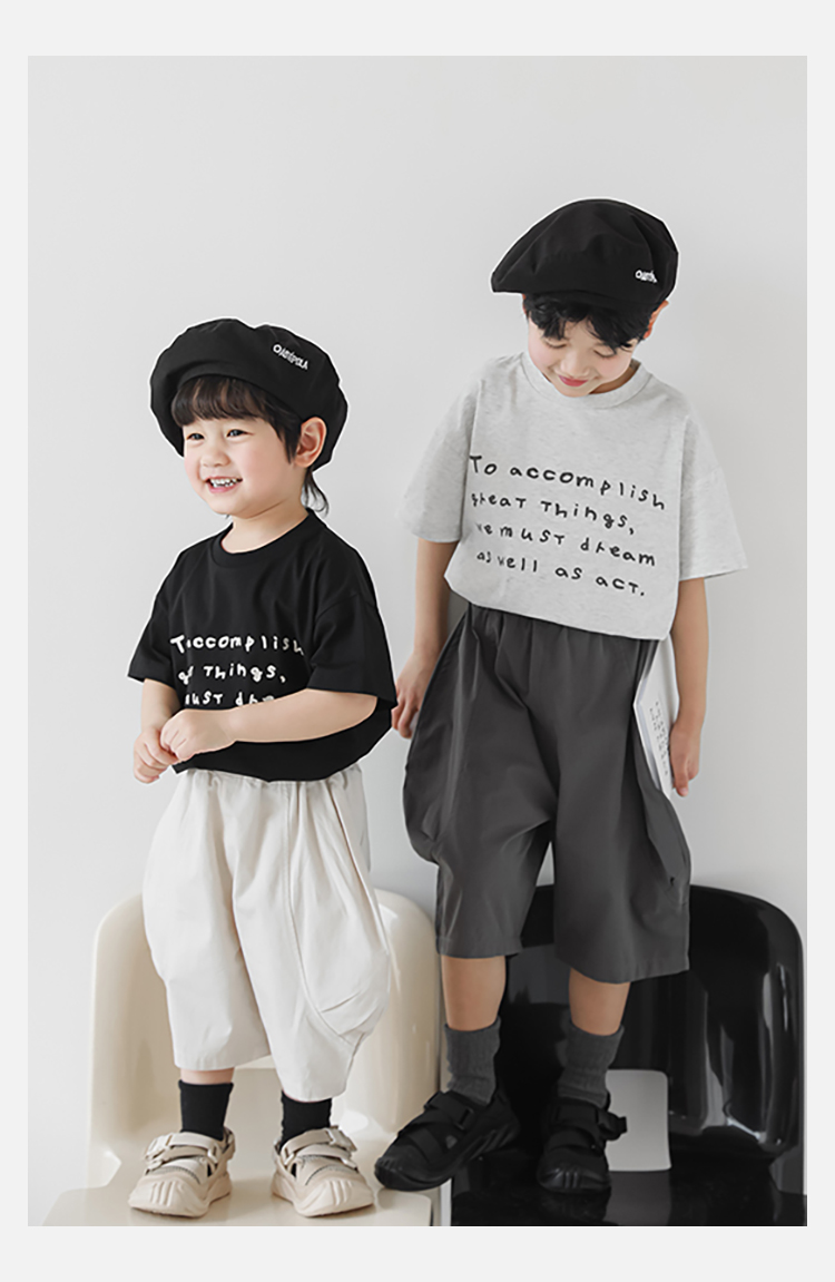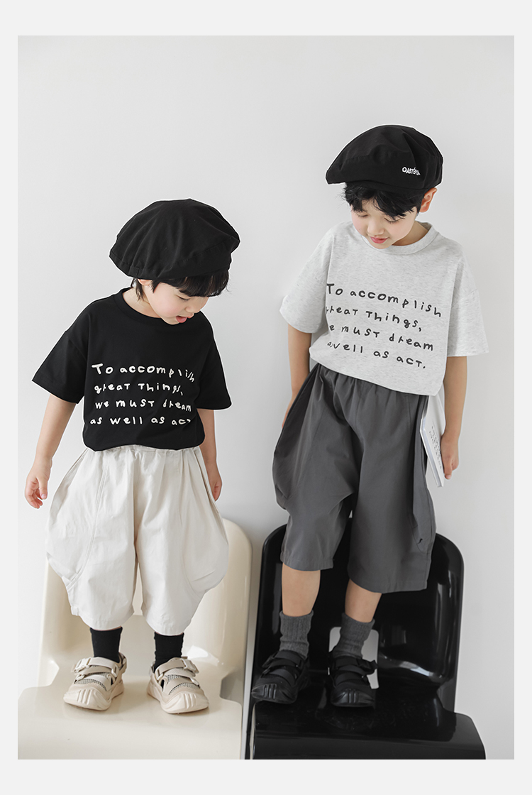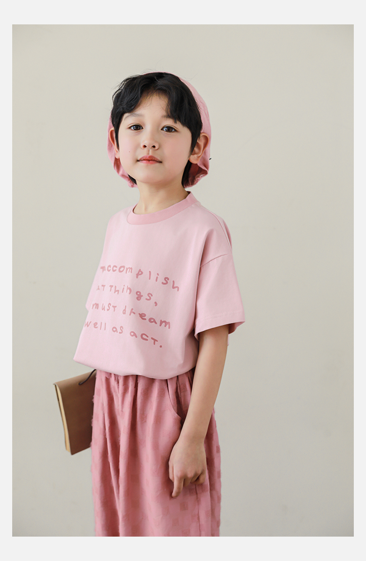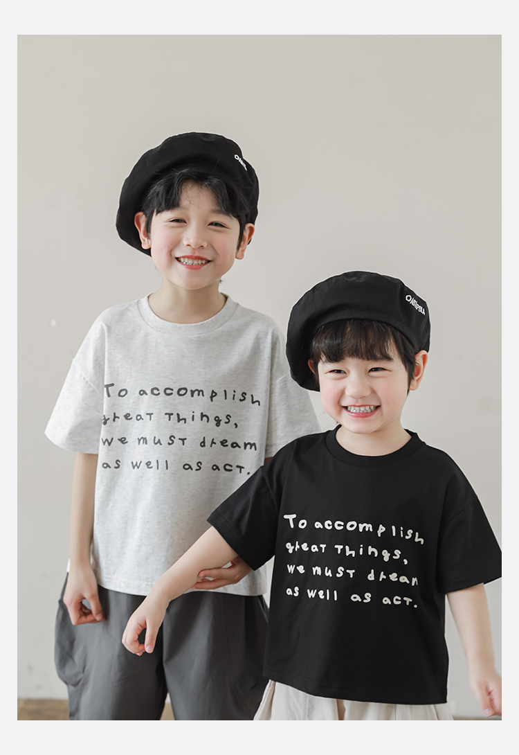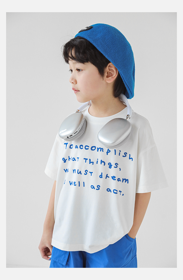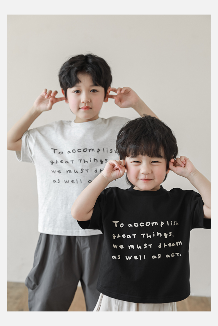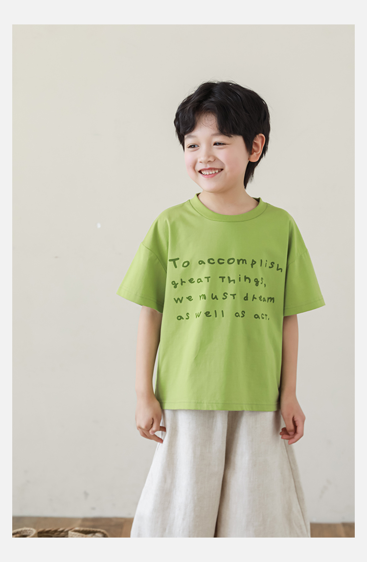Wuri Boys의 2025 년 여름 새로운 반팔 크루 넥 티셔츠 어린이 편지 인쇄 느슨한 캐주얼 탑스토어 가기