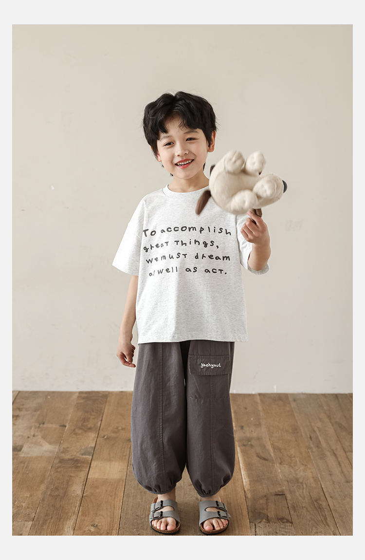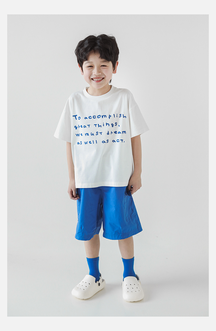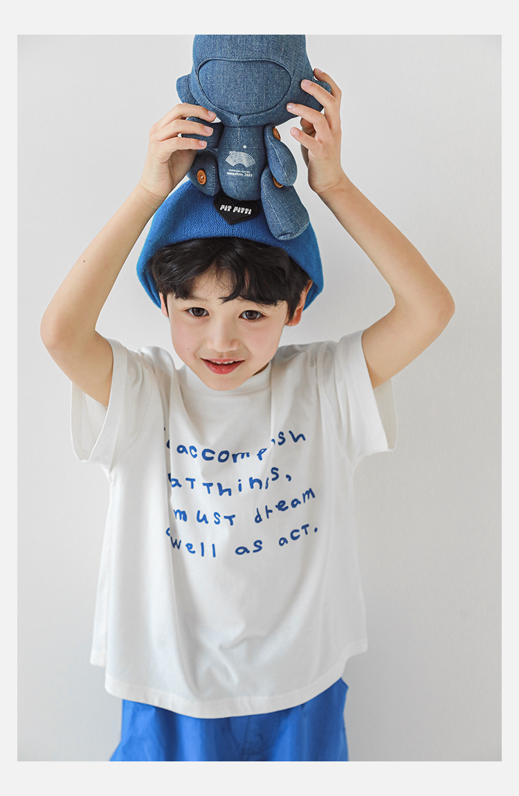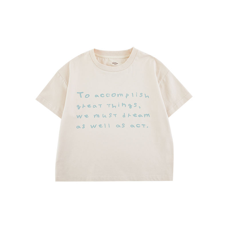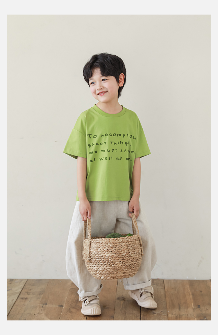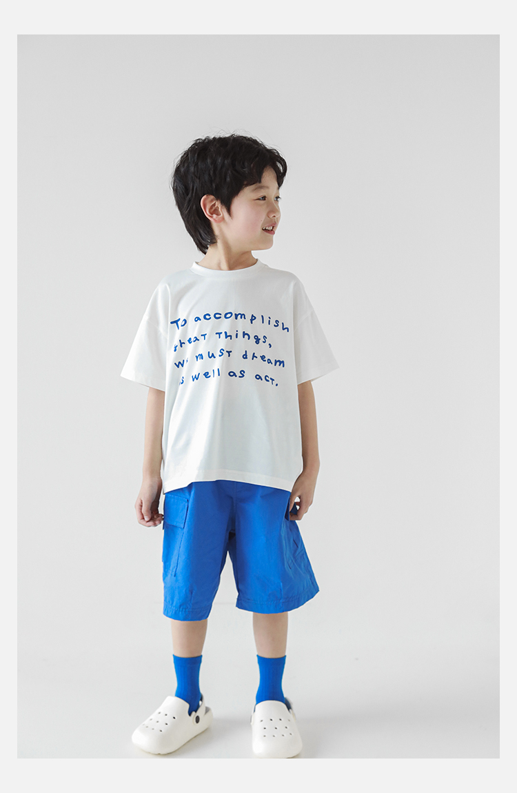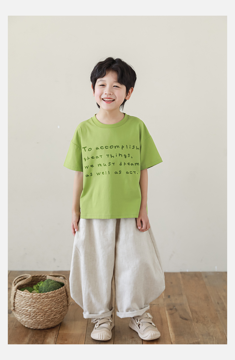 Wuri Boys의 2025 년 여름 새로운 반팔 크루 넥 티셔츠 어린이 편지 인쇄 느슨한 캐주얼 탑스토어 가기