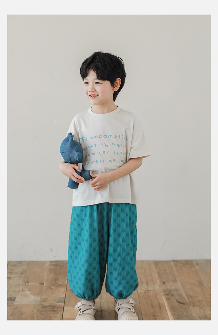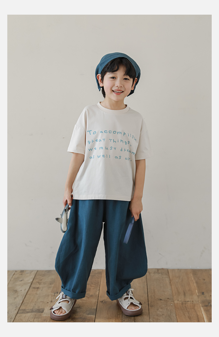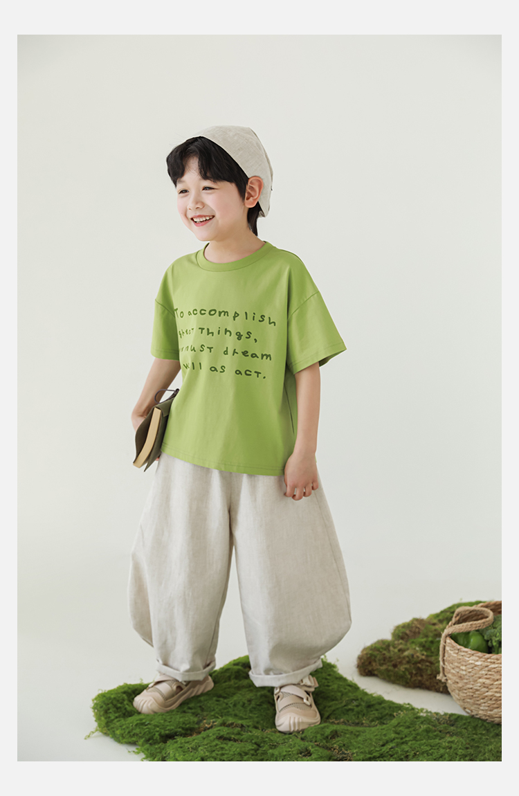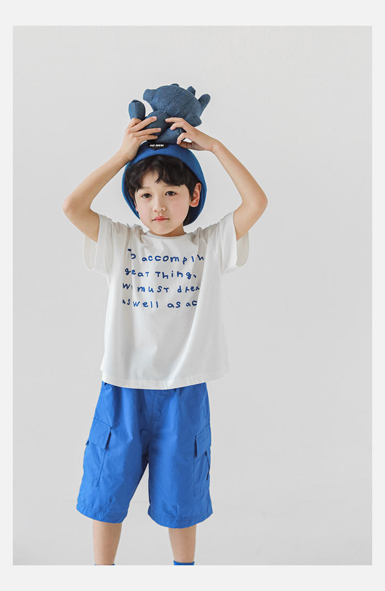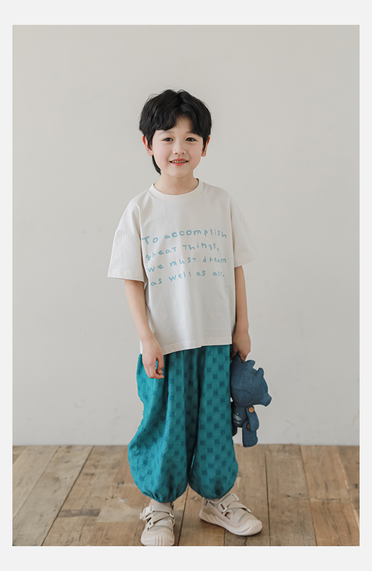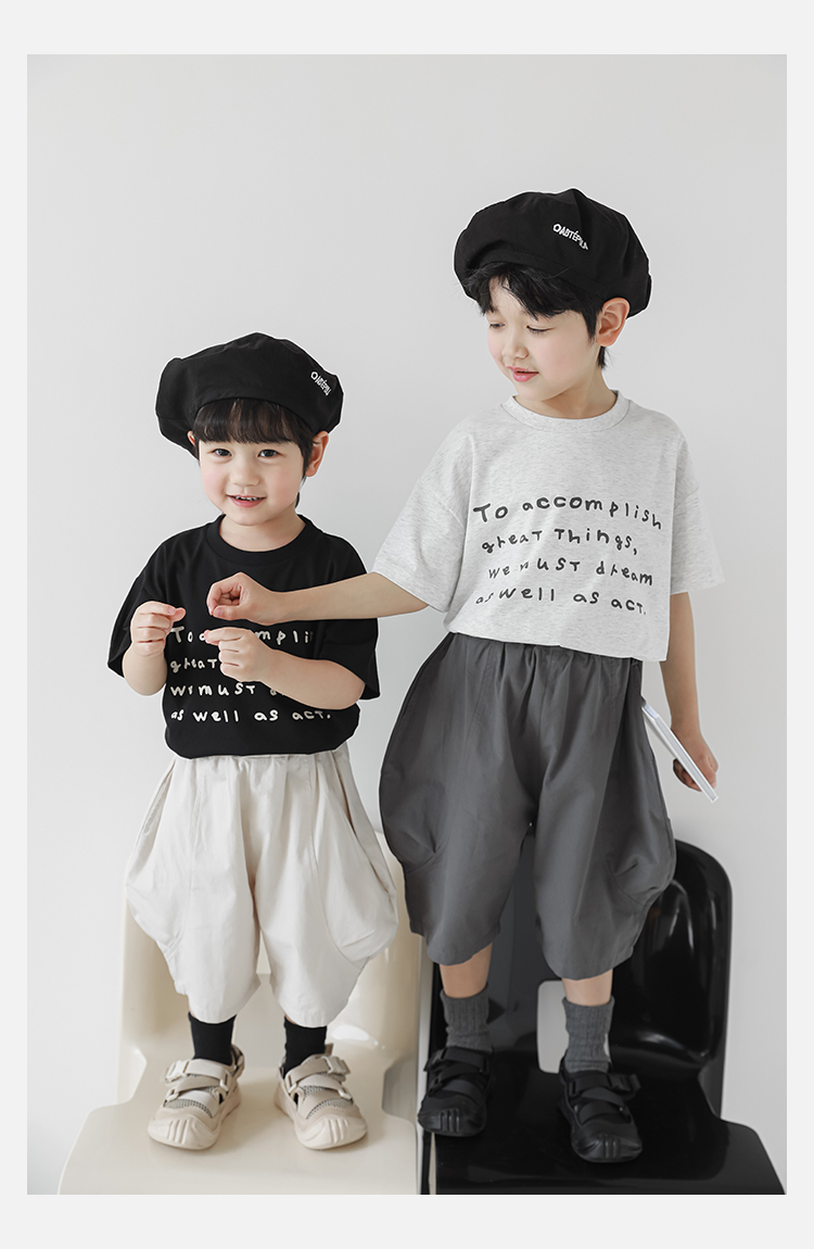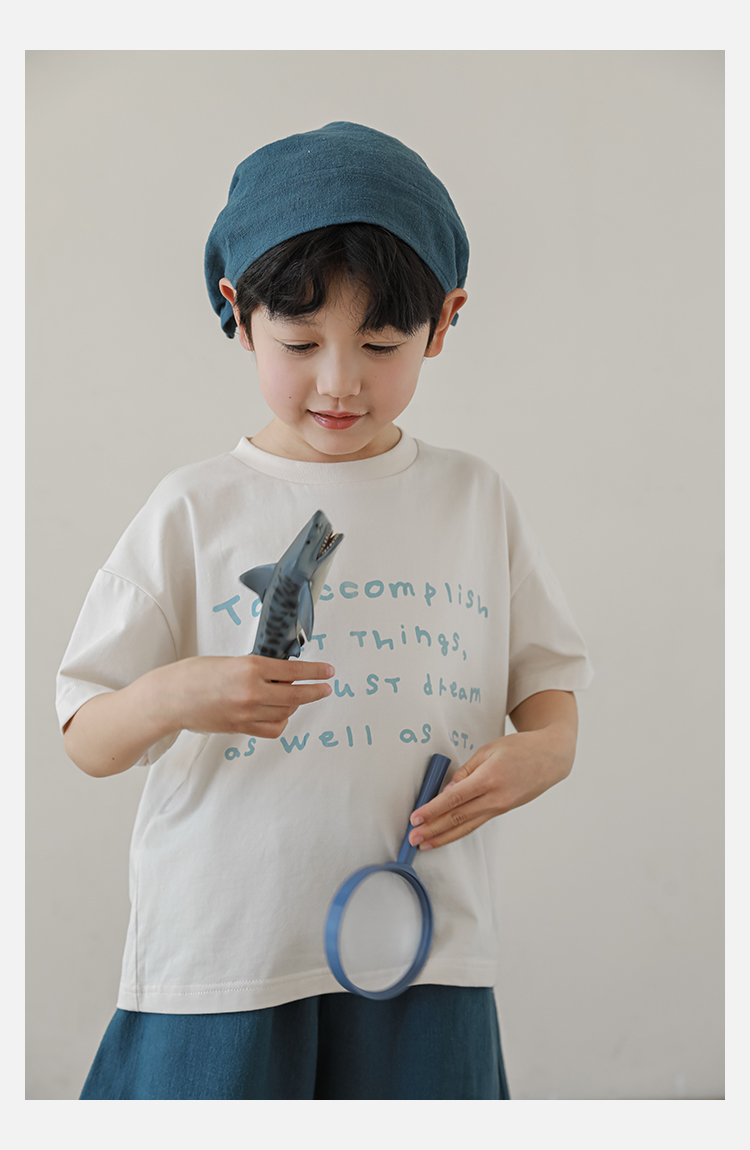 Wuri Boys의 2025 년 여름 새로운 반팔 크루 넥 티셔츠 어린이 편지 인쇄 느슨한 캐주얼 탑스토어 가기