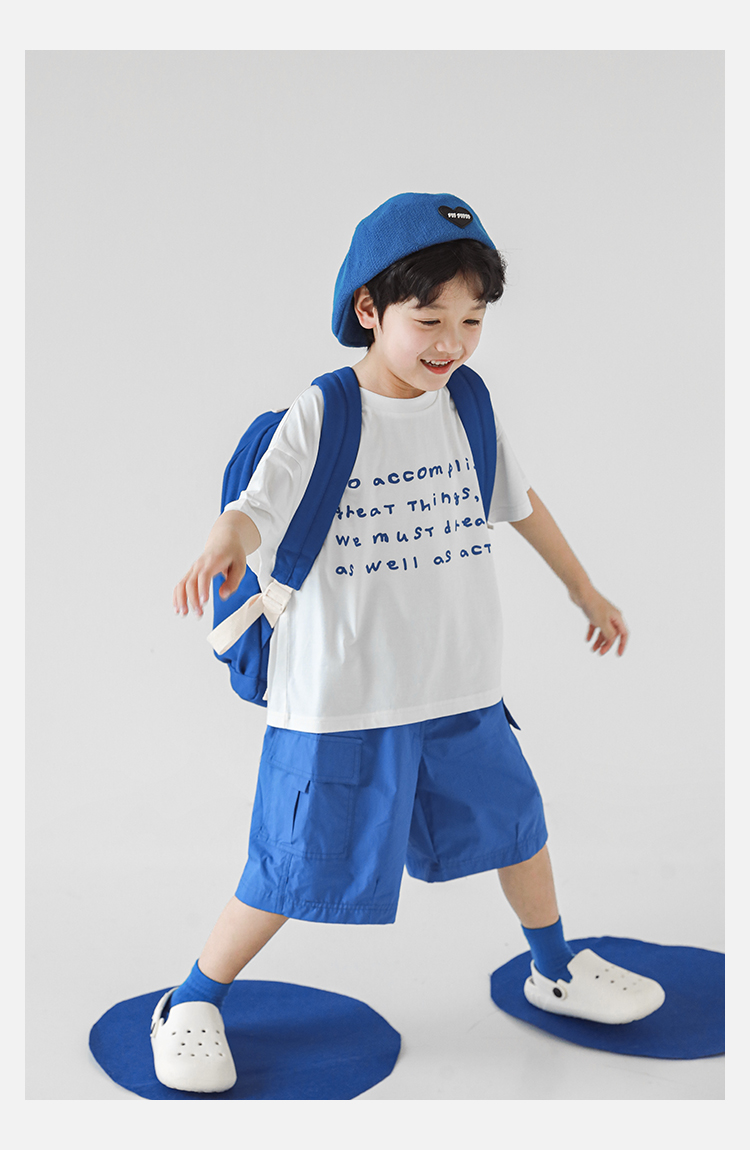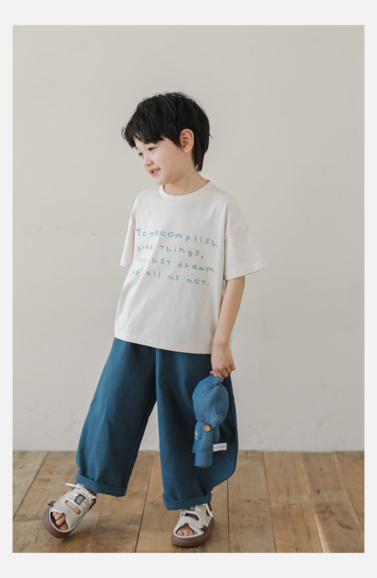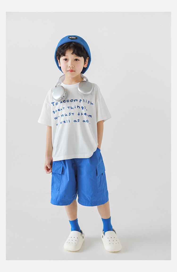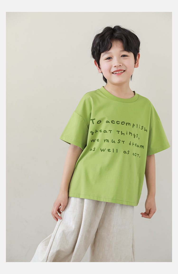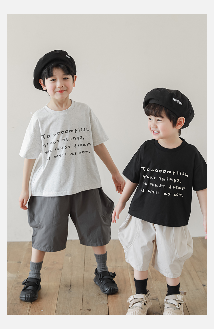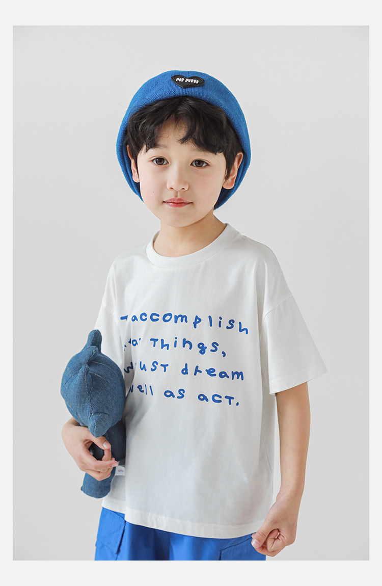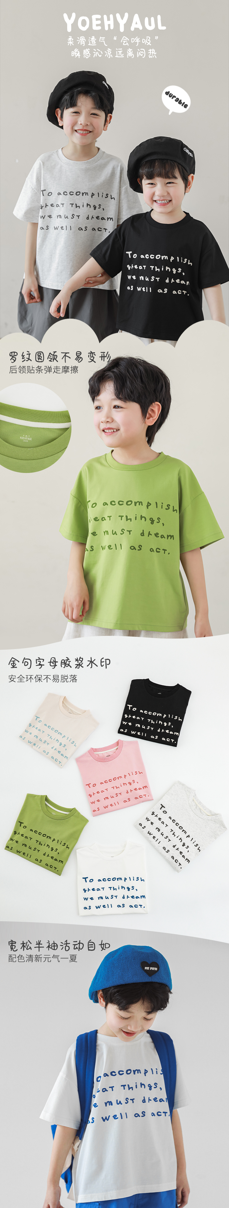 Wuri Boys의 2025 년 여름 새로운 반팔 크루 넥 티셔츠 어린이 편지 인쇄 느슨한 캐주얼 탑