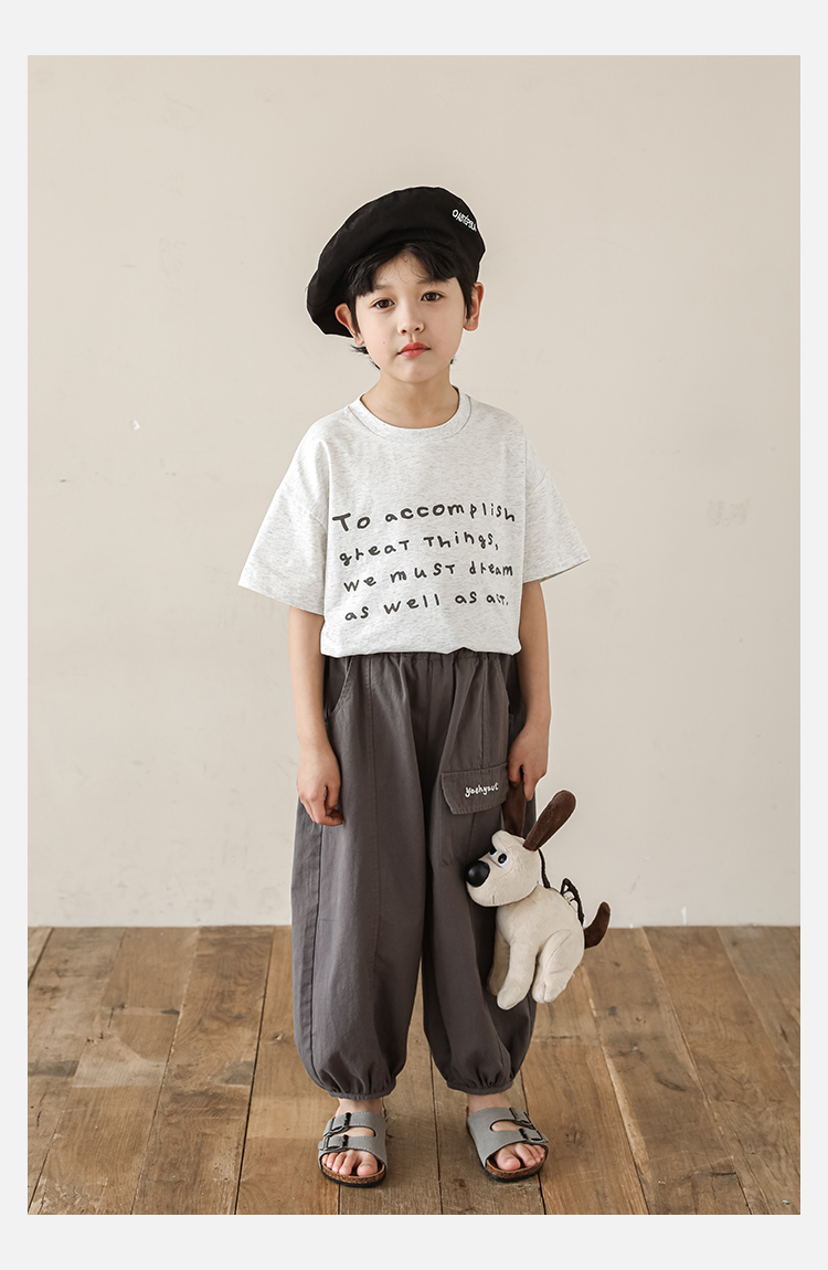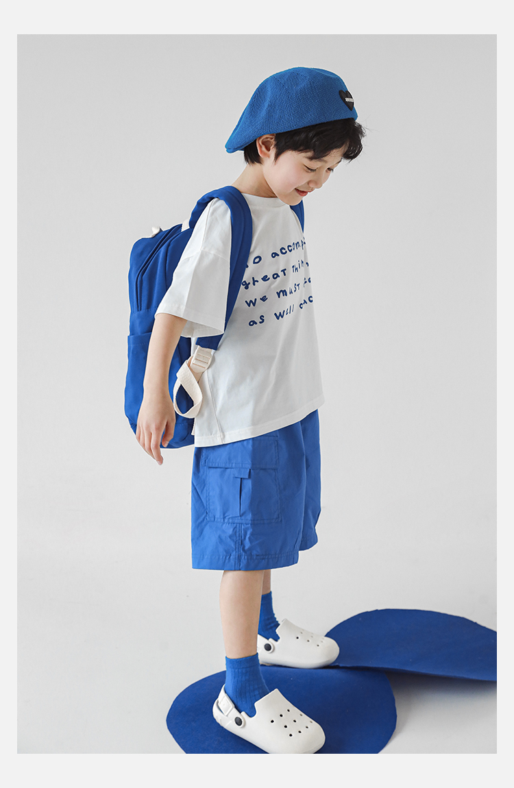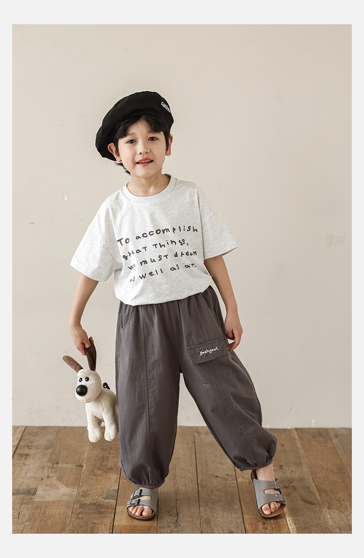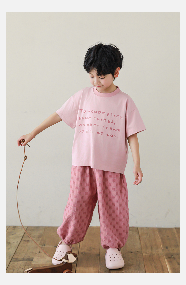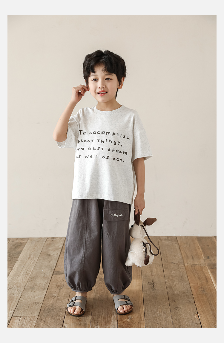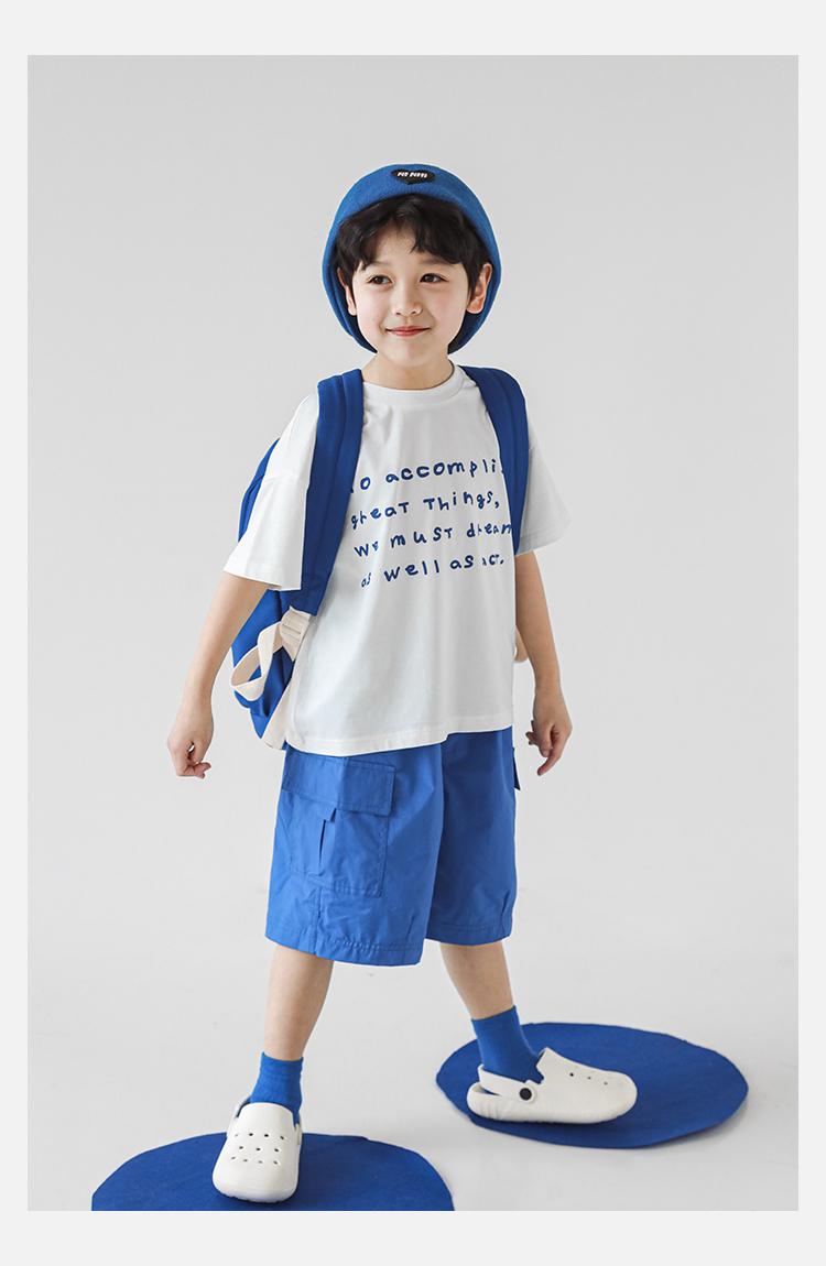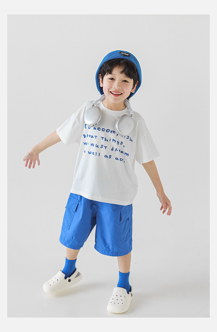 Wuri Boys의 2025 년 여름 새로운 반팔 크루 넥 티셔츠 어린이 편지 인쇄 느슨한 캐주얼 탑