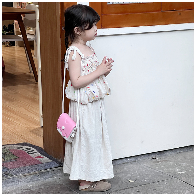 어린이 가방 2024 새로운 캔디 컬러 구름 비스킷 압력 쉘 작은 사각형 가방 신선한 소녀 크로스 바디 백 빨간 봉투