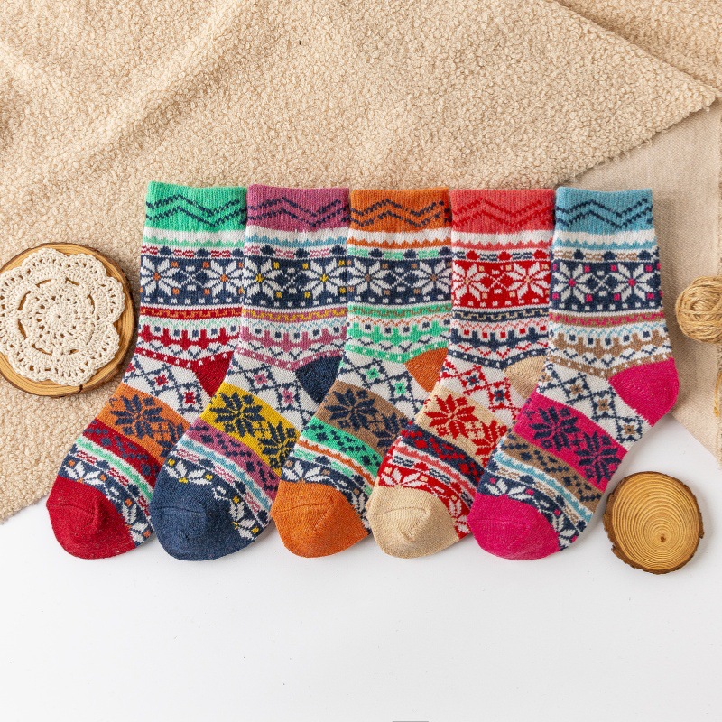 24 가을 겨울 신상 웨이브 팔각 꽃무늬 여성용 중목 양모 양말 두꺼운 니트 001 해외 무역 보온 양말