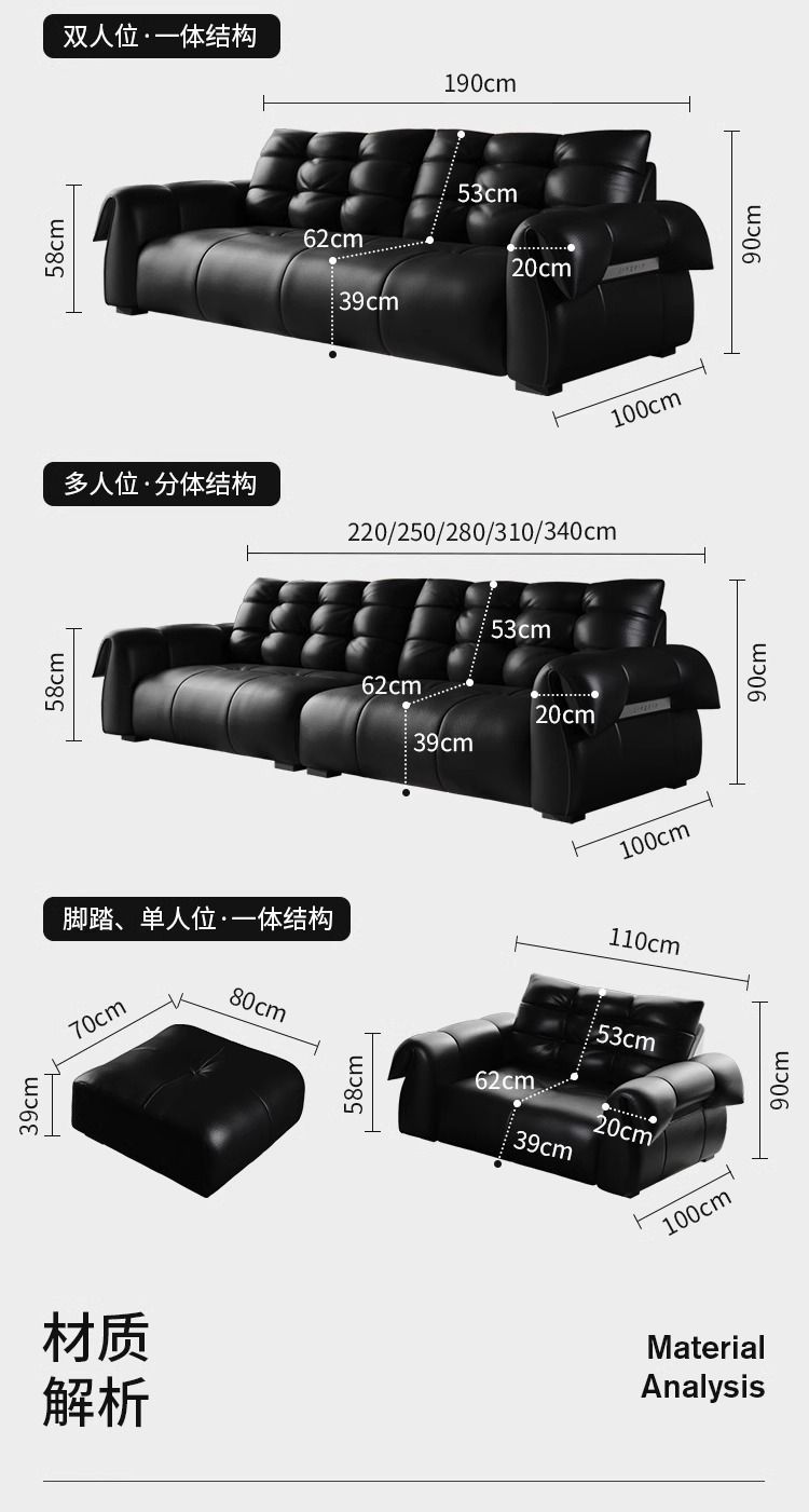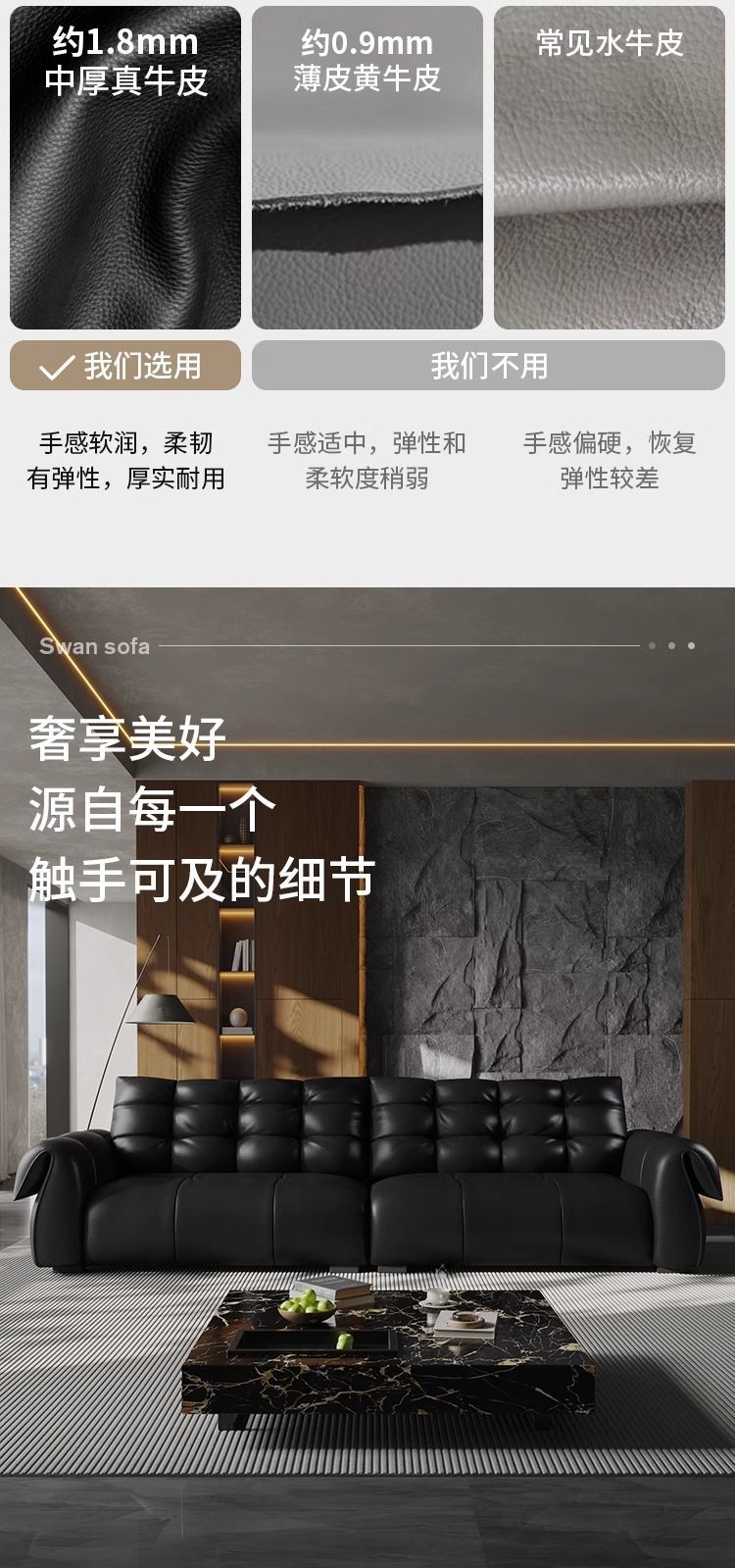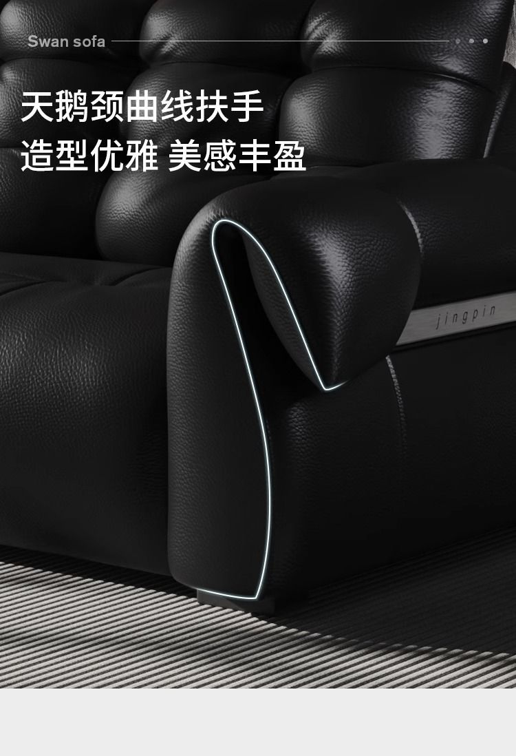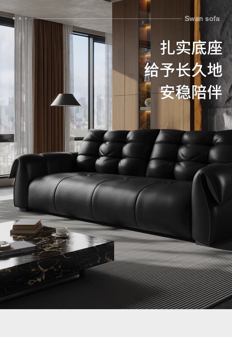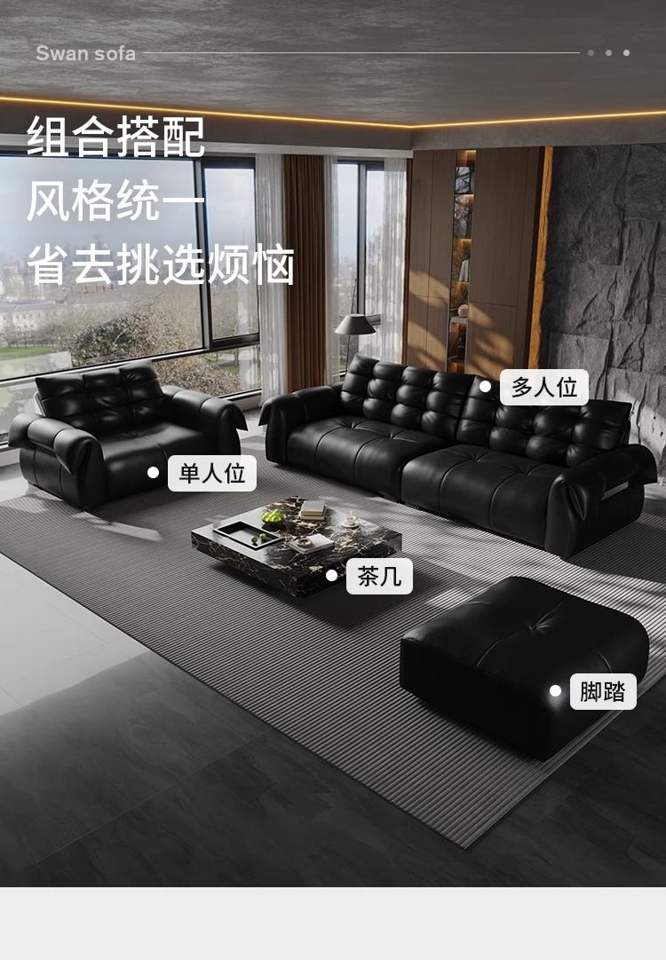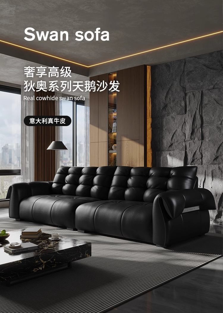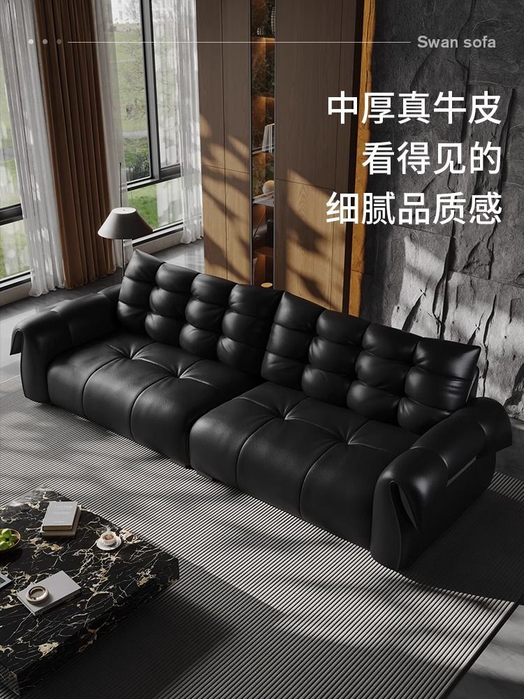 이탈리아 미니멀리스트 레트로 백조 가죽 소파 블랙 탑 레이어 카우보이 거실 스트레이트 행 골동품 소파 조합