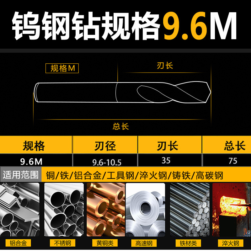 • 9.6M*1*텅스텐 강철*텅스텐 강철 드릴