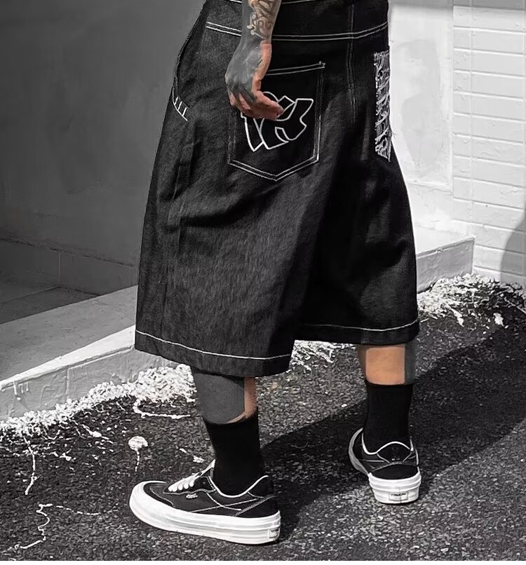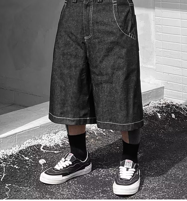 2024 새로운 얇은 데님 반바지 남자 5 점 바지 여름 느슨한 남자 바지 한국 스타일 스트레이트 트렌디 브랜드 반바지스토어 가기