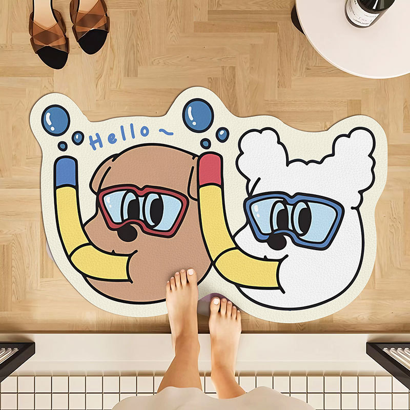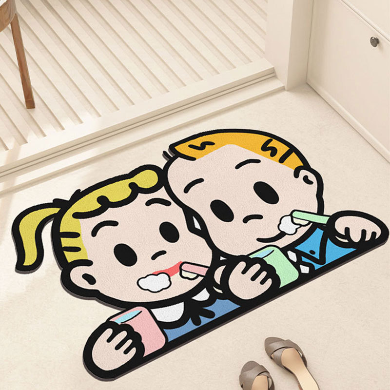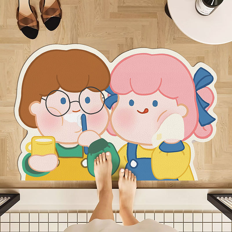 만화 귀여운 특수 모양의 욕실 도어 매트 가정용 욕실 물 흡수성 빠른 건조 미끄럼 방지 다이아몬드 머드 매트