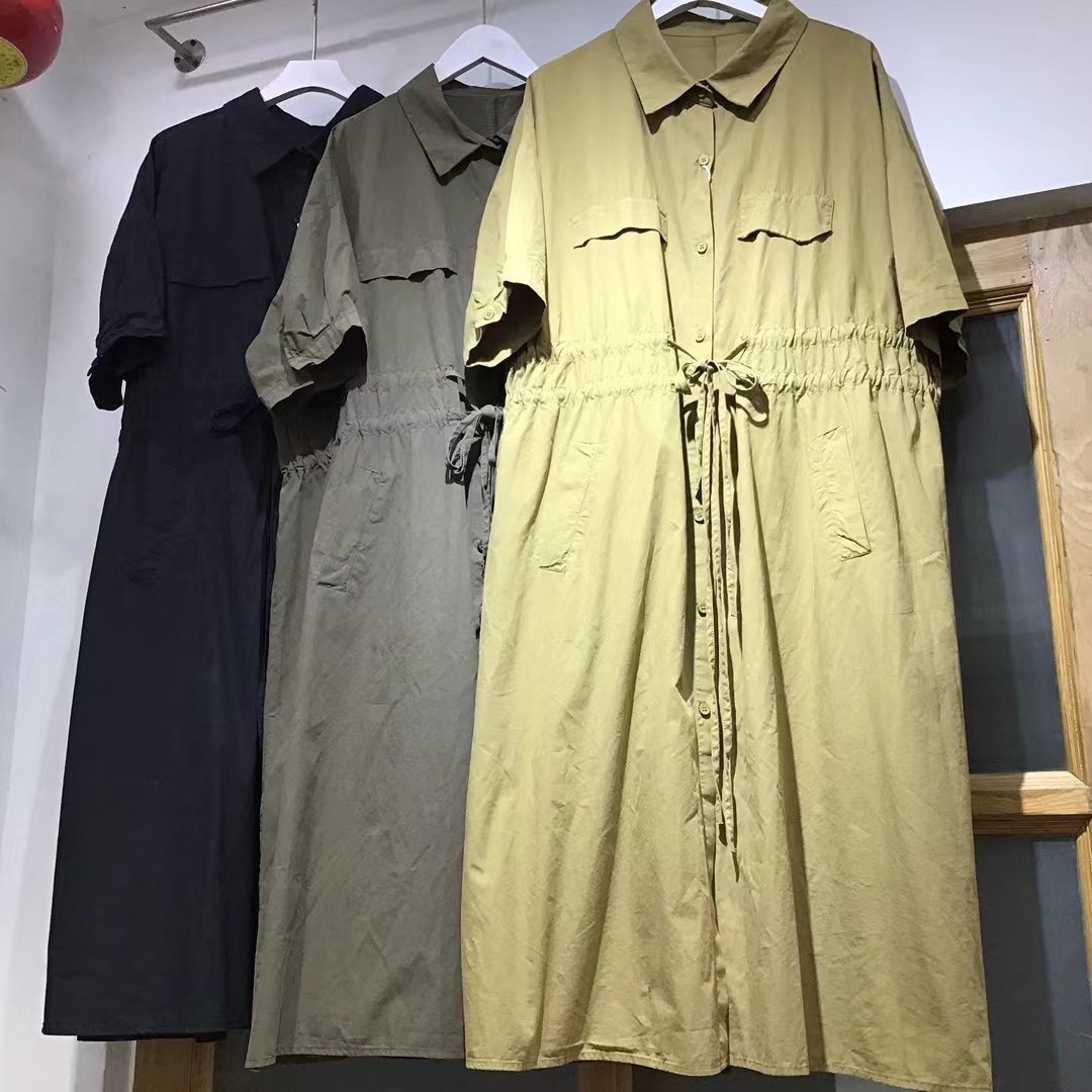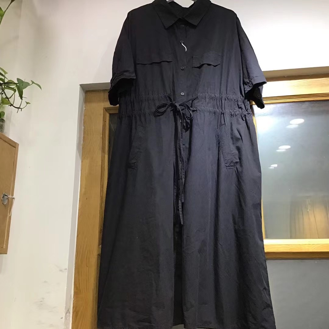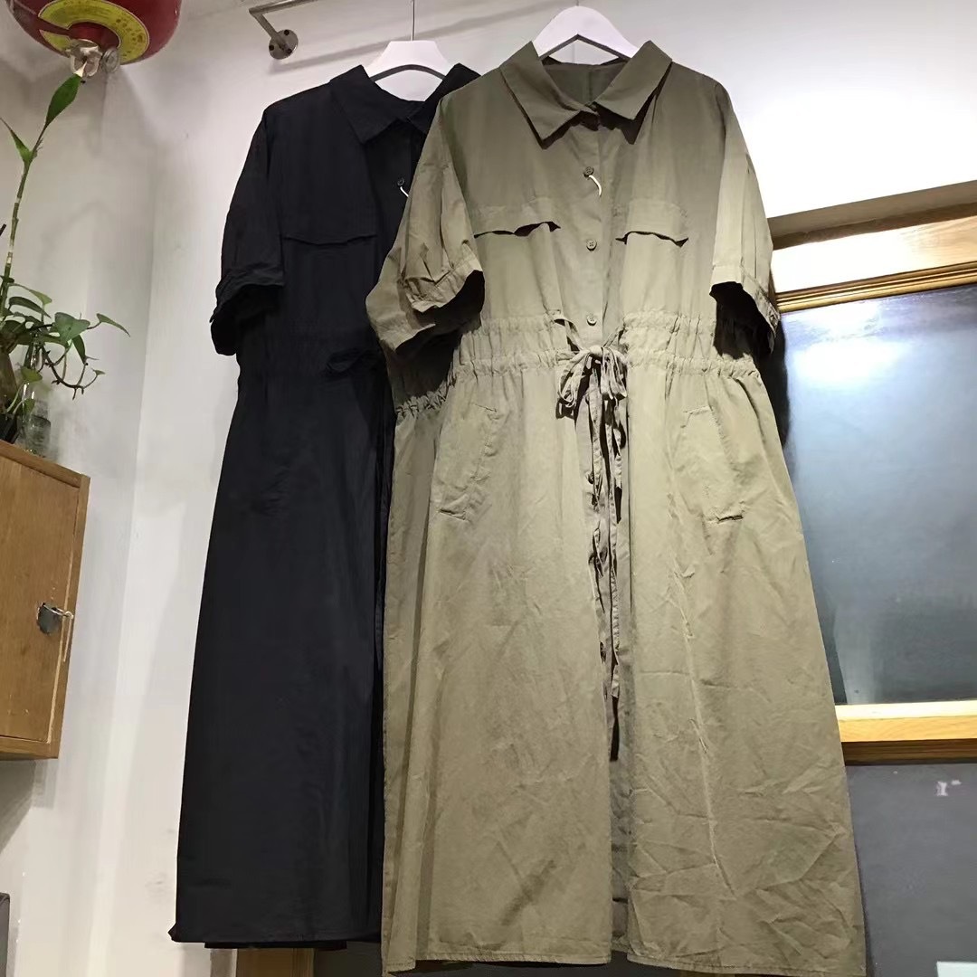 반팔 원피스 2024 예술적 단순 레트로 라셀 싱글 브레스트 드로우 스트링 허리 느슨한 카디건 원피스 여성스토어 가기
