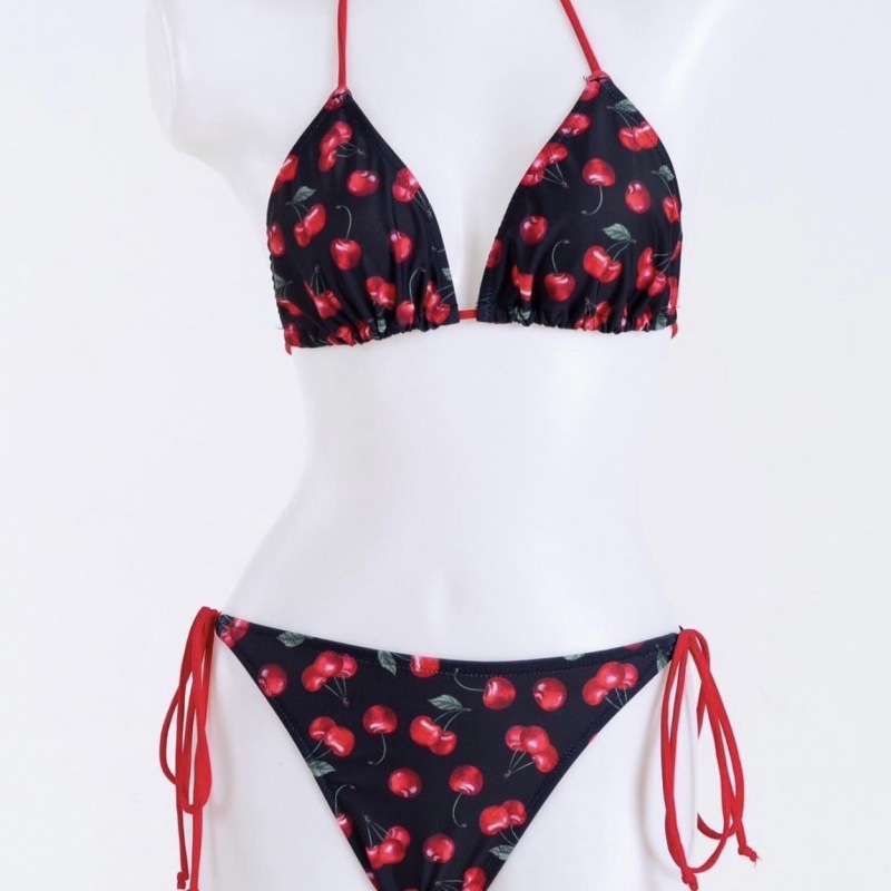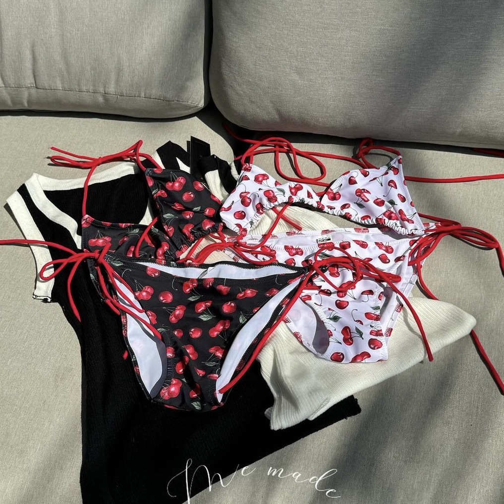 패션 스타일 비키니 체리 프린트 순수한 욕망 온천 한국 인 스타일 작은 가슴 수영복 여성 수영복 비키니