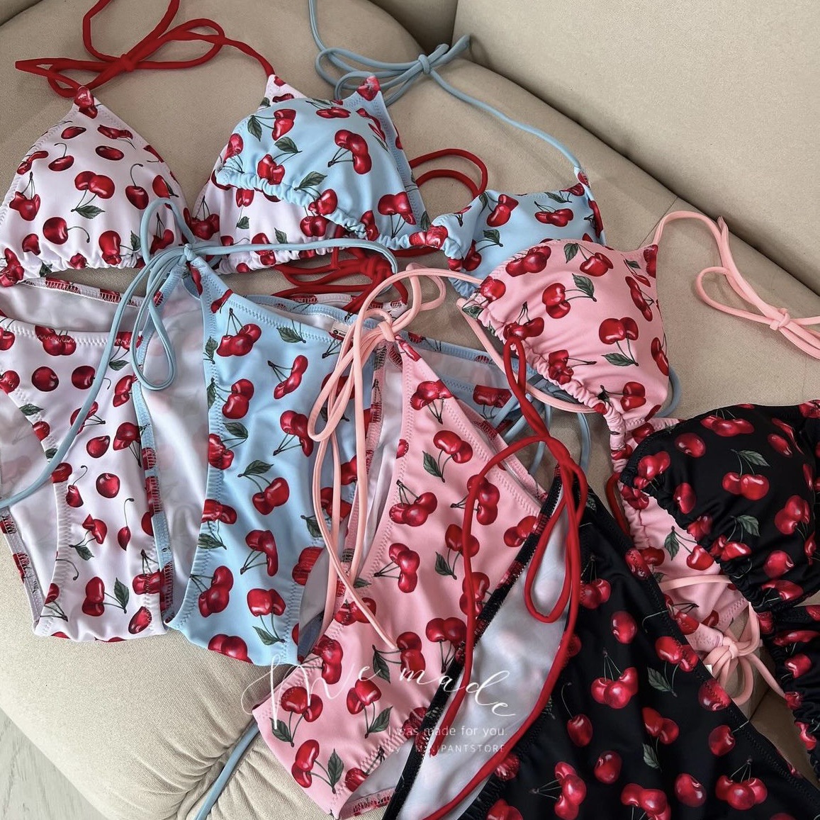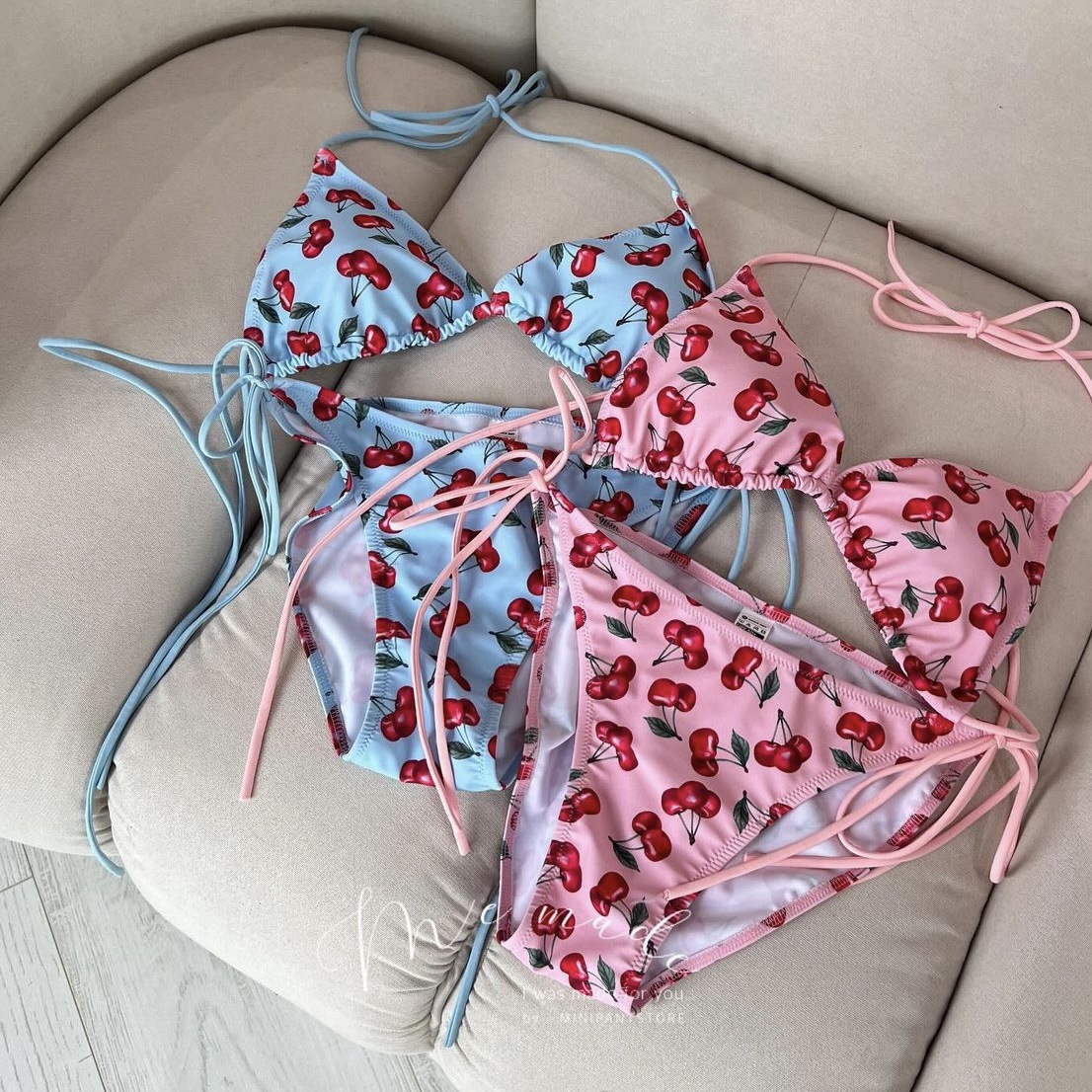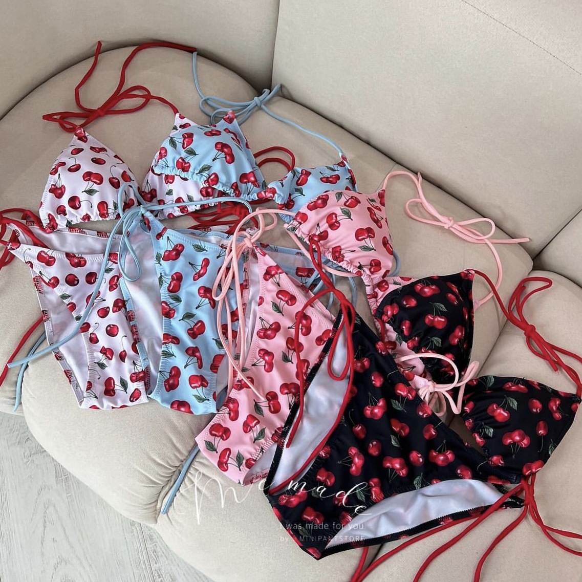 패션 스타일 비키니 체리 프린트 순수한 욕망 온천 한국 인 스타일 작은 가슴 수영복 여성 수영복 비키니스토어 가기