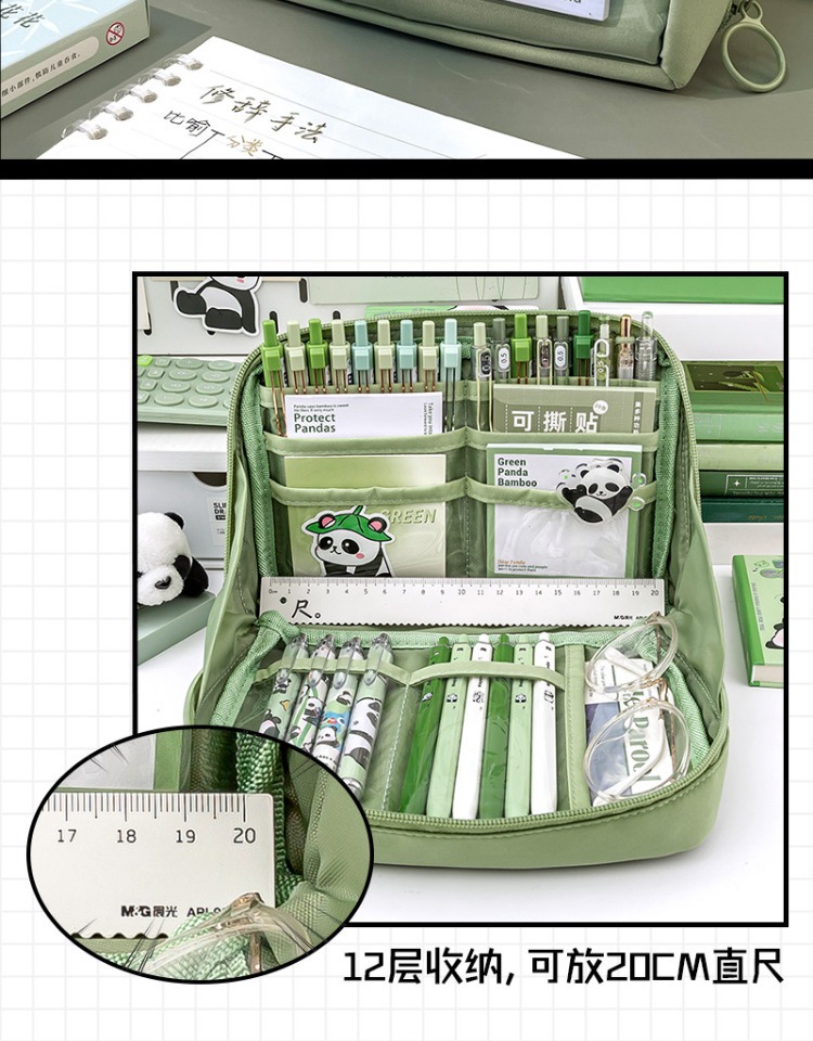 • 다층 스탠딩 필통 - 그린 (또는 녹색)