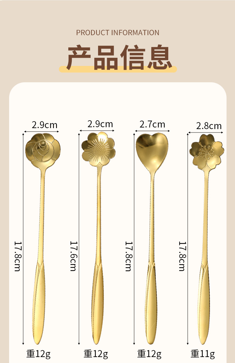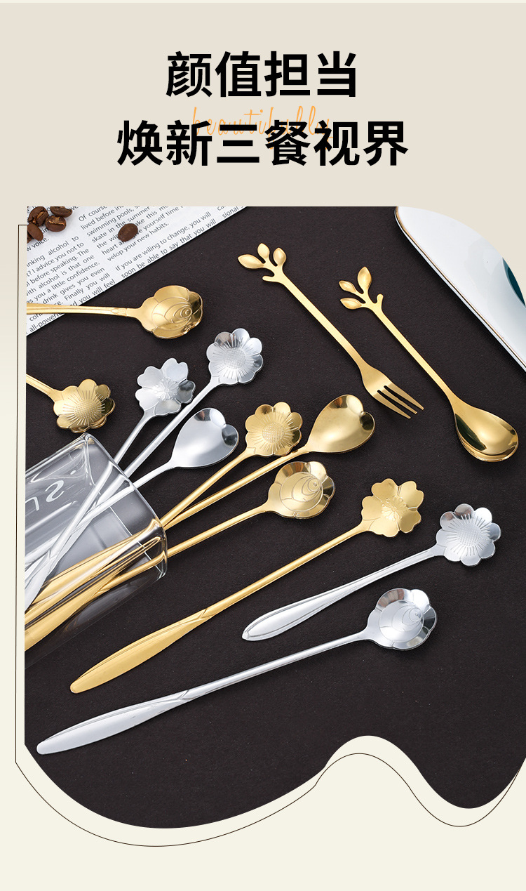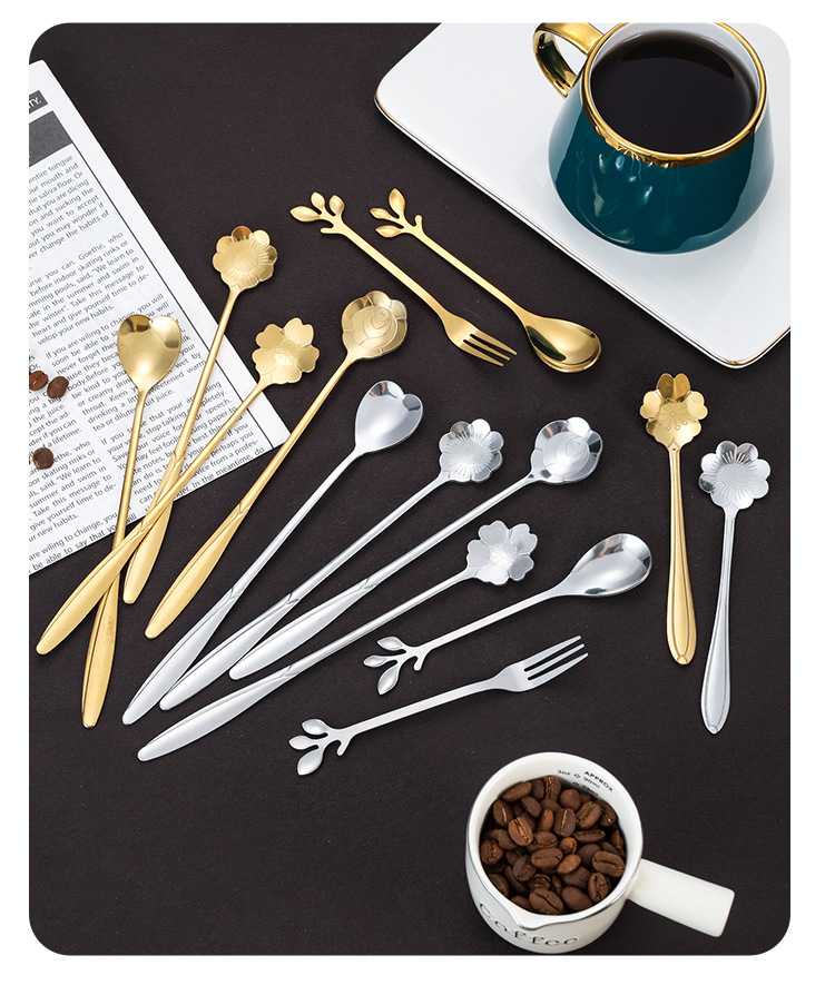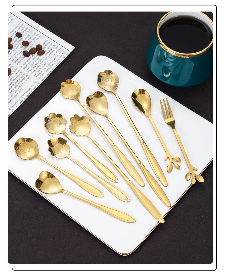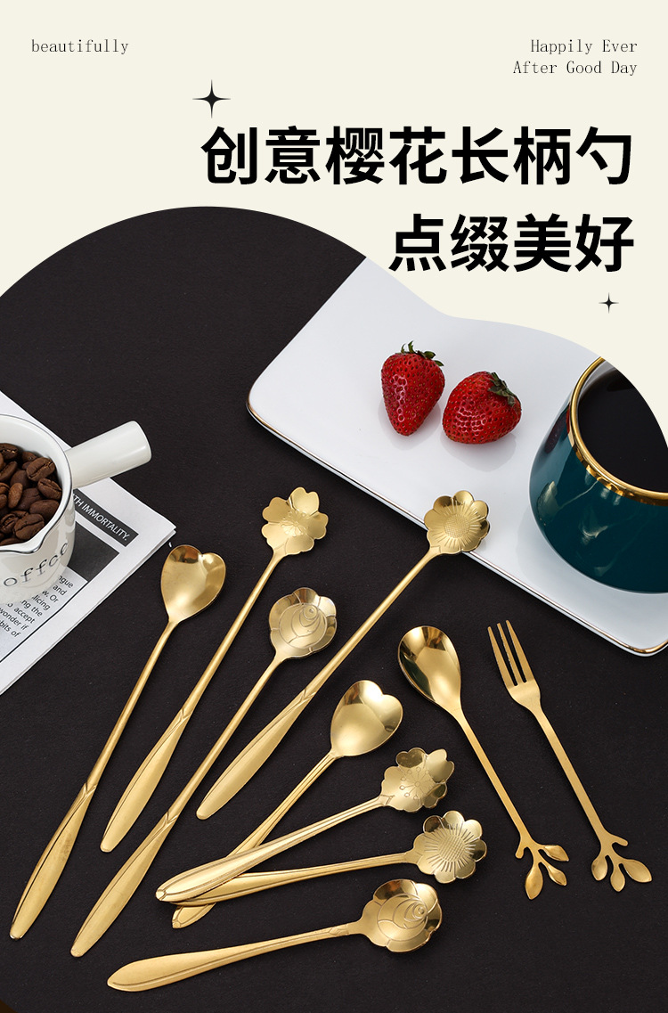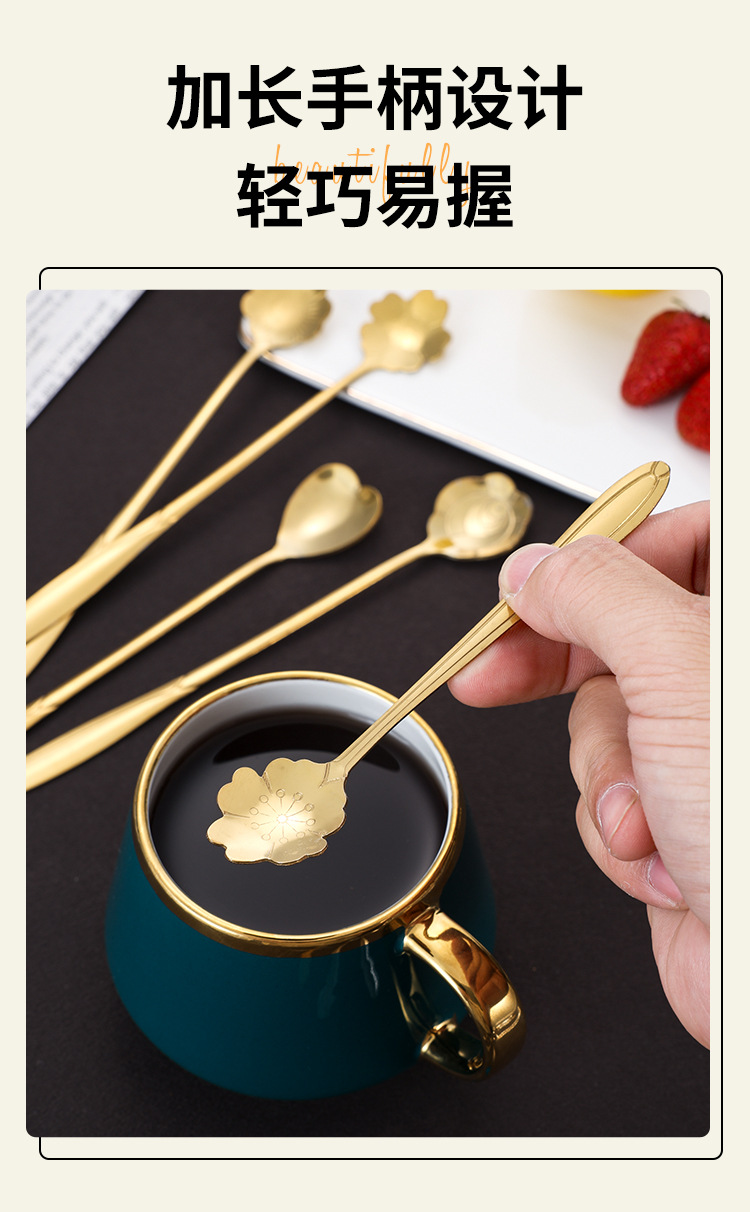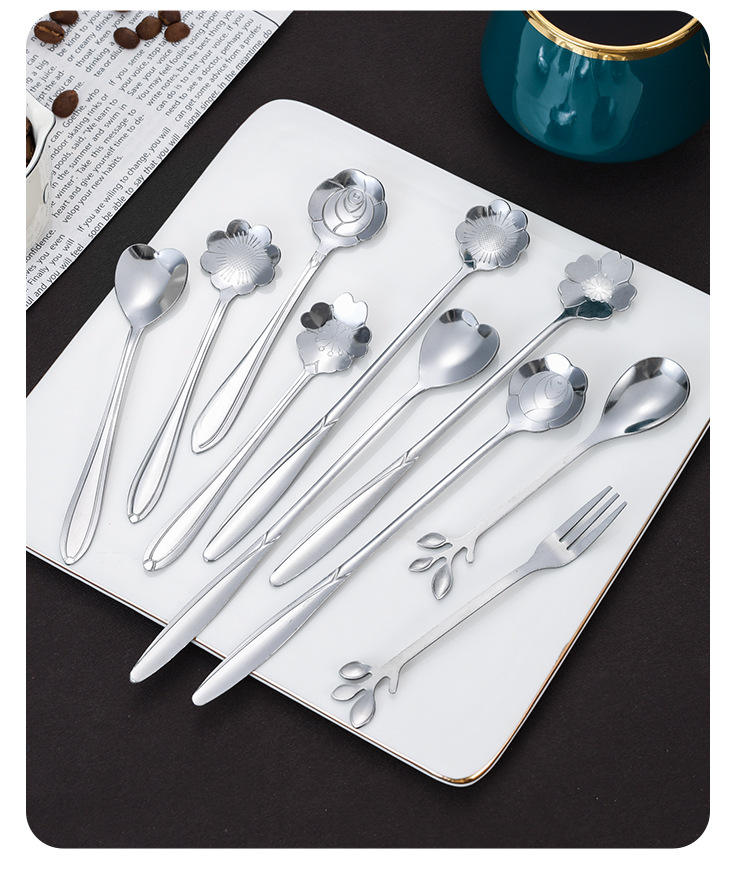 가정용 스푼 스테인레스 스틸 커피 스푼 고급스러운 벚꽃 교반 스푼 케이크 스푼 아이스크림 스푼 디저트 스푼 도매
