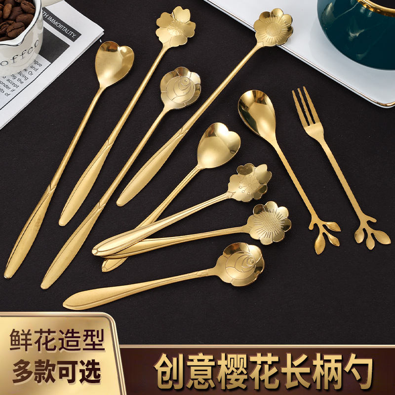 가정용 스푼 스테인레스 스틸 커피 스푼 고급스러운 벚꽃 교반 스푼 케이크 스푼 아이스크림 스푼 디저트 스푼 도매스토어 가기