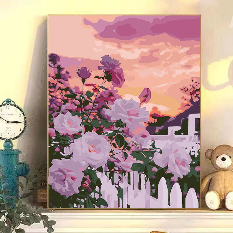 바다 꽃 diy 디지털 유화 바다 풍경 손으로 그린 채우기 색상 손으로 그린 해변 장미 유화스토어 가기