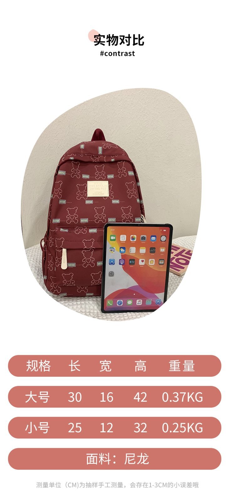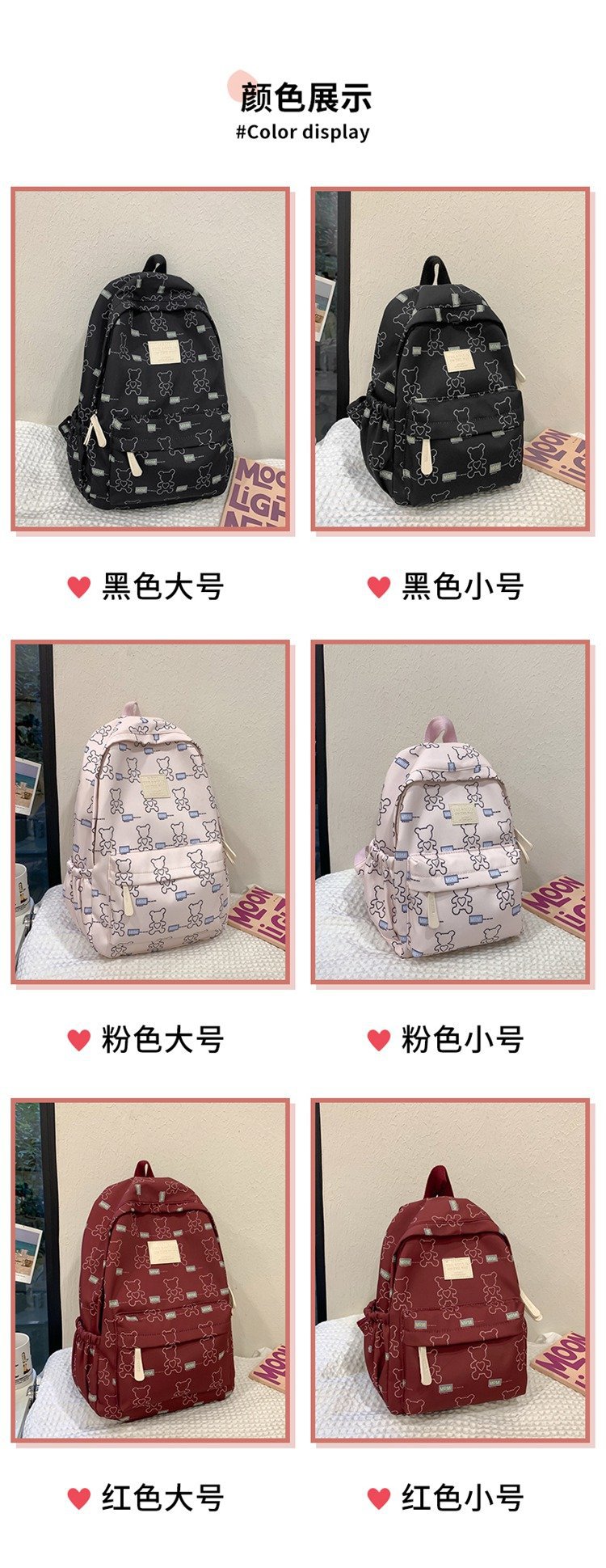 작은 신선한 Ins 스타일 캐주얼 경량 캠퍼스 스쿨 백 주니어 고등학생 대용량 여행 배낭