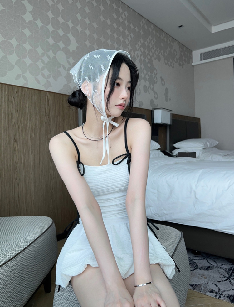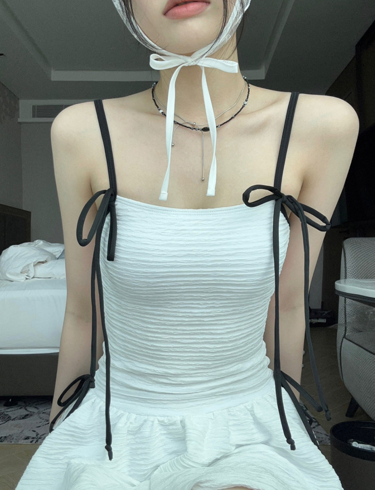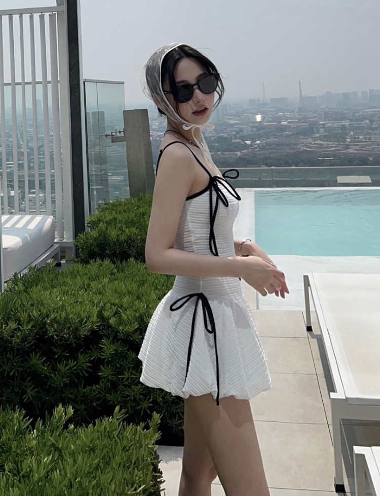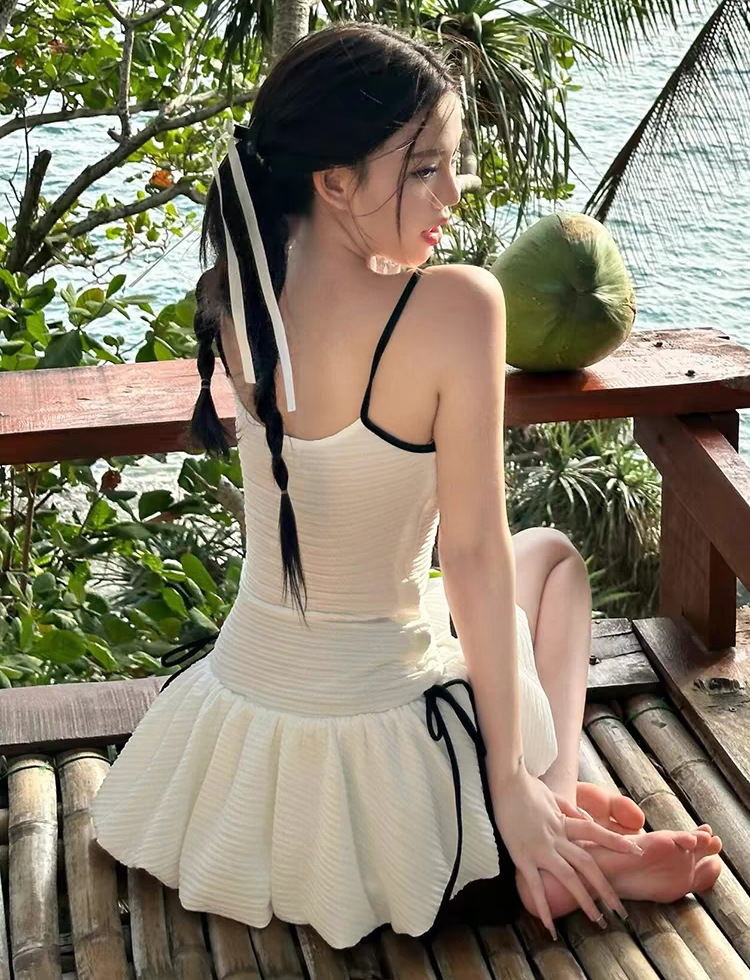 소스 공장 흰색 순수 멜빵은 치마 보수적 인 타이트 슬림 원피스 수영복으로 삼각형 바닥을 모았습니다.스토어 가기
